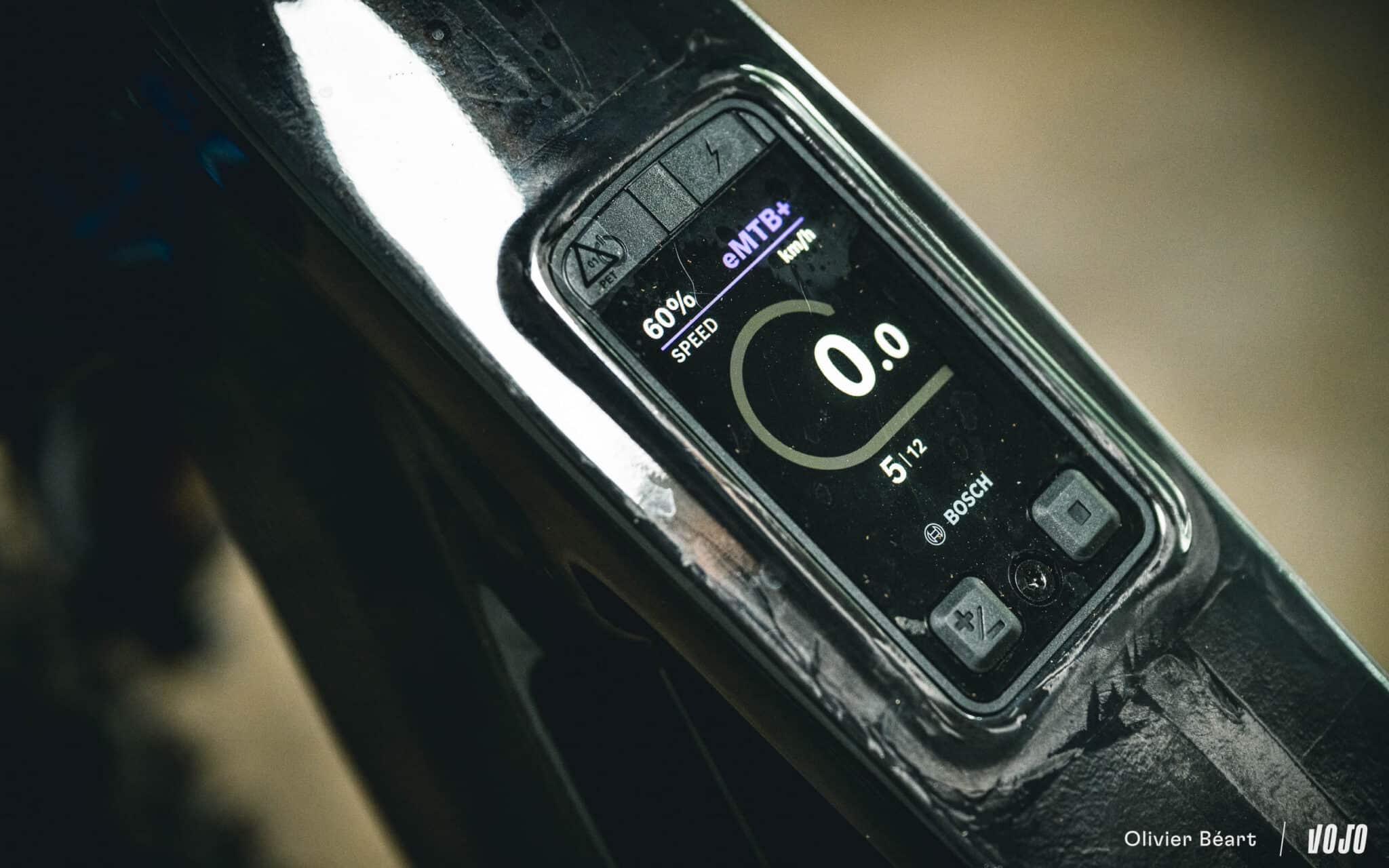Ce moteur est associé à une batterie intégrée de 800 Wh, logée dans le tube diagonal, et à un écran Kiox 400C moderne, compact, parfaitement lisible et compatible avec Komoot ou Strava. Une mini télécommande au guidon permet de changer les modes d’assistance.