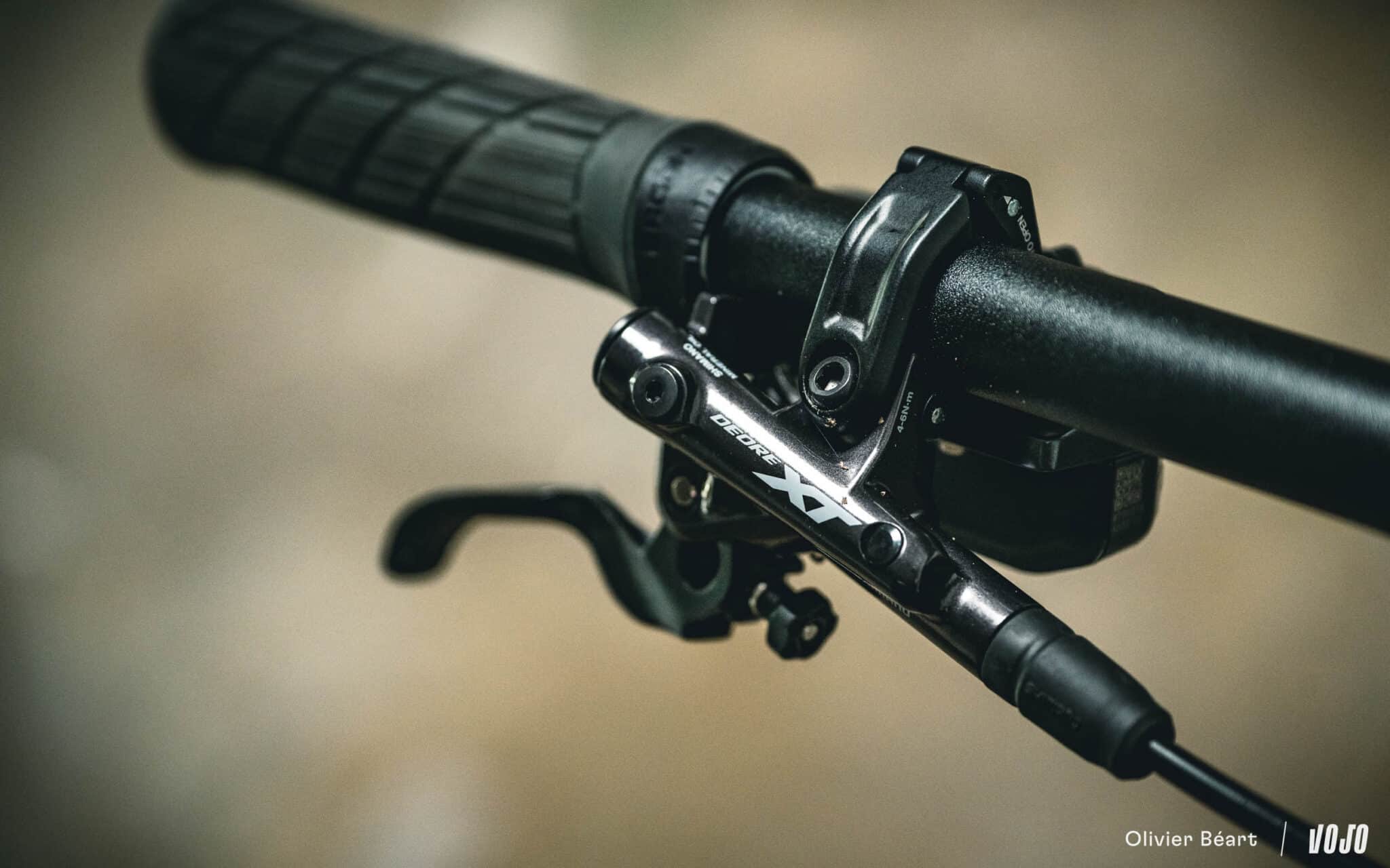 Le bémol de la fourche nous amène aussi à un autre commentaire général sur les équipements : pour une version haut de gamme à près de 10000 €, on se serait attendu à un peu mieux. Par exemple, nous n’avons rien à reprocher aux roues DT 1900, qui ont un comportement très homogène sur le terrain et dont la robustesse est connue, mais cela reste un modèle milieu/entrée de gamme. Idem du côté transmission : le nouveau Shimano XT Di2 fonctionne à merveille, mais un petit dérailleur XTR aurait ajouté une touche de prestige bienvenue. On n’a pas non plus les derniers freins Shimano XT, mais la version précédente. Bref, rien de rédhibitoire, mais on s’attendait à mieux sur ce modèle fleuron et la version 9.7 à 8199 € apparaît comme un choix plus judicieux au niveau du rapport qualité/prix.