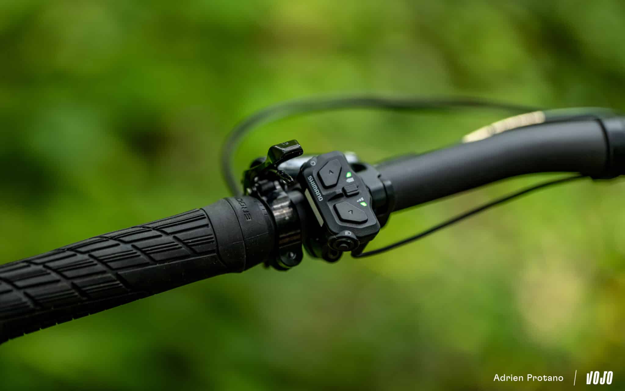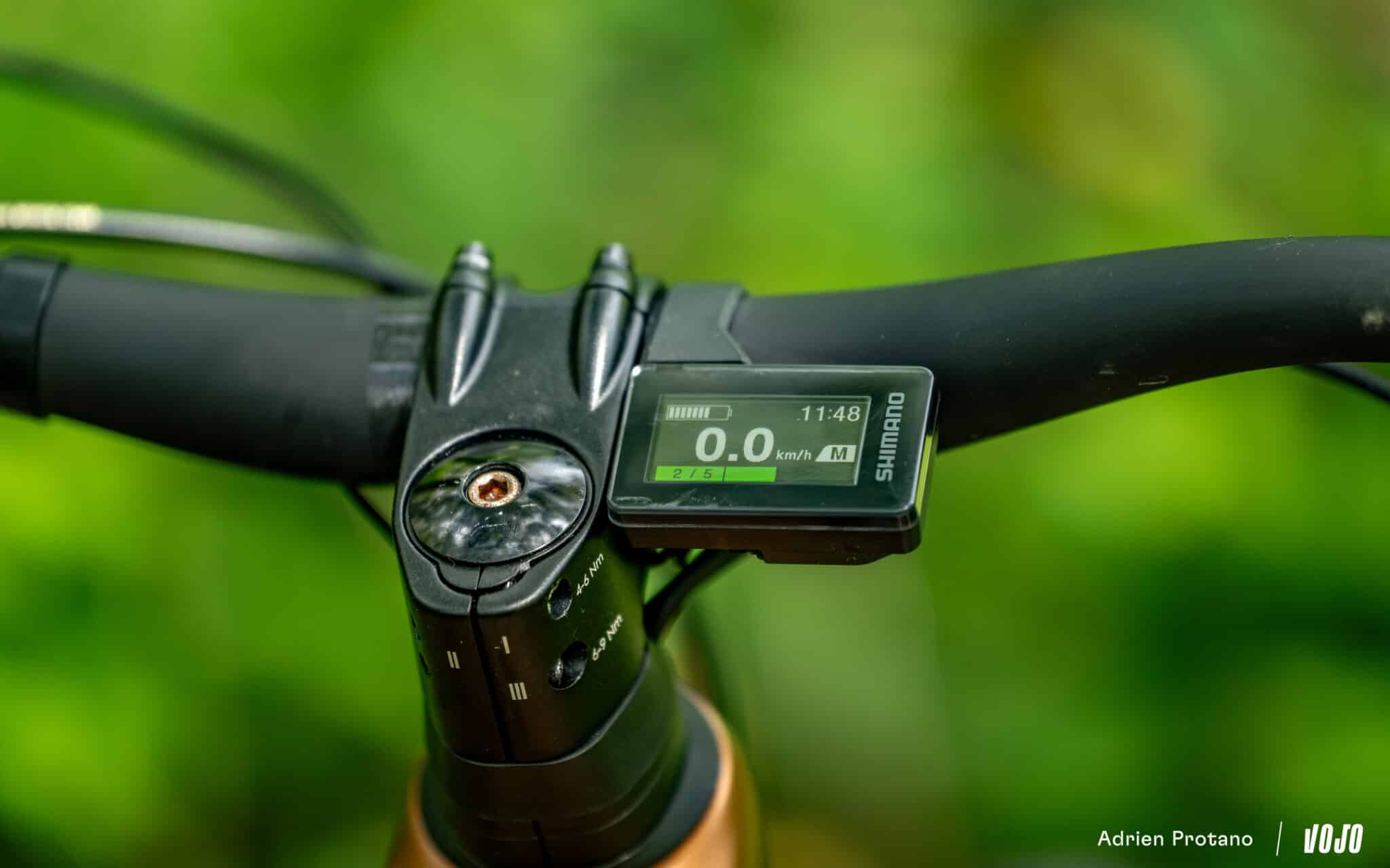 Pas de surprise du côté de la commande au guidon et de son écran associé puisque l’on retrouve du Shimano EN600, soit un duo habituel pour l’EP801. Si la commande est initialement destiné à la gamme EP6, celle-ci est équipé de leds (au contraire de celle de la gamme EP8, plus minimaliste) et permet ainsi d’envisager de se passer d’écran pour un poste de pilotage plus épuré. Cette assistance peut aussi être reliée à un GPS Garmin, permettant d’accéder à des informations supplémentaires tout au long du parcours, tels que les kilomètres parcourus et l’autonomie estimée. De plus, l’application pour smartphone « E-Tube Project Cyclist » offre une multitude d’options, dont la possibilité de personnaliser en détail les modes d’assistance pour les adapter au style de conduite et aux préférences de chaque utilisateur.