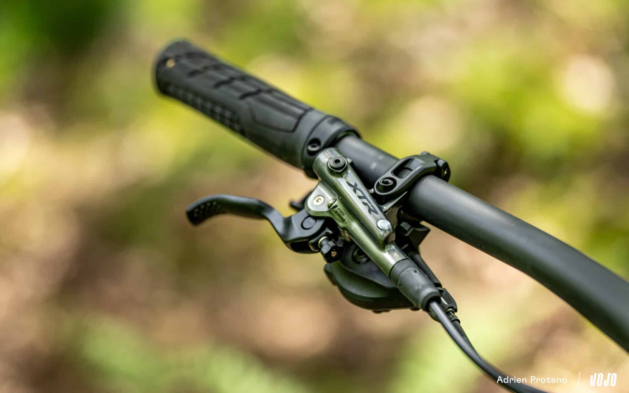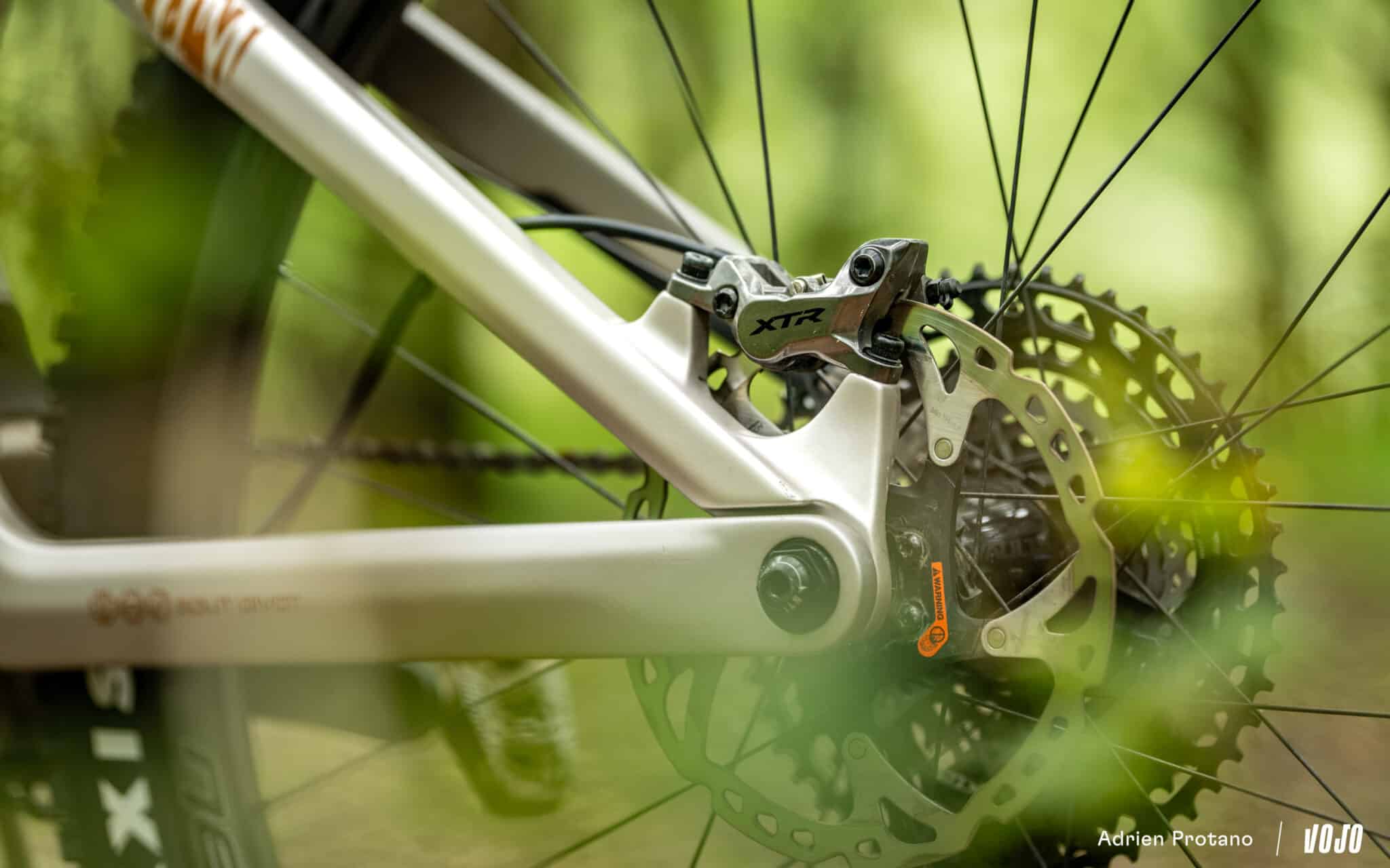 C’est également du Shimano XTR qui a été choisi du côté des freins, associés à des disques de 203 mm à l’avant comme à l’arrière. Simple, prévisible, efficace et parfaitement à sa place sur ce genre de vélo.