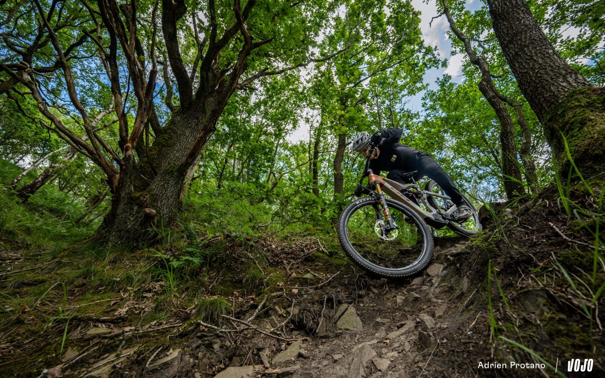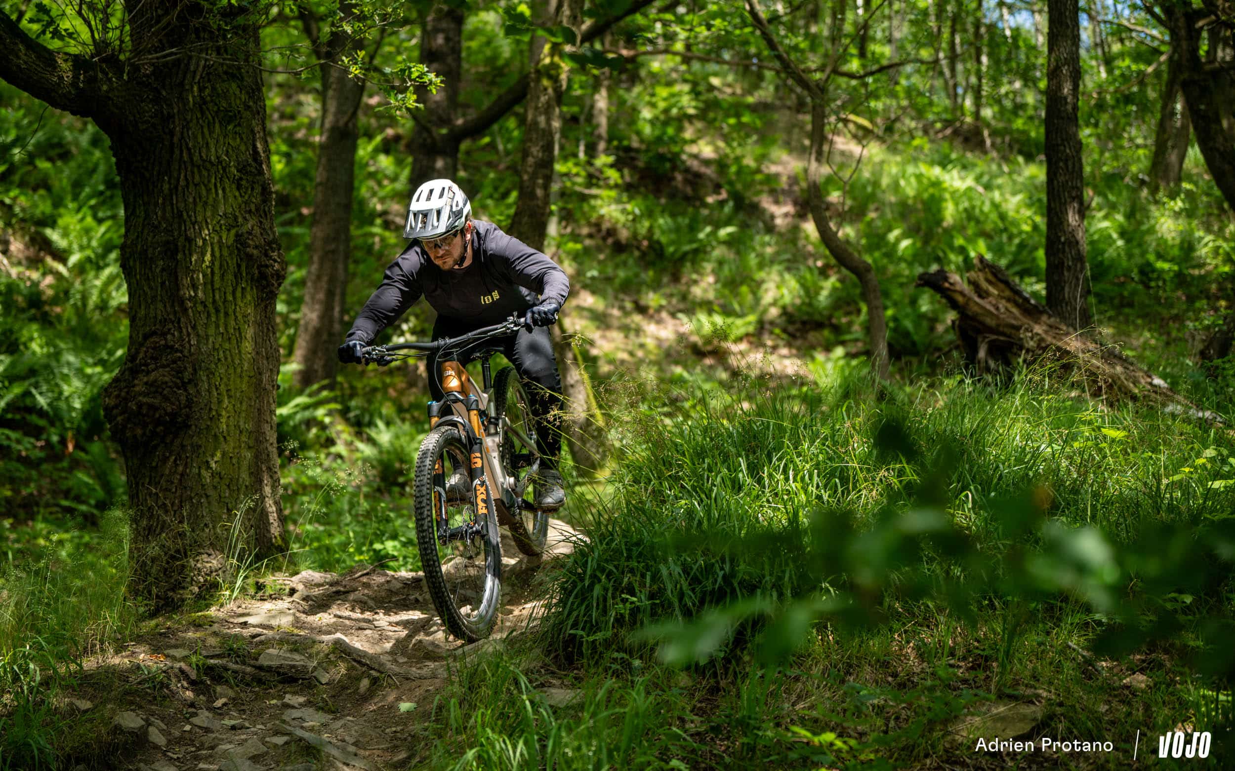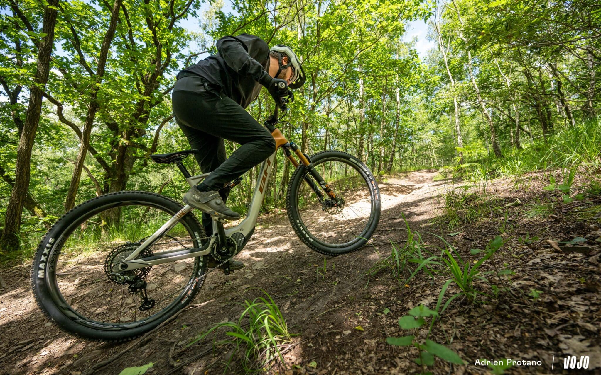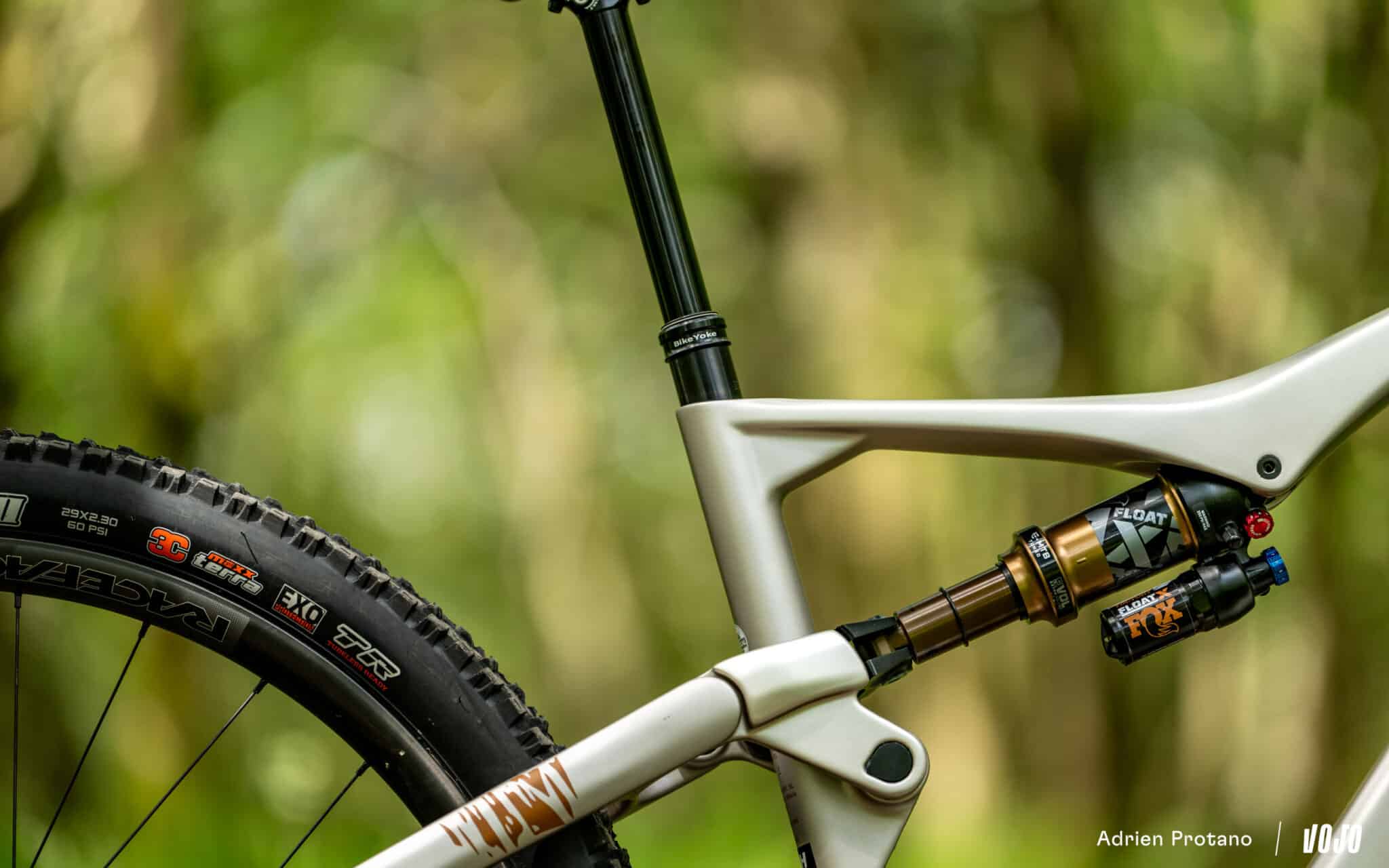 Dans les longues descentes plus chahutés, si l’arrière est parfait, on regrette l’absence de la nouvelle cartouche GripX au niveau de la fourche, tant le vélo répond bien à la philosophie de cette nouveauté en provenance de chez Fox : « C’est vraiment un vélo sur lequel il faudrait la nouvelle GripX pour s’accorder au « posé » mais tout de même dynamique de l’arrière », nous glissait un de nos testeurs après une séance d’essai. Malheureusement, la cartouche GripX n’est pas disponible en 140 mm de débattement pour le châssis 36. À ce stade, il faut se tourner vers une 34 (qui risque d’être trop peu rigide au vu du programme) ou une 36 équipée de cette ancienne cartouche Fit4… Bon, il restait aussi la solution d’opter pour une (meilleure) cartouche Grip 2 ou de porter le débattement à 150 mm, ce qui n’aurait sans doute pas été dérangeant au vu du comportement du vélo. Bref, coup dans l’eau au niveau de la cartouche : la Fit4 qui équipe notre vélo de test « fonctionne », mais une fois encore, sur une version porte-drapeau à plus de 10.000 €, on s’attend à avoir les dernières évolutions au niveau du matériel et quand, comme nous, on a eu l’occasion d’essayer les nouvelles versions en cartouche GripX, GripX2, ou même l’ancienne Grip2, on se dit vraiment que le vélo aurait gagné à avoir une fourche équipée d’une autre hydraulique.