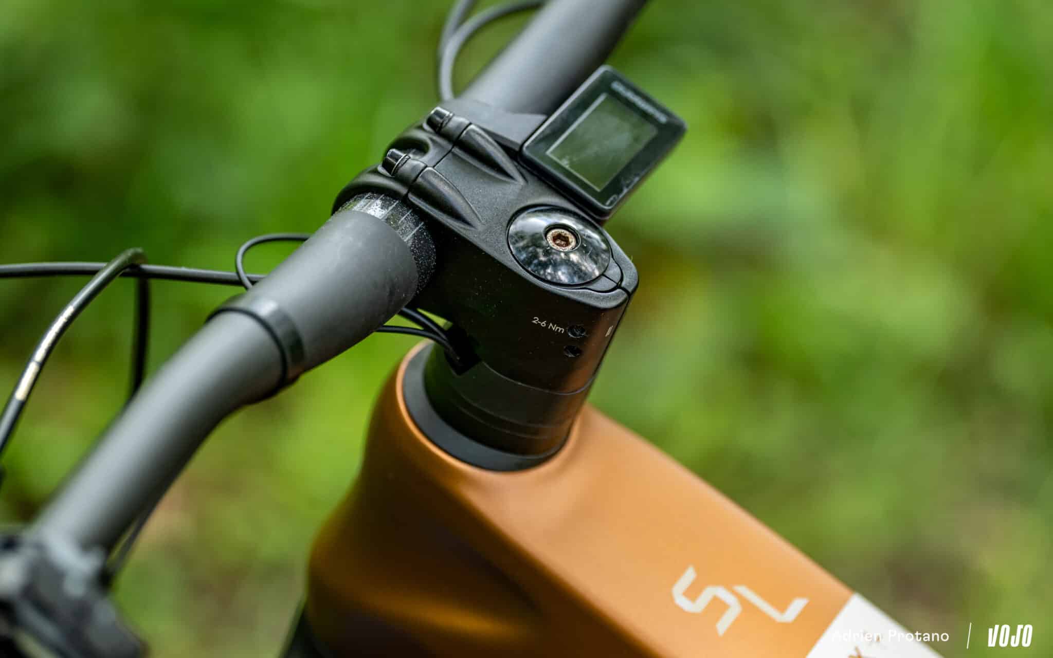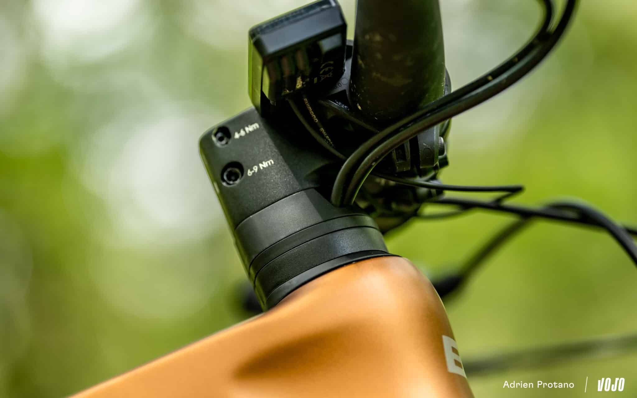 Une potence spécifique (de par son système de fixation) assure un serrage grâce à un système d’expandeur, permettant d’insérer un multi-outil dans l’axe de la fourche. Cependant, ce système particulier nous a posé quelque soucis de serrage sur notre modèle d’essai, alors même que nous ne bénéficions pas de multi-outils intégré… Pourquoi ne pas alors favoriser le montage d’une potence plus classique ? Selon nous, à ce niveau, BH complique inutilement les choses.