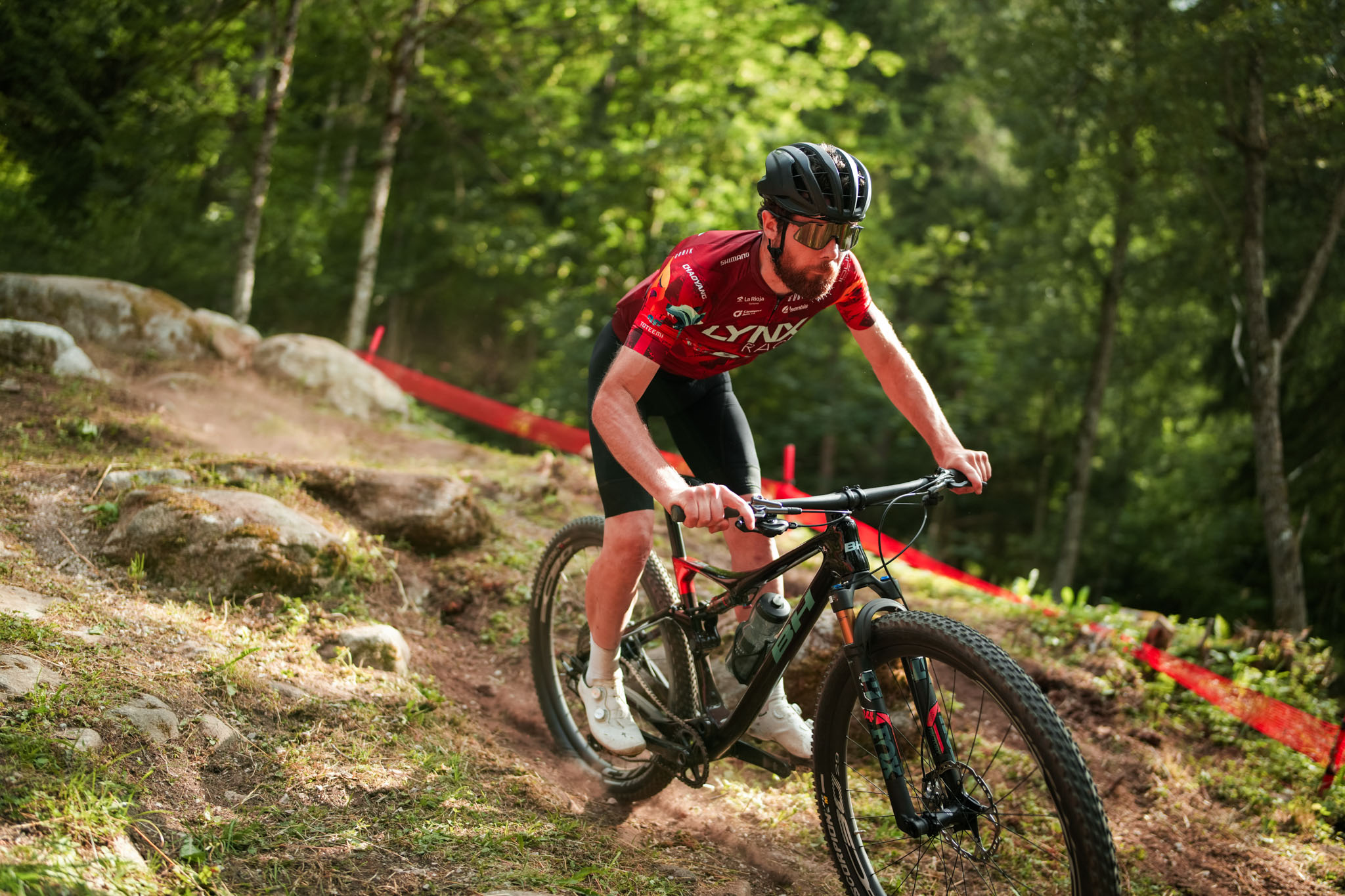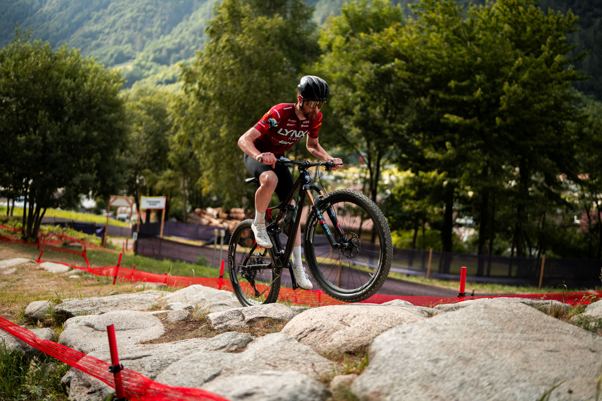 Quoi de mieux pour découvrir un vélo de compétition que d’aller sur un circuit de compétition ? C’est ainsi que BH nous a invités à Val di Sole, théâtre ce week-end de la quatrième manche de la coupe du monde XCO/XCC, pour se faire une première idée de ce nouveau Lynx Race. Au programme, une sortie en montagne d’environ 45 km avec (entre autres) une belle montée de 1200 m de D+ pour commencer puis la possibilité d’aller poser les roues sur le circuit qui sera roulé par les pilotes quelques jours plus tard, au moment où vous lisez ces lignes.