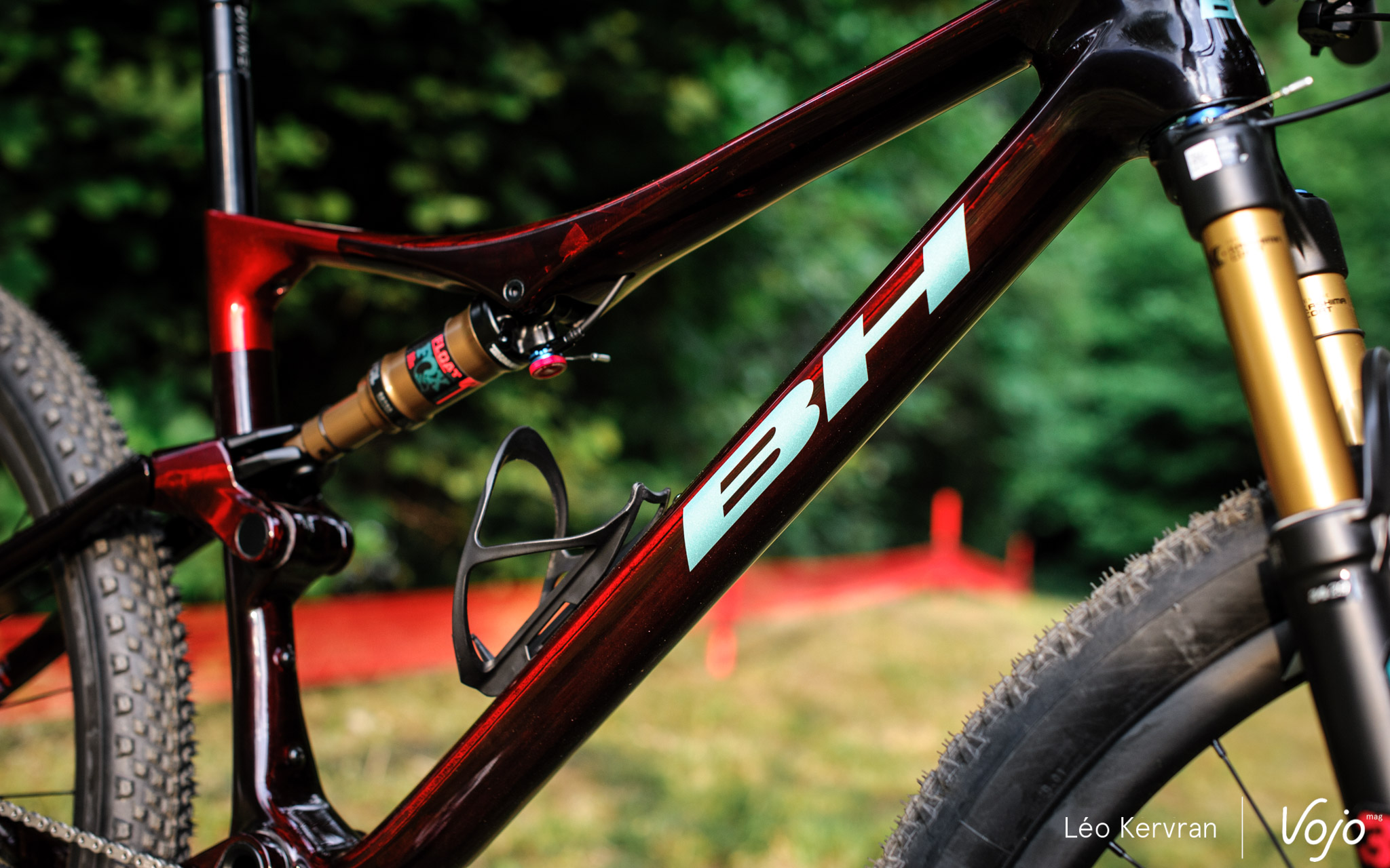 Le dernier changement de taille se situe côté « pratique » : le Lynx Race peut désormais accueillir deux porte-bidons ! Là, ce ne sont pas les retours de ses pilotes en XCO que BH a écoutés mais bien ceux des autres pratiquants et pratiquantes. Elle ne nous cache pas qu’y parvenir sans trop déformer le tube diagonal, toujours très direct sur les vélos de la marque et véritable marqueur de son identité, ne fut pas chose aisée, mais une solution fut trouvée avec ce petit adaptateur qui décale le porte-bidon afin d’éviter tout conflit avec la suspension.