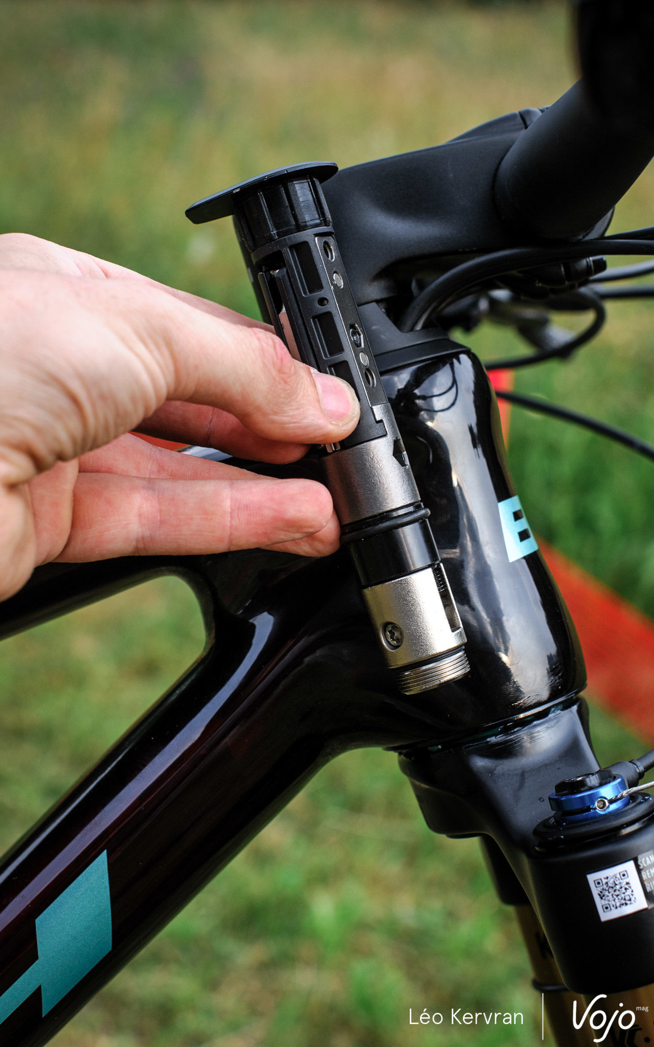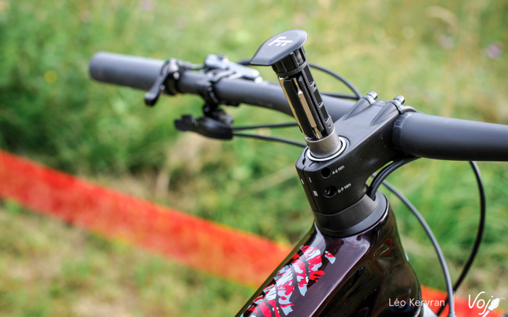 Le Fit (pour Fast Integrated Tool), cet outil intégré dans le pivot de fourche, reste bien sûr au programme sans changement. Clés H2.5/3/4/5/6 mm, Torx T25, dérive-chaîne, emplacement pour maillon rapide et pour cartouche de CO2, il est complet, pratique et facile à utiliser. Suivant les vélos, il faut serrer plus ou moins l’expandeur en caoutchouc situé à son sommet pour assurer un bon maintien et éviter tout bruit parasite mais c’est le seul léger souci (vite réglé) que nous avons pu rencontrer sur cette prise en main. Si vous souhaitez vous en passer, il est possible de le remplacer par un bouchon ou même d’utiliser une étoile classique dans le pivot, si la potence BH ne vous convient pas.