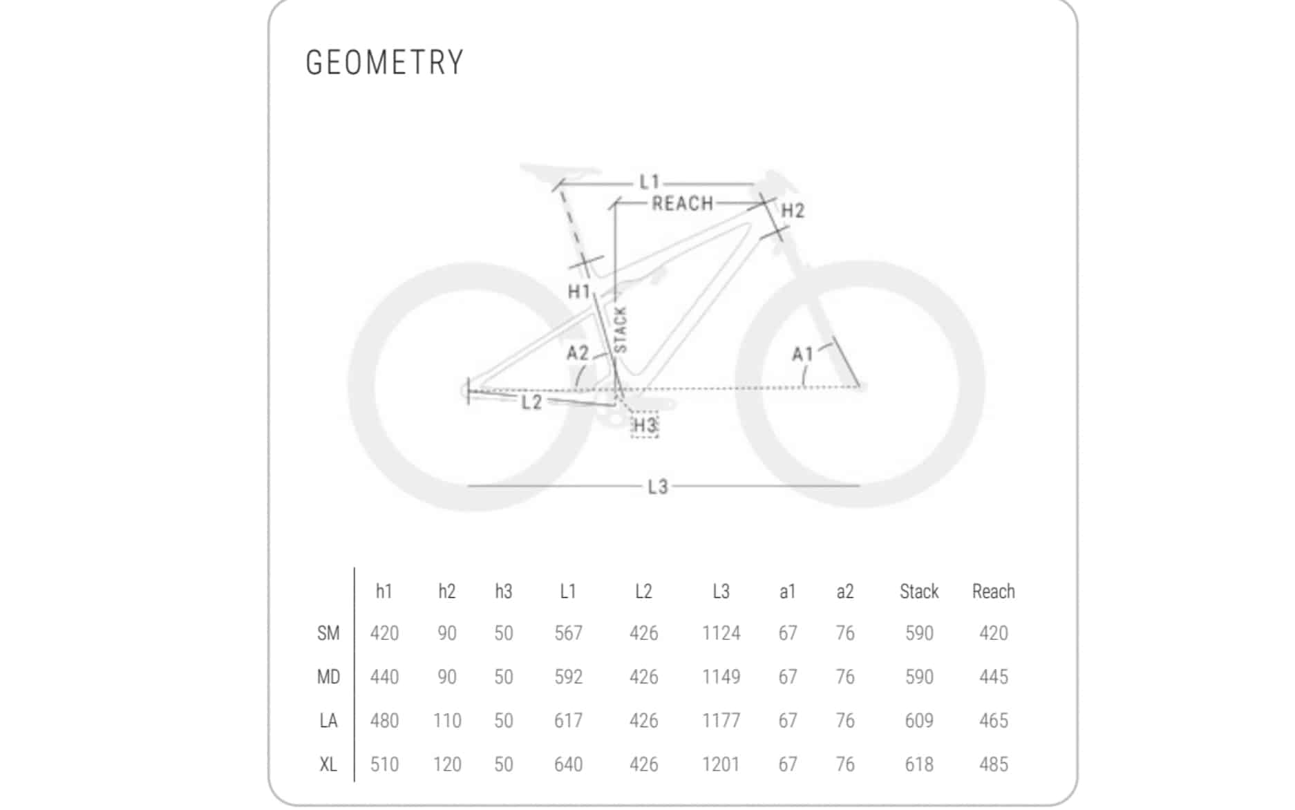 Côté géométrie, le BH Lynx SLS se caractérise par des bases très courtes (426 mm dans toutes les tailles), un reach de 445 mm en taille M, un angle de direction assez ouvert (67°) et un angle de tube de selle relevé (76°). Des chiffres bien dans leur époque pour du XC.