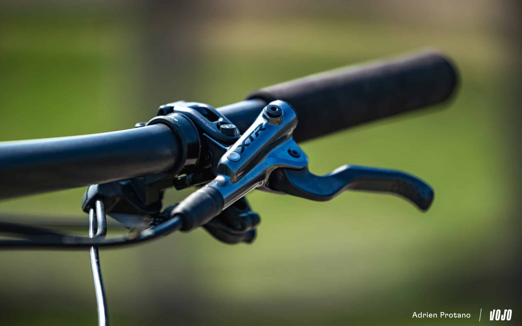 Changement de crémerie côté freinage avec une paire de XTR de chez Shimano, associé à des disques avant/arrière de 180/160 mm.