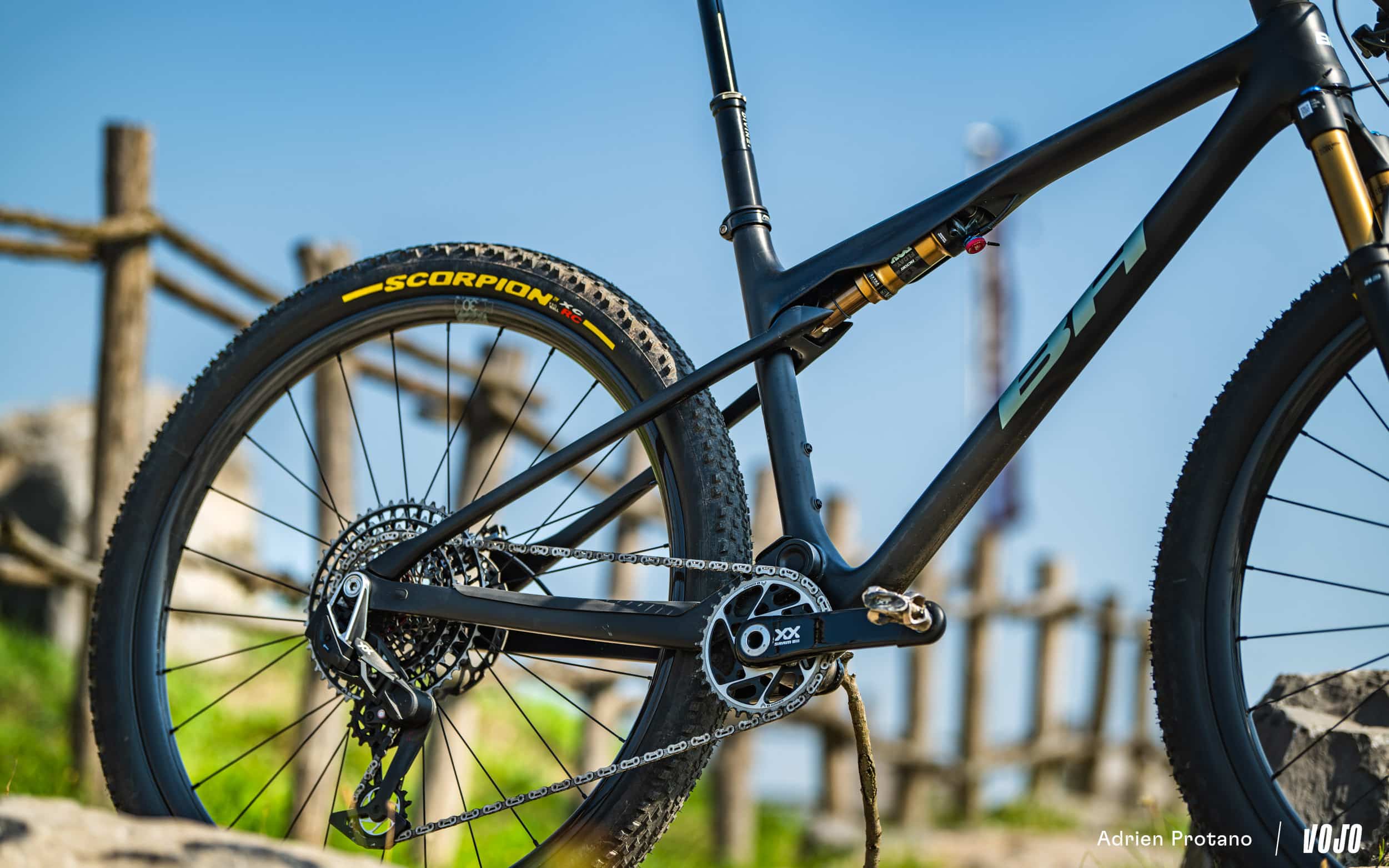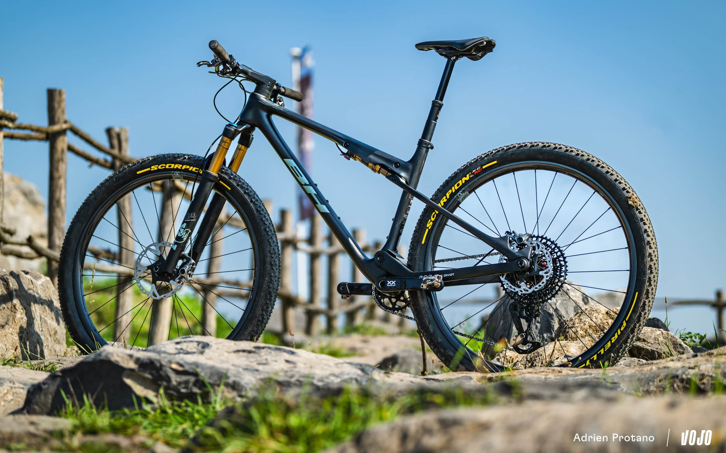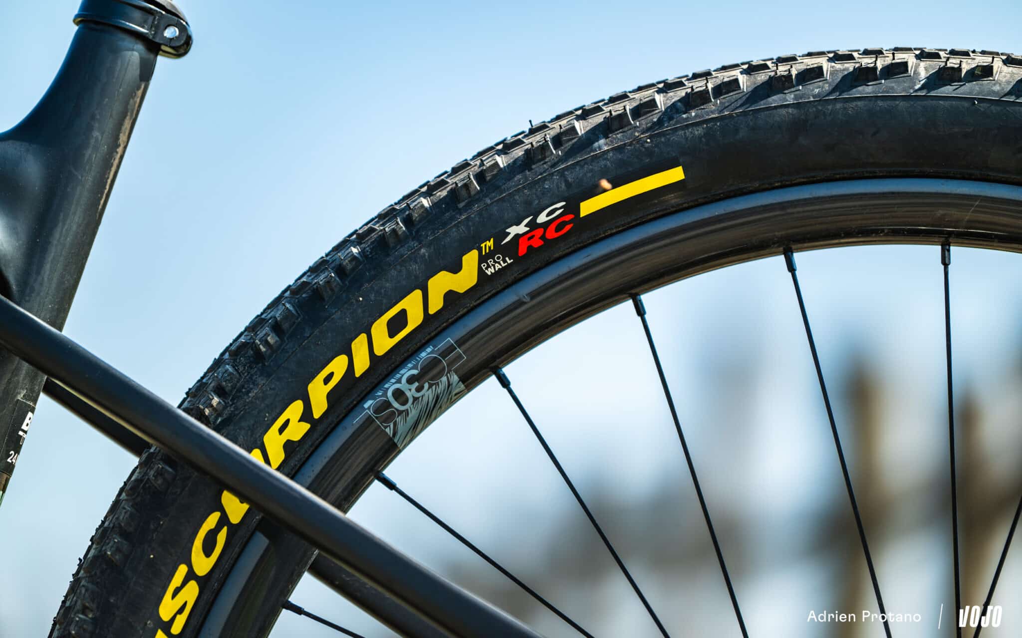 Le train roulant est maison avec une paire de roues estampillées BH, et plus précisément le modèle EVO carbon SL (28mm de hauteur, 30mm de largeur interne). Celle-ci sont chaussées de pneumatiques Pirelli Scorpion XC RC en 2.4 de section.