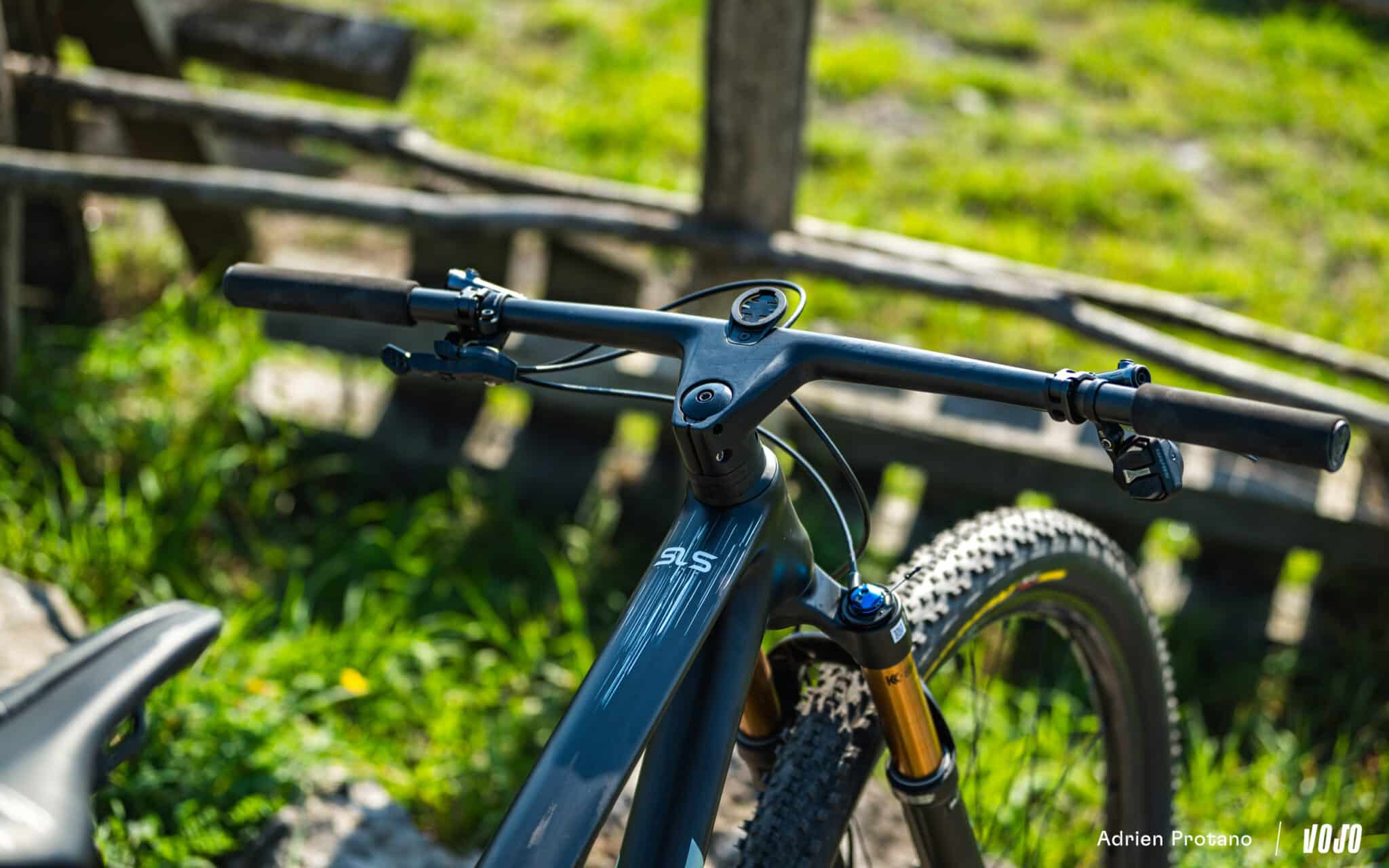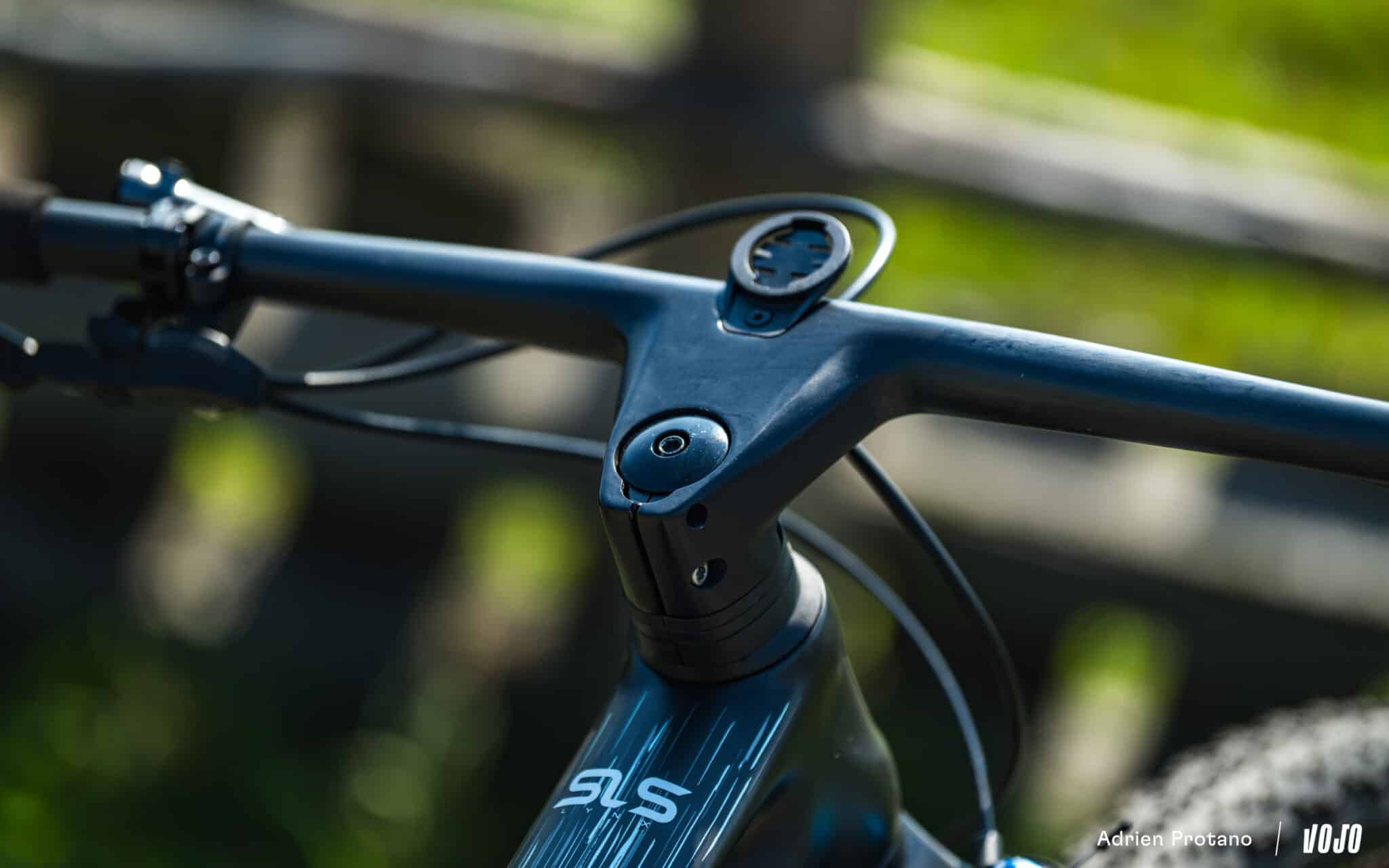 Le tableau est presque idyllique, mais il faut tout de même signaler quelques petits points. L’ergonomie du poste de pilotage nous a semblé perfectible du côté commande de blocage des suspensions/ levier de tige de selle télescopique. Certains testeurs ont eu du mal à trouver une position parfaite dans l’agencement entre les deux commandes (celle de la tige de selle télescopique étant trop éloignée), tandis que la commande du blocage des suspensions a un tirage fort long et se montre dure à actionner. Mention très bien par contre pour le poste de pilotage carbone intégré en lui-même, qui affiche une bon équilibre entre flex et rigidité.