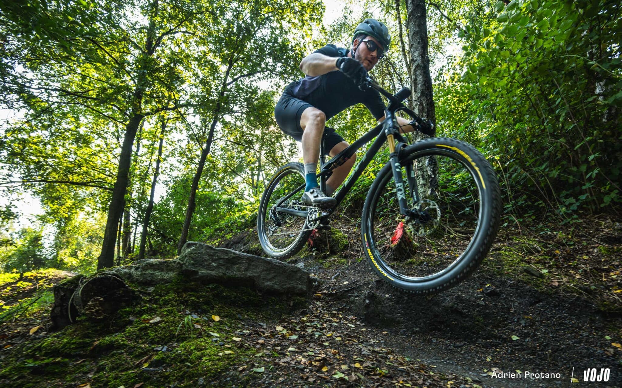 Côté réglages, c’est entre 22 et 25 % de SAG que l’on a trouvé les meilleures sensations. En dessous le châssis apparaît bien trop ferme, au-dessus il a tendance à être source de pompage lors des sections d’ascension et il oblige à utiliser souvent le blocage au guidon, alors qu’un meilleur compromis est possible entre les valeurs citées plus haut. Avec si peu de débattement (80mm), il est d’intérêt – un peu plus encore que d’habitude – de porter attention aux détails afin de les utiliser de manière optimale ! Et si vous éprouvez le besoin de rouler avec plus de SAG pour avoir plus de confort… c’est qu’il faut vous tourner vers un « vrai » tout-suspendu en 100/120 mm comme le Lynx Race.