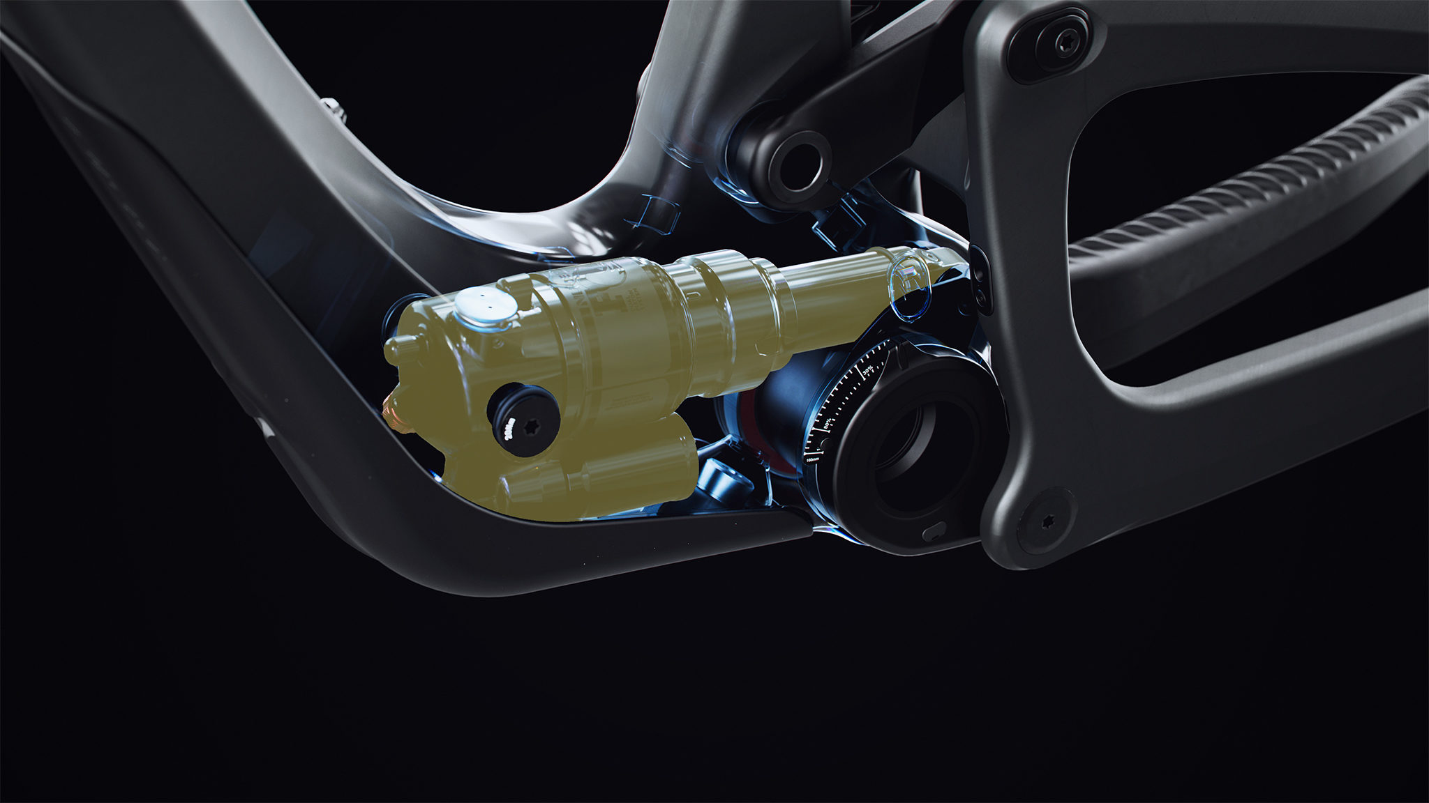 En retournant le vélo, on accède à une trappe qui donne sur l’amortisseur. Rebond, compression lente et pression d’air sont à portée de main et il n’y a pas besoin d’adaptateur spécifique ou de doigts particulièrement fins pour les manipuler. Ouf !