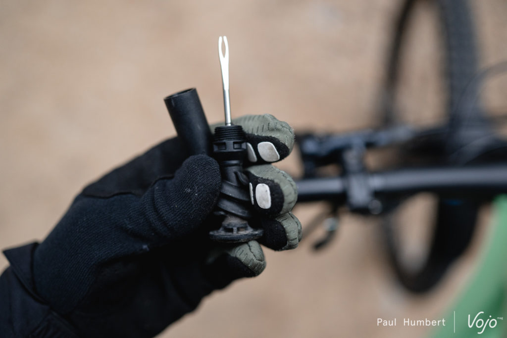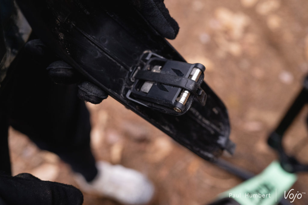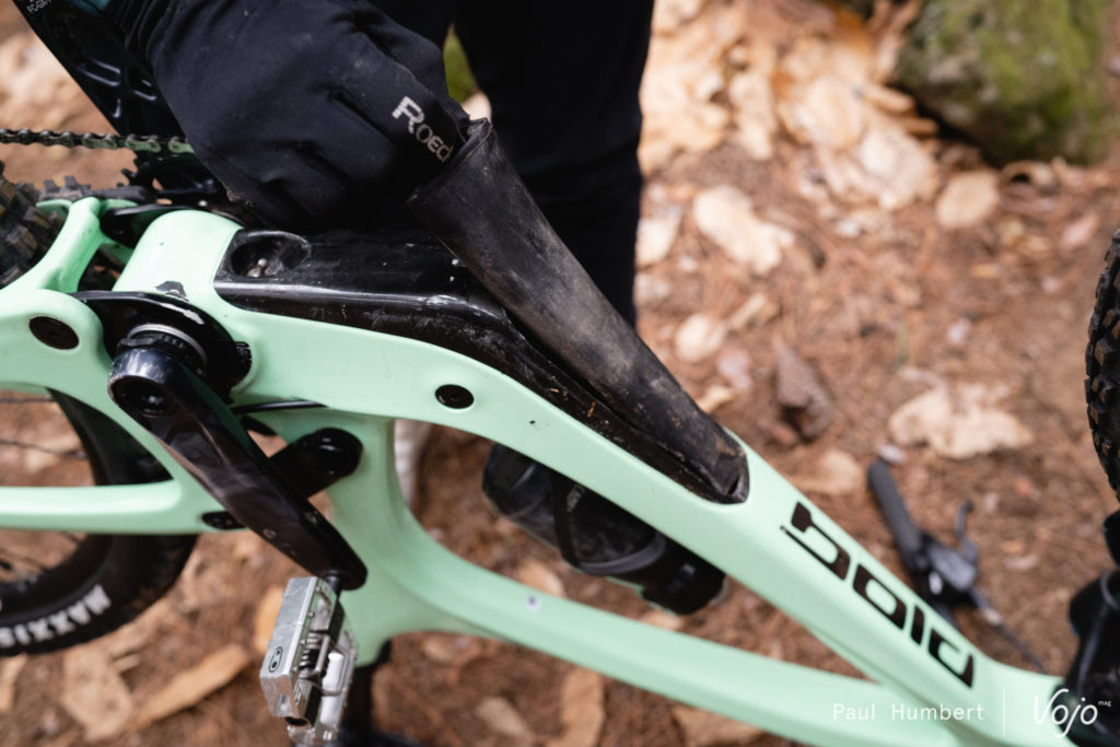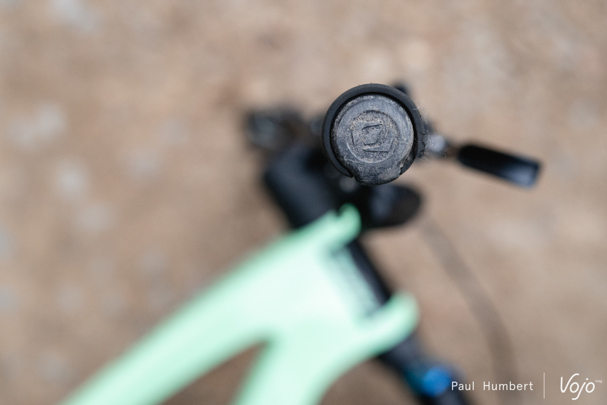 Ce n’est déjà pas très drôle quand il faut s’escrimer pendant cinq minutes pour une opération qui prendrait deux secondes si tout fonctionnait, mais quand vous pensiez avoir bien fermé et que vous finissez par perdre le couvercle au milieu d’une descente dans la boue et sous la pluie, ça devient doucement agaçant. Dommage, car dévisser la tige pour ajouter quelques entretoises et l’éloigner un peu du cadre suffit généralement à résoudre le problème, une étape qui serait facile à faire au montage ou en magasin avant la livraison. Contactée à ce sujet, la marque nous a assuré travailler à une procédure afin que cela ne se reproduise pas sur les autres modèles.