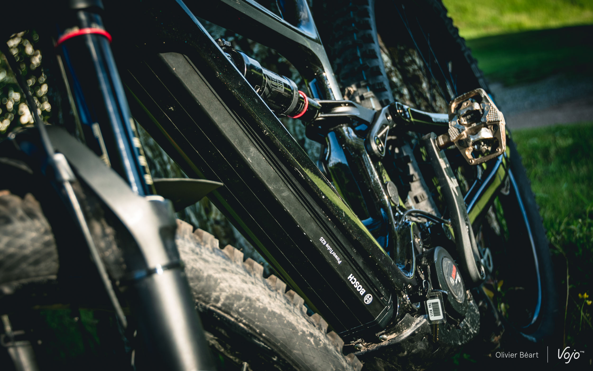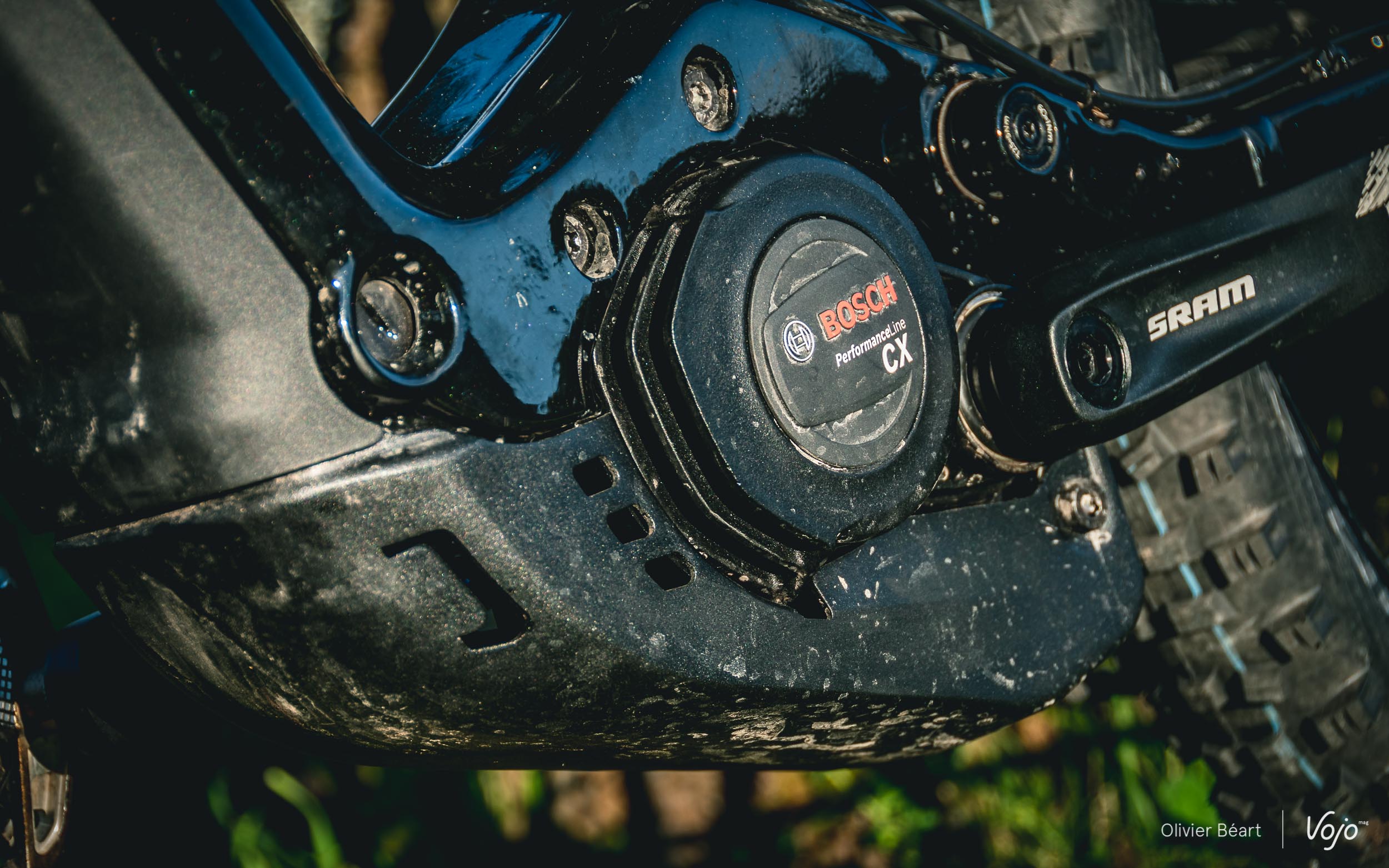 Le nouveau moteur Bosch reste bien un moteur Bosch, avec cette poigne qu’on connaissait au précédent, mais plus de subtilité qui permet de mieux s’en sortir dans les passages techniques et les zones de franchissement. Il ne semble jamais à court de ressources et il permet de rouler vite et bien sans devoir déployer toute sa science du pilotage pour le dompter. En descente, pas besoin non plus de le couper, il sait se faire discret et ne pointer le bout de son nez que quand on a vraiment besoin de lui. Là aussi, il est plus subtil que son prédécesseur. Quand on dépasse les 25km/h, la coupure du moteur est aujourd’hui très douce et quasiment insensible. C’est un des points forts et une des belles évolutions du nouveau moteur. Les frottements sont aussi réduits de manière sensible quand on roule sans assistance.