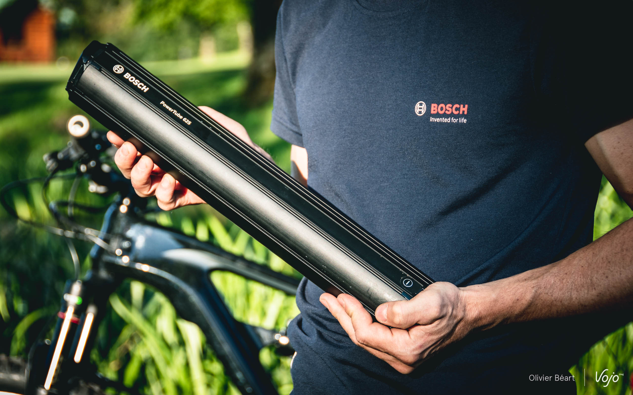 A noter aussi que Bosch utilise toujours des cellules 18650 dans ses batteries (50 cellules dans une batterie de 625Wh) et explique ce choix par rapport à des cellules plus grosses (par exemple les 21700) car la densité d’énergie serait meilleure sur les 18650, ce qui permet de réduire l’espace entre chaque cellule lors de l’assemblage et donc d’avoir une batterie plus petite, plus dense et donc mieux intégrée.