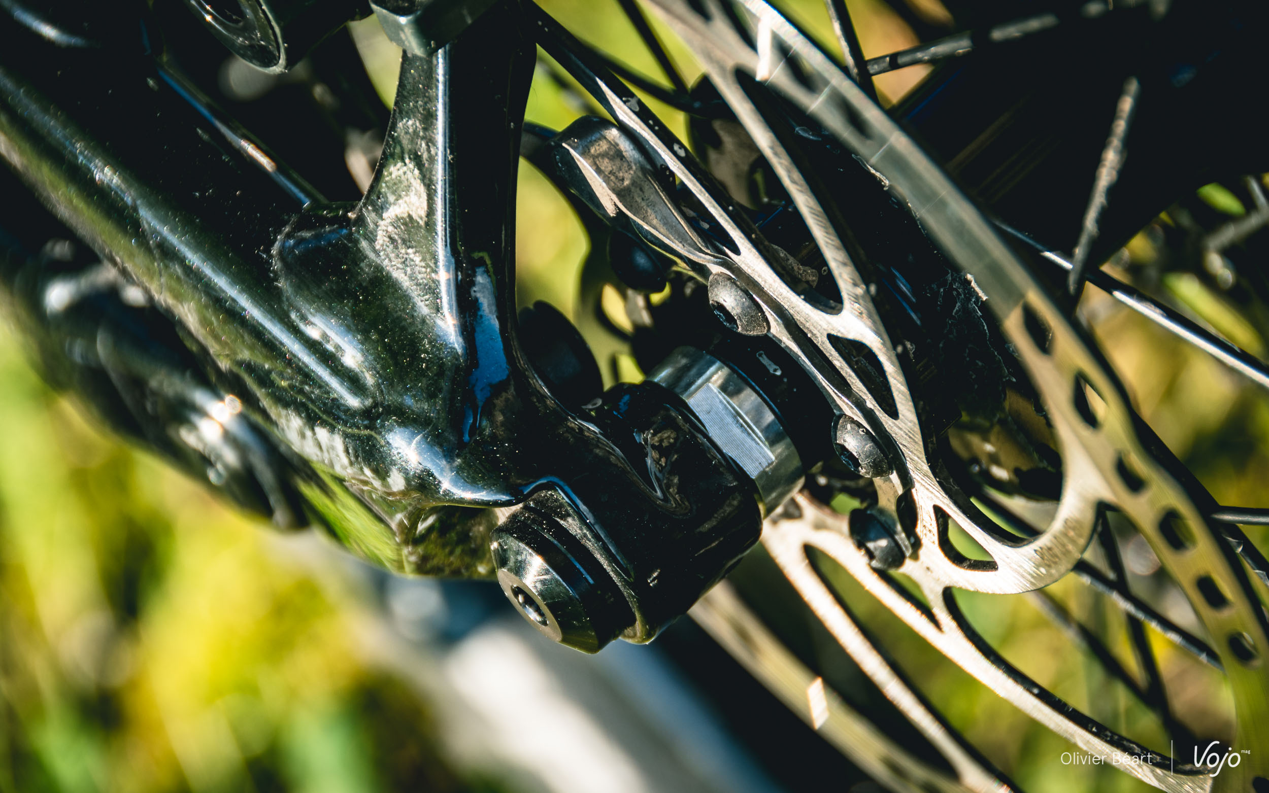 Outre des risques de chain-suck (chaîne qui s’accroche sur le plateau, qui remonte et se bloque) et d’encrassement nettement plus limités, ce choix permet aussi de réduire fortement les frictions. Auparavant, on pouvait clairement entendre toute une pignonnerie se mettre en branle au pédalage, et ce n’est désormais plus le cas. Quand le moteur est actif, il compense bien, mais c’était très perceptible au-delà de 25km/h, quand l’assistance se coupe et qu’on pédale seul, ou en cas d’utilisation avec le moteur coupé.