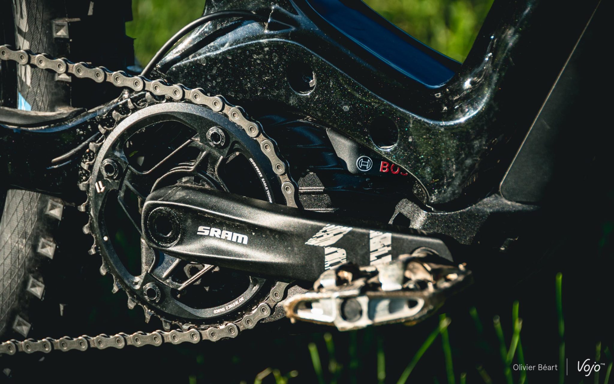 A noter aussi qu’on peut utiliser des cassettes 11 ou 12 vitesses, et toutes les transmissions du marché, qu’il s’agisse de systèmes mécaniques, de Shimano Di2 ou de Sram AXS. Le système Bosch eShift (qui existe depuis 5 ans) est adapté pour les transmissions électroniques afin de permettre le dialogue entre le dérailleur et le moteur. Le système eShift permet également de choisir une cadence de pédalage fixe et le système va changer les vitesses automatiquement, ce qui est utilisé essentiellement en urbain/trekking pour l’instant avec transmission Di2, NuVinci Automatic+ ou Rohloff E-14, mais dont on peut imaginer aussi des déclinaisons vtt.