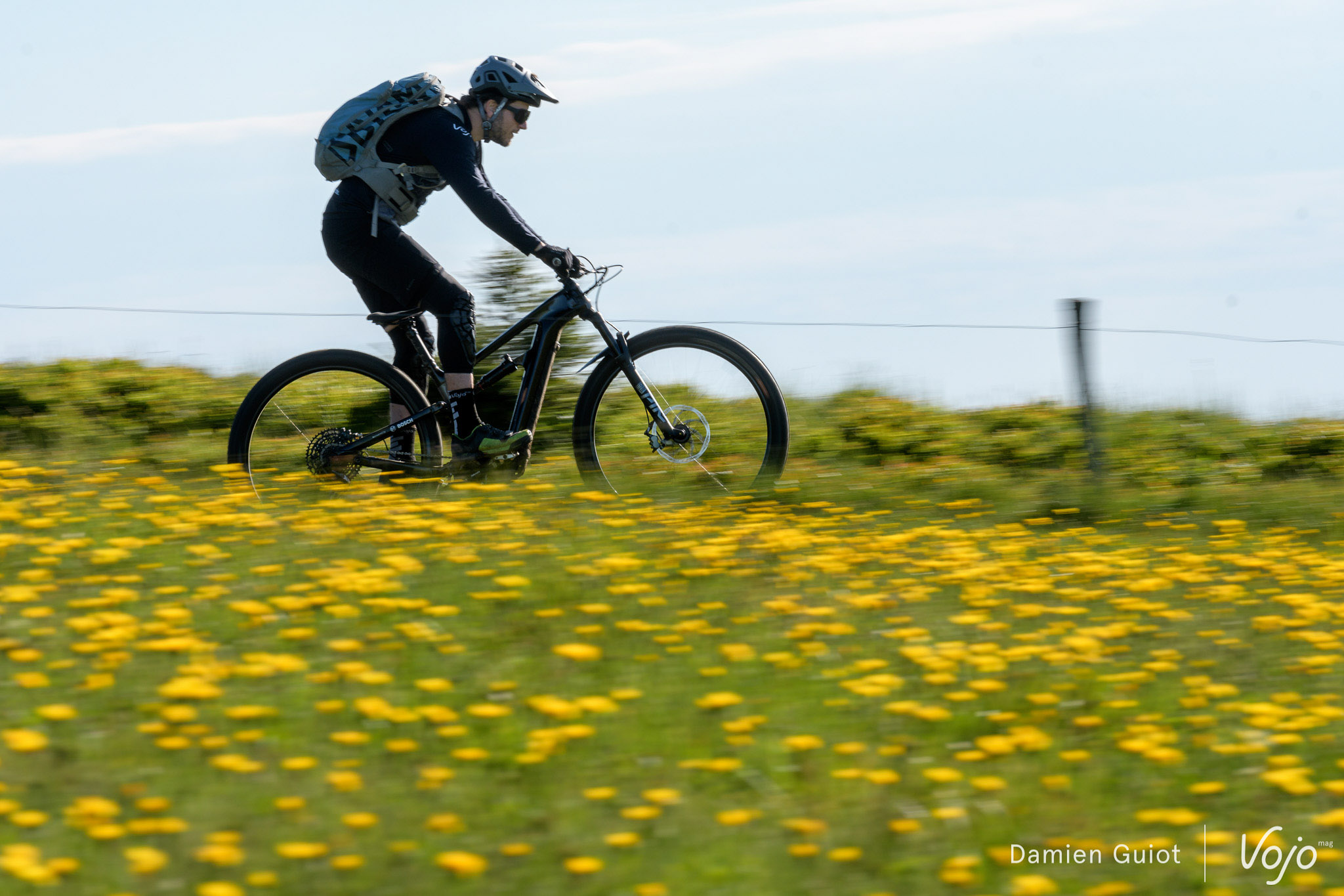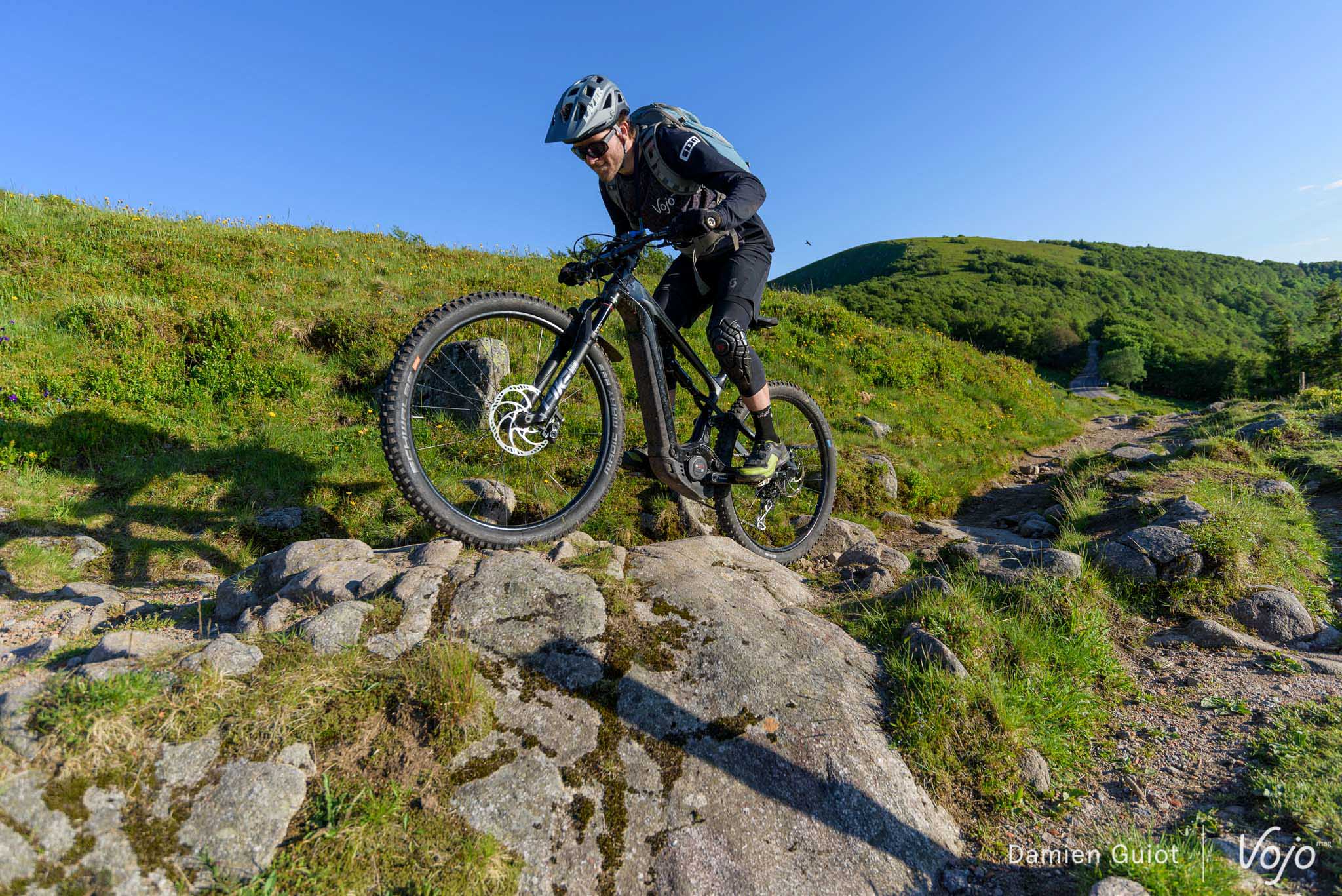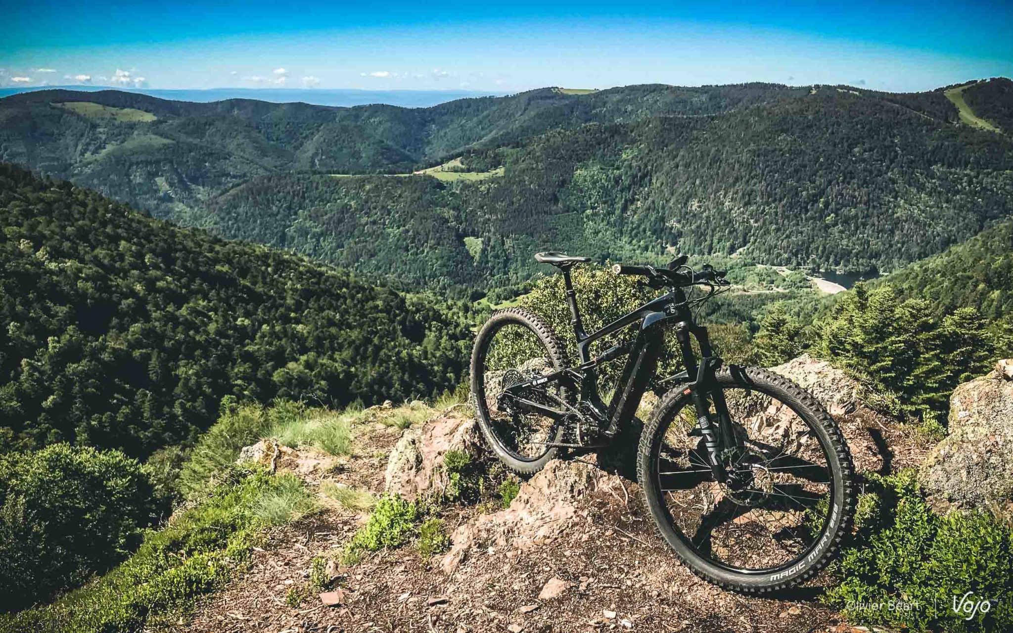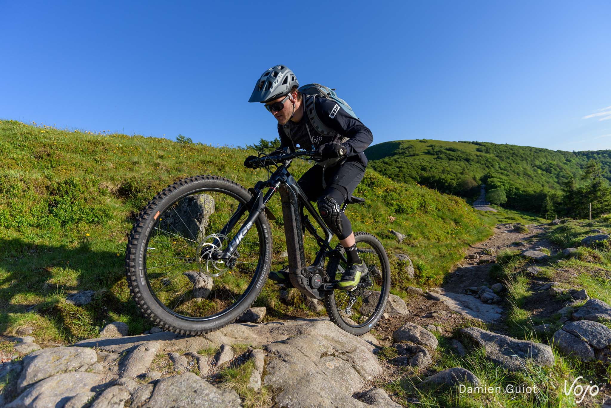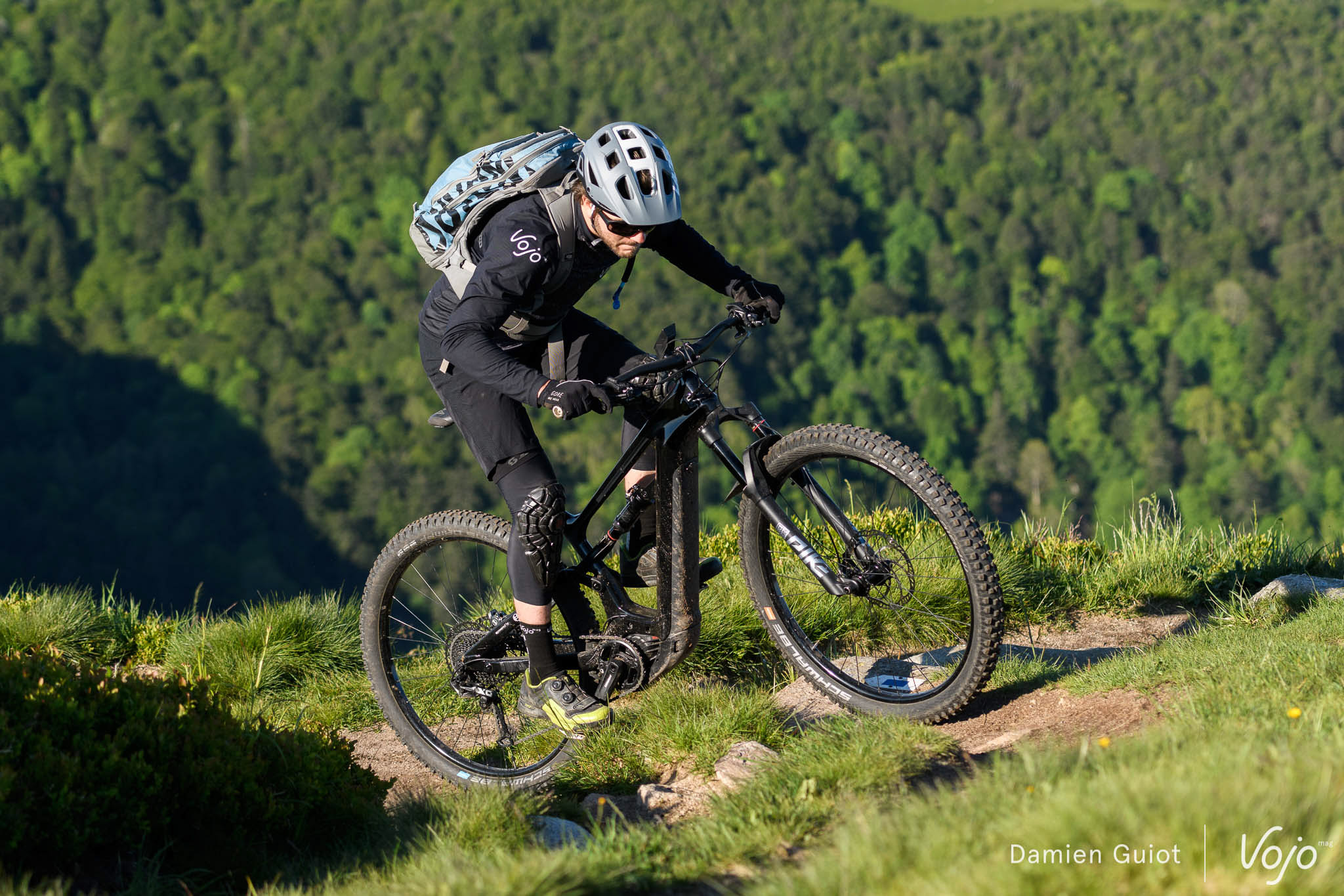 L’après-midi, le tracé est plus varié. On va encore monter en direction du point culminant de l’Alsace, le Grand Ballon, mais ce sera plus une alternance de petites montées et descentes et plus de flow que lors des premiers kilomètres le matin. On se permet donc de jouer davantage avec les modes supérieurs, dont l’eMTB.