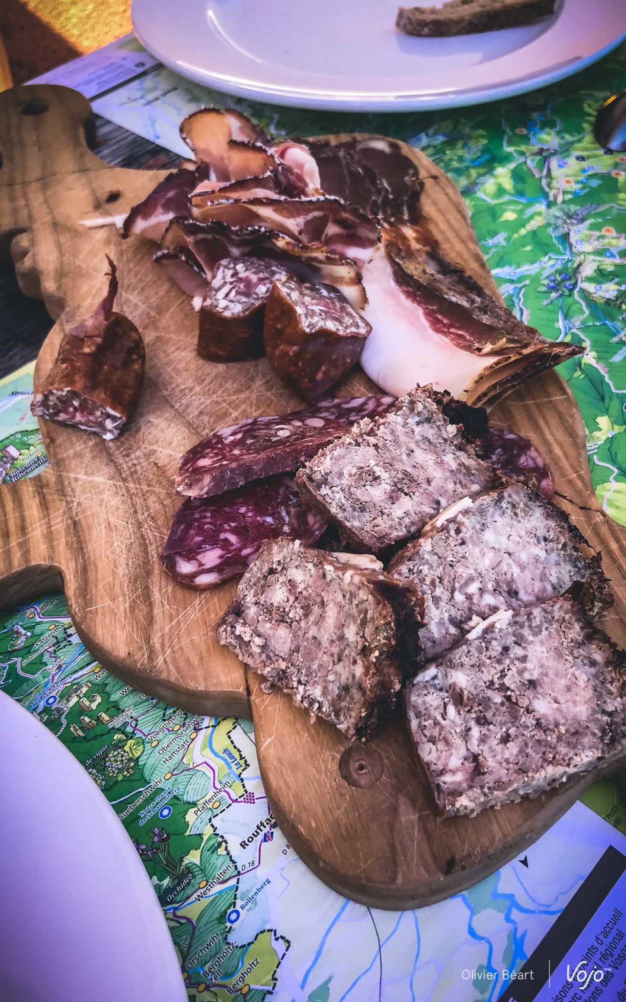 Quelques instants plus tard, nous arrivons à notre destination de midi, l’excellente ferme-auberge Thanner-Hubel, où nous sommes accueillis par le patron, très ouvert aux cyclistes et aux e-bikers en particulier, dans la mesure où ils représentent une part de plus en plus importante de la clientèle de son restaurant… qui n’est pas accessible en voiture. Il a donc très vite accepté la proposition de Bosch de l’équiper de chargeurs et d’en faire un point de recharge, dont nous allons profiter pour pouvoir continuer notre trip l’esprit tranquille. En moins de 2h, nos batteries sont chargées à près de 75%.