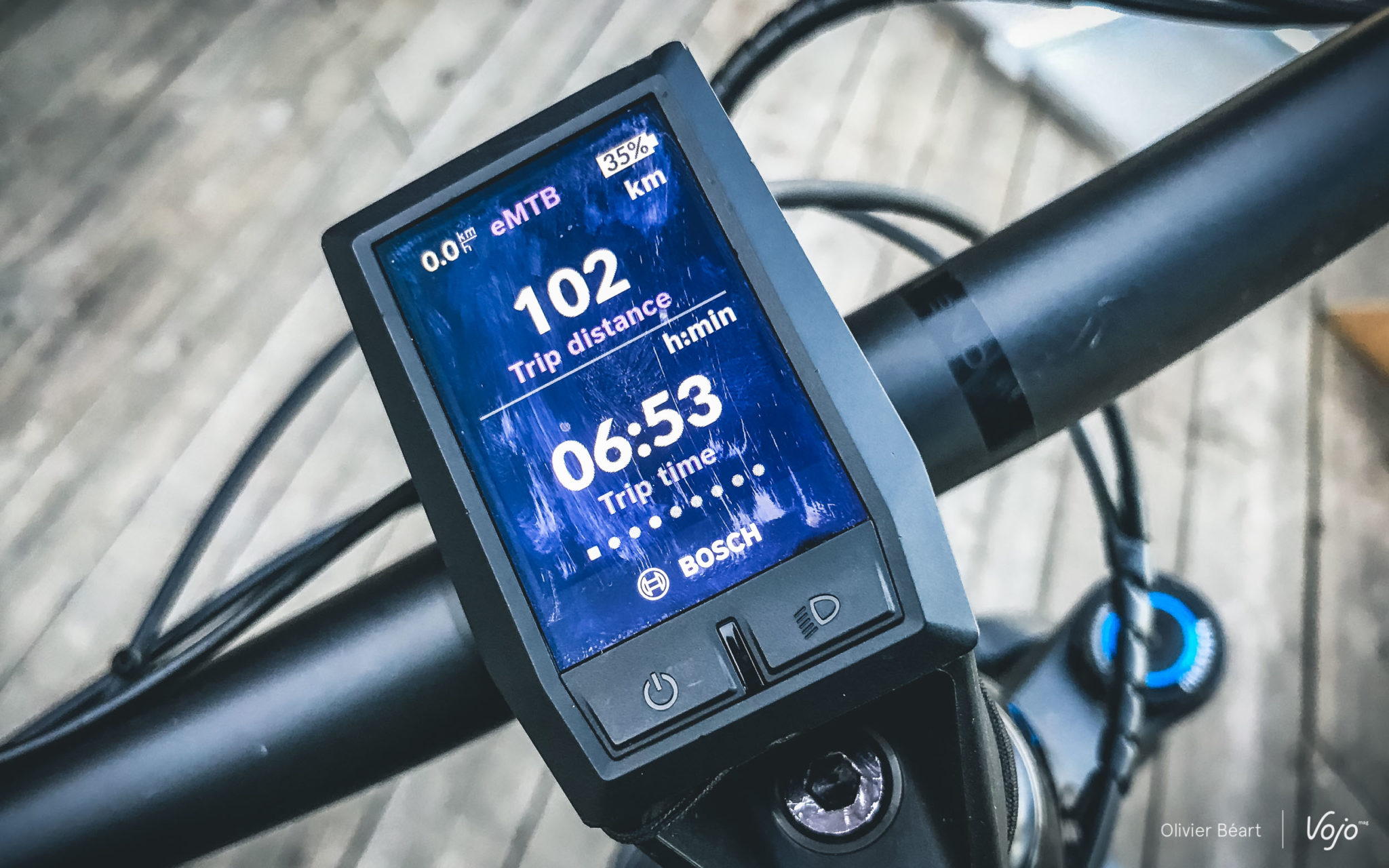 On dispose de 4 niveaux d’assistance : Eco, Tour, eMTB et Turbo. Le mode Eco se veut très économique, le Tour permet un usage polyvalent en vrai vtt tout en essayant de minimiser la consommation, le eMTB joue lui la carte de l’élasticité et de la polyvalence quitte à parfois consommer un peu plus et le Turbo a été revu pour être toujours aussi musclé mais tout de même moins brutal et donc plus utilisable que par le passé. Bosch ne permet par contre toujours pas de customiser chaque mode selon ses envies, comme le font Shimano et la plupart des utilisateurs du moteur Brose, Specialized et BH en tête.
