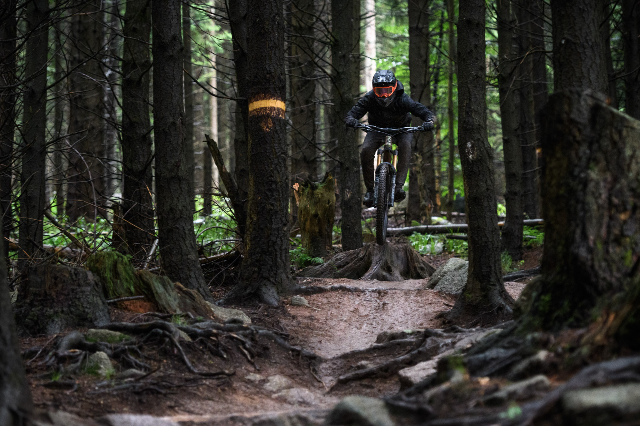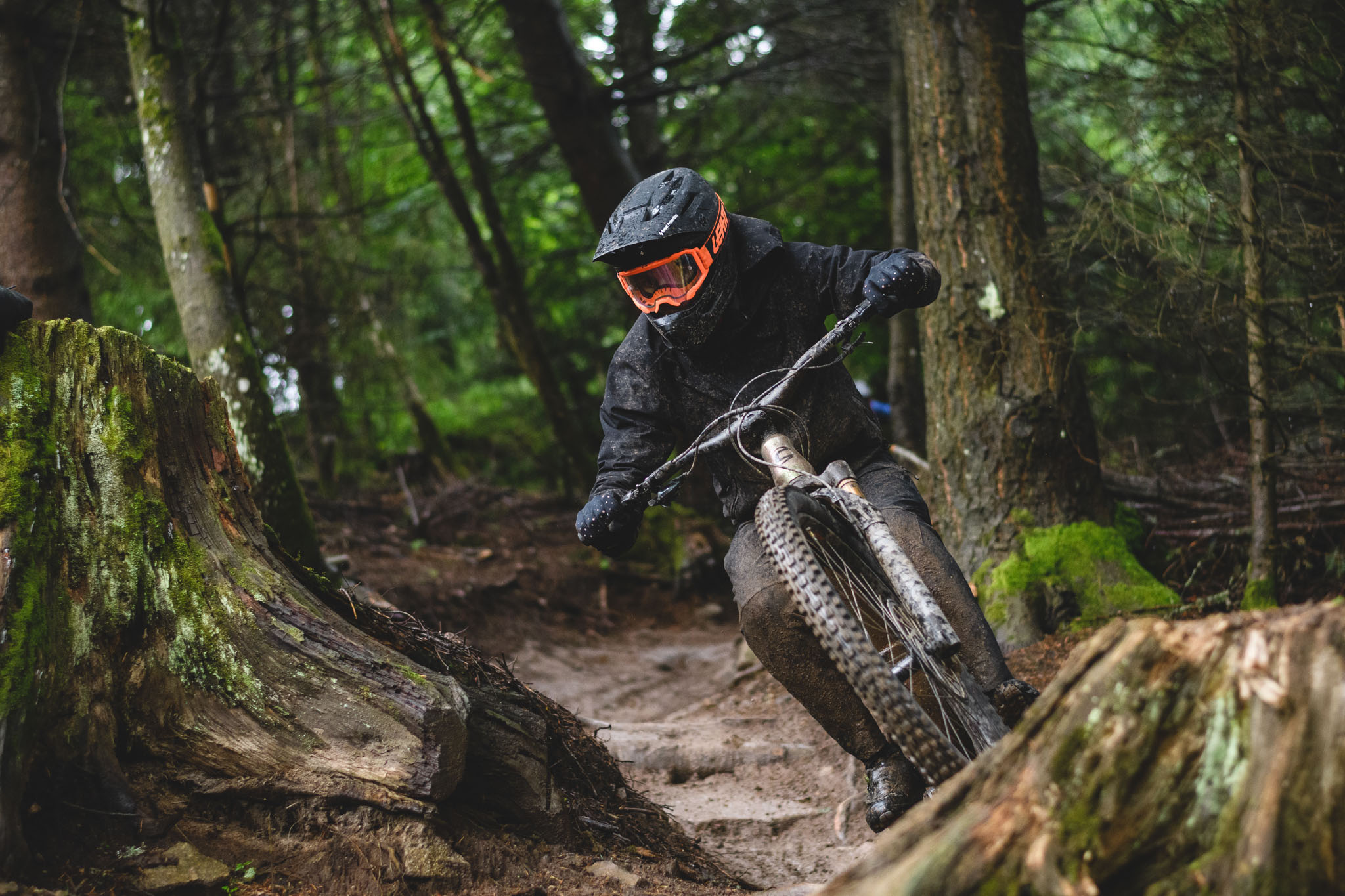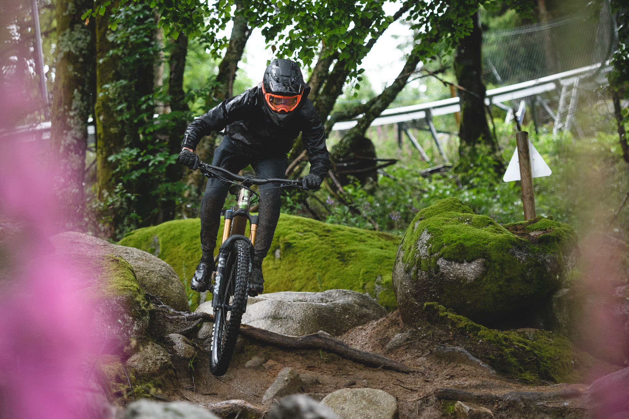 Lorsque nous arrivons sur le bikepark du Lac Blanc pour cette première journée de test, nous sommes accueillis par la pluie qui tombe en abondance. Ce n’était pas vraiment prévu, mais ça nous permettra de voir ce que donne la Gravity Cavity dans de mauvaises conditions !