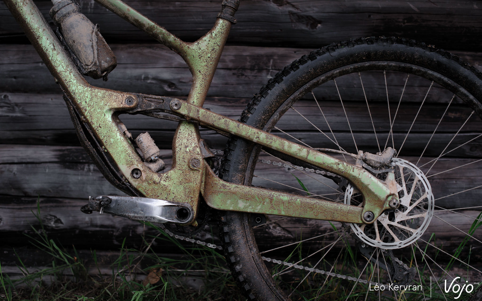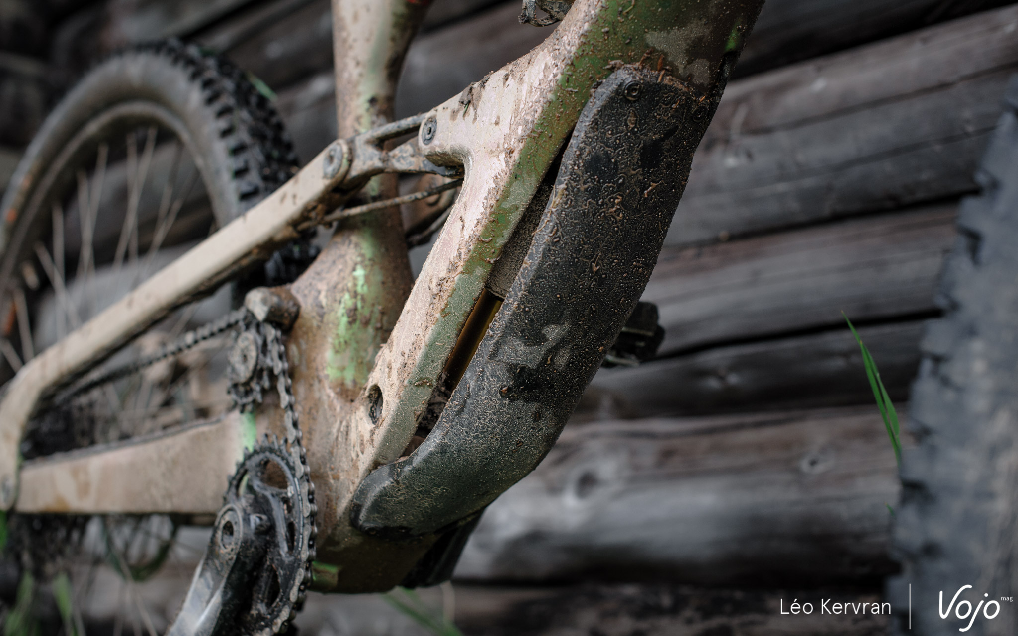 Et la Gravity Cavity alors ? Les photos « statiques » qui illustrent le début de l’article ont été prises à la fin de cette journée et comme vous pouvez le constater, le vélo n’a rien stocké sous l’amortisseur. Bien sûr, tout est recouvert de cette boue sablonneuse typique de la région mais nous n’avons pas eu l’impression que c’était très différent de ce qu’on aurait pu avoir avec un autre vélo à la construction plus classique.