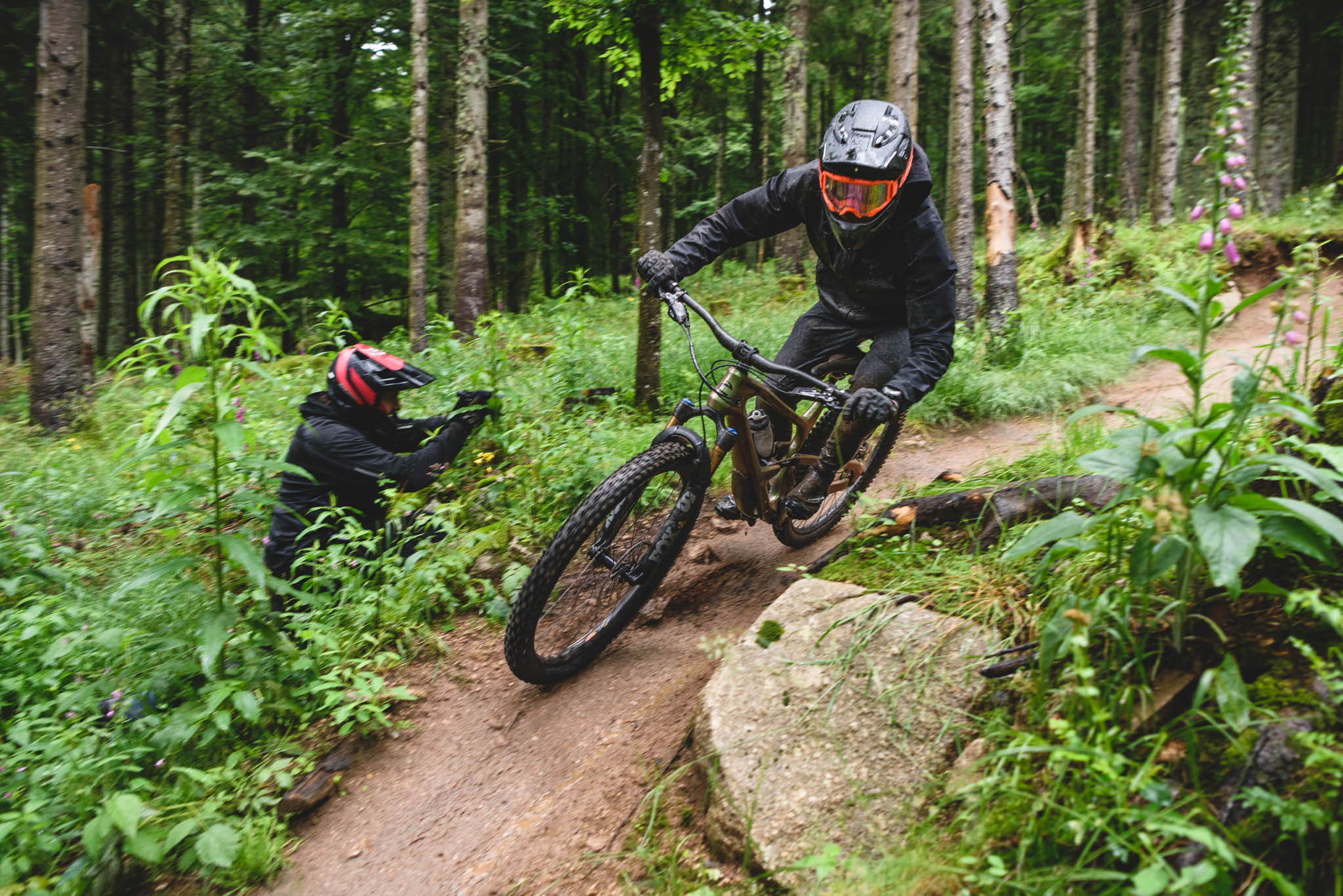 Lorsque nous arrivons sur le bikepark du Lac Blanc pour cette première journée de test, nous sommes accueillis par la pluie qui tombe en abondance. Ce n’était pas vraiment prévu, mais ça nous permettra de voir ce que donne la Gravity Cavity dans de mauvaises conditions !