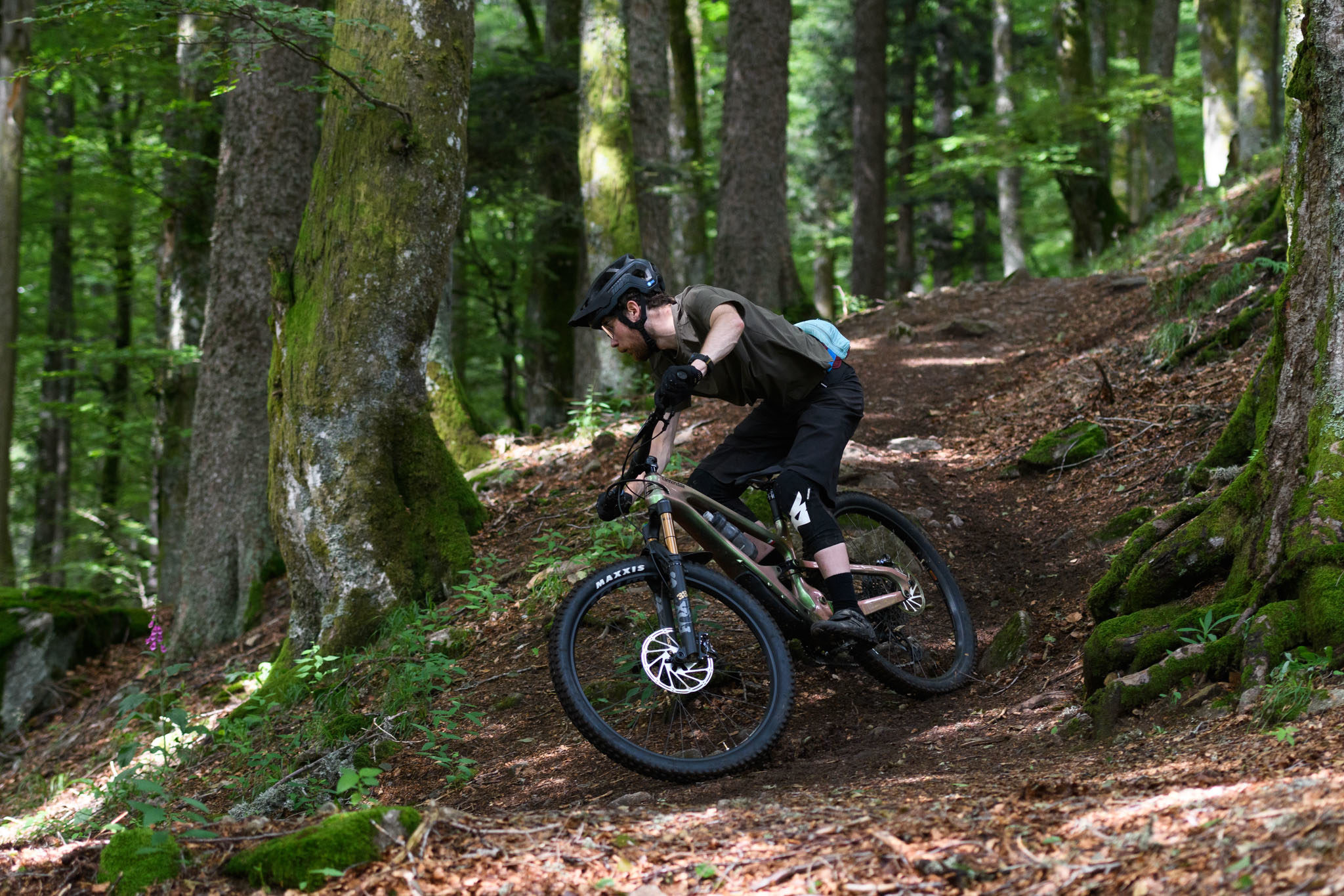 En effet, lorsque le rythme augmente sur des sentiers techniques je suis beaucoup moins à l’aise, je ne parviens pas à trouver mon équilibre avant/arrière sur le vélo et je n’ai aucune sensation de grip. J’ai comme l’impression d’être déconnecté du terrain, de ne plus savoir comment on fait du vélo. De gênant en ligne droite, ça devient vite problématique lors de moments cruciaux comme sur des gros freinages. Est-ce à cause de cette cinématique qui isole la suspension du pilote (et vice-versa), me privant de « retours » auxquels je suis habitué ? A cause de l’axe de roue arrière qui recule plus que sur d’autres modèles (plus de 10 mm vers l’arrière, contre 3-4 mm sur Santa Cruz Megatower par exemple) et qui allonge encore plus le vélo ?