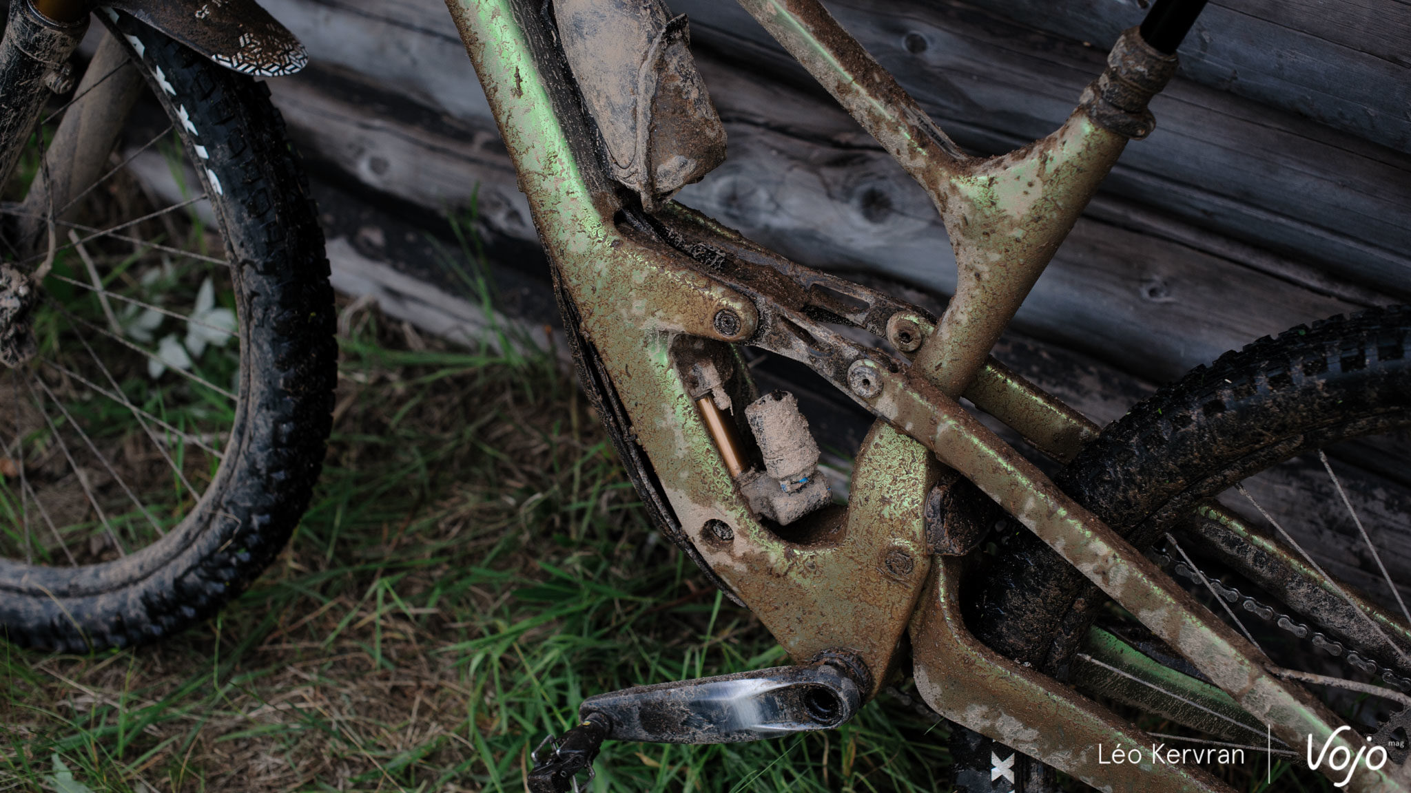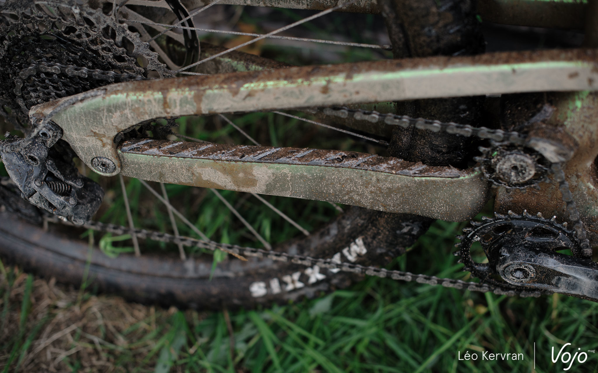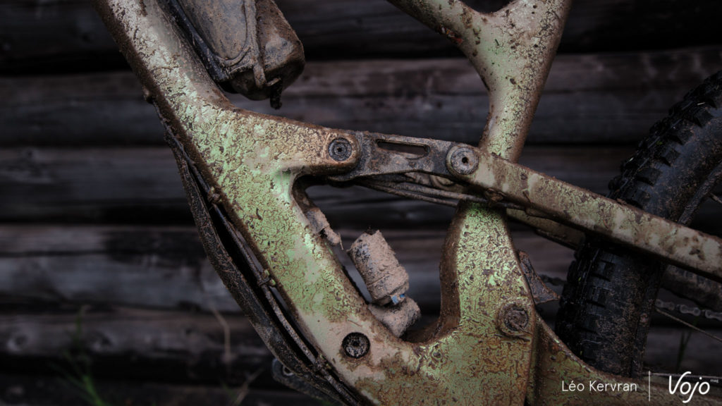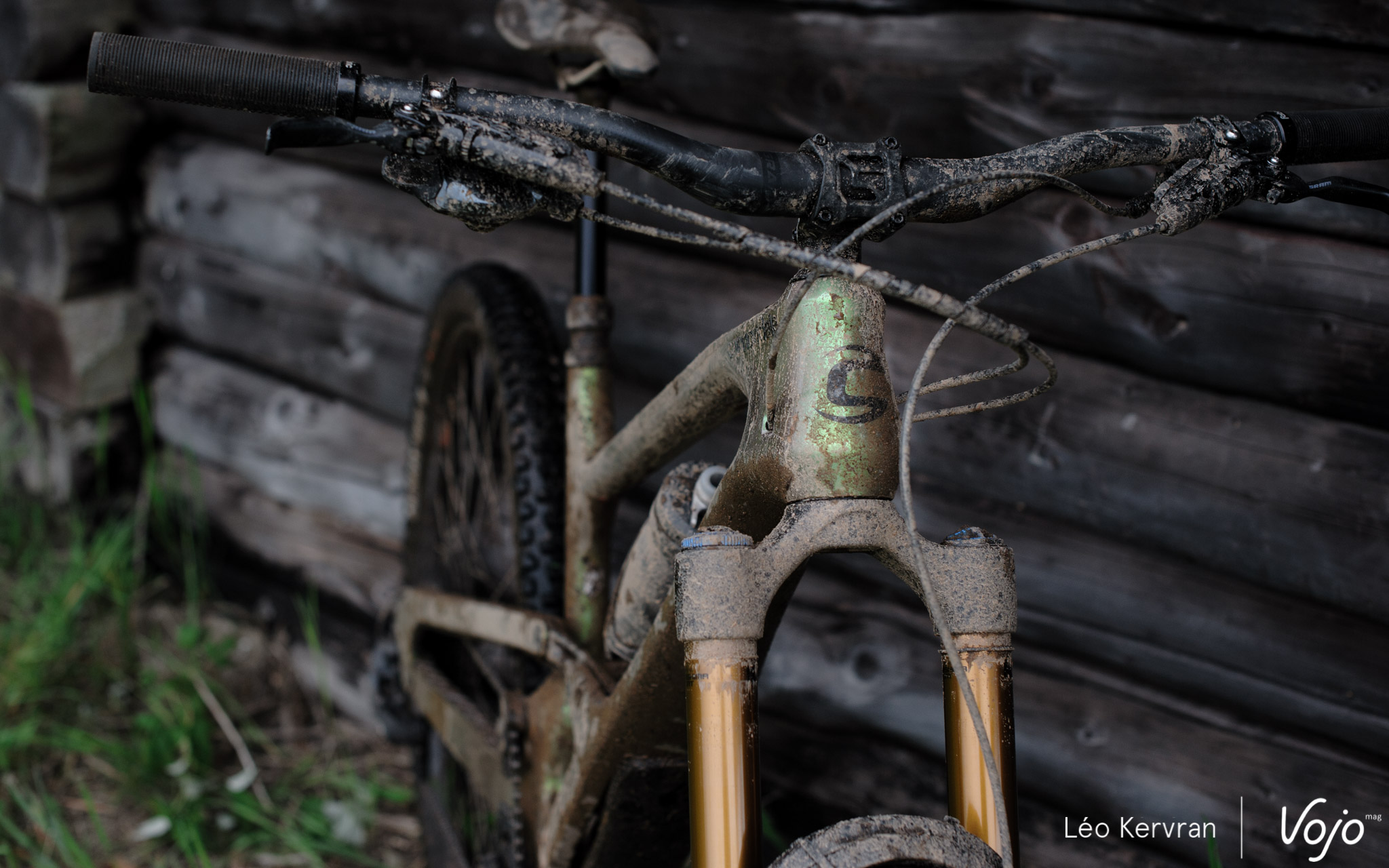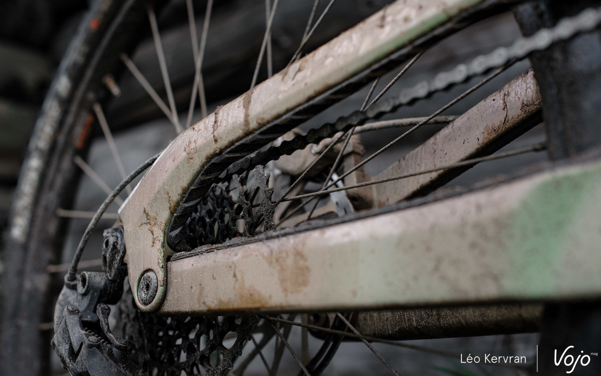 Et la Gravity Cavity alors ? Les photos « statiques » qui illustrent le début de l’article ont été prises à la fin de cette journée et comme vous pouvez le constater, le vélo n’a rien stocké sous l’amortisseur. Bien sûr, tout est recouvert de cette boue sablonneuse typique de la région mais nous n’avons pas eu l’impression que c’était très différent de ce qu’on aurait pu avoir avec un autre vélo à la construction plus classique.
