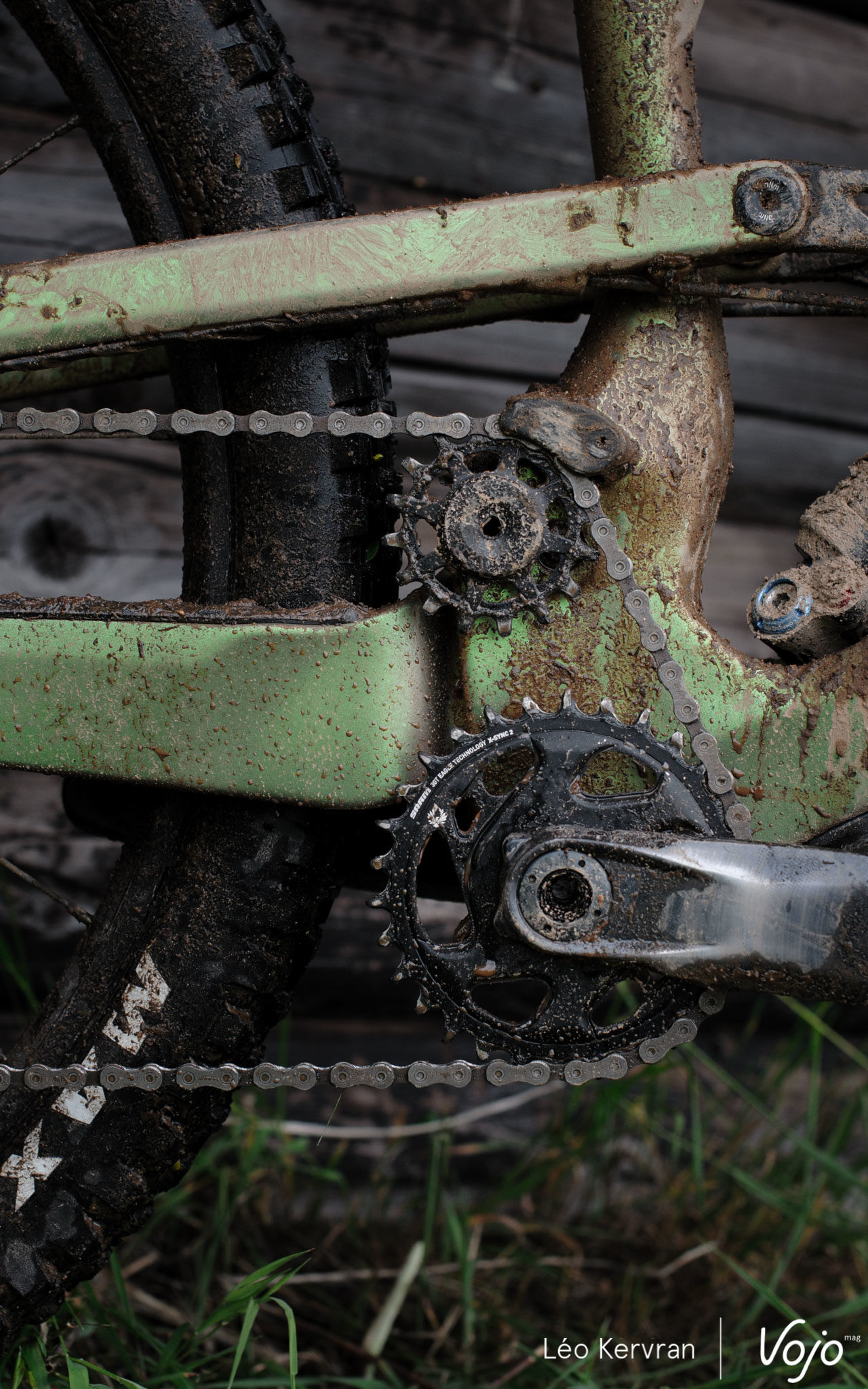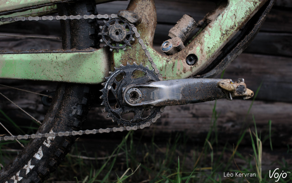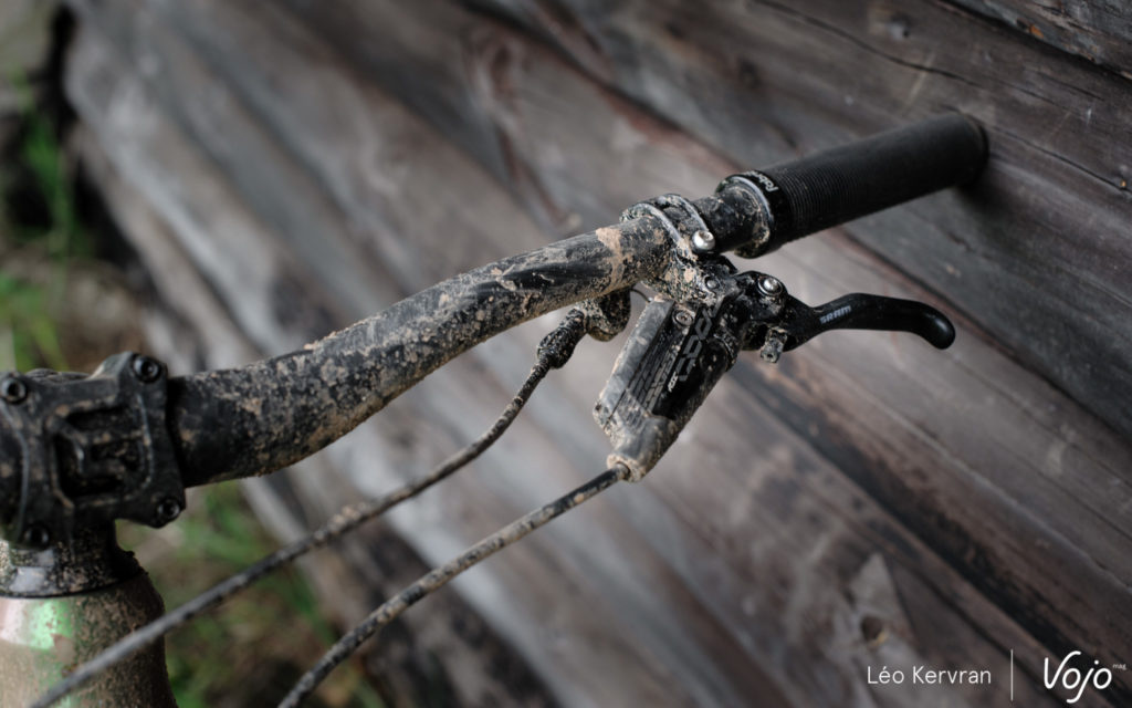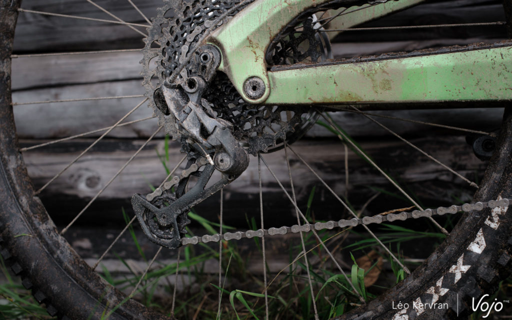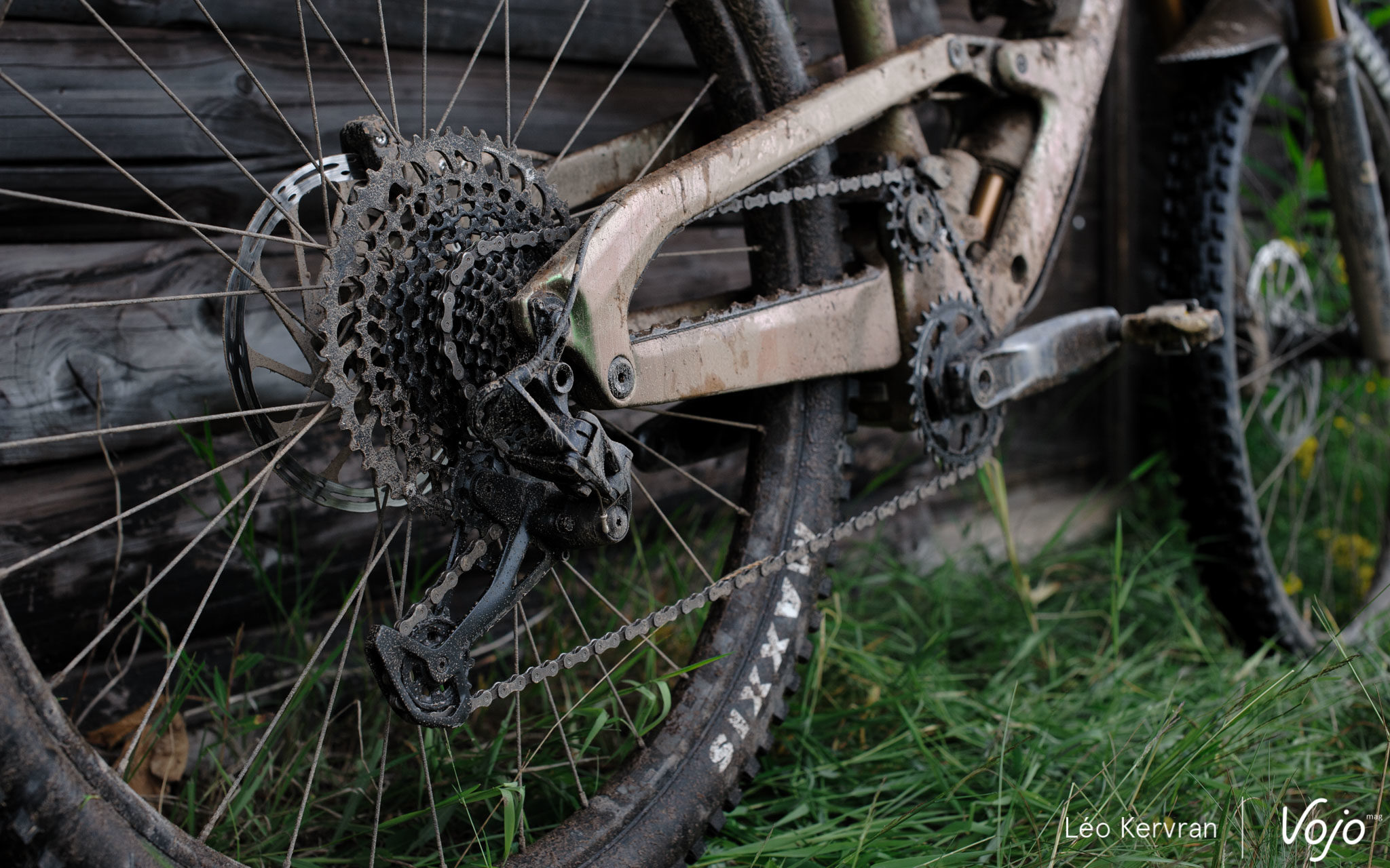 Et la Gravity Cavity alors ? Les photos « statiques » qui illustrent le début de l’article ont été prises à la fin de cette journée et comme vous pouvez le constater, le vélo n’a rien stocké sous l’amortisseur. Bien sûr, tout est recouvert de cette boue sablonneuse typique de la région mais nous n’avons pas eu l’impression que c’était très différent de ce qu’on aurait pu avoir avec un autre vélo à la construction plus classique.