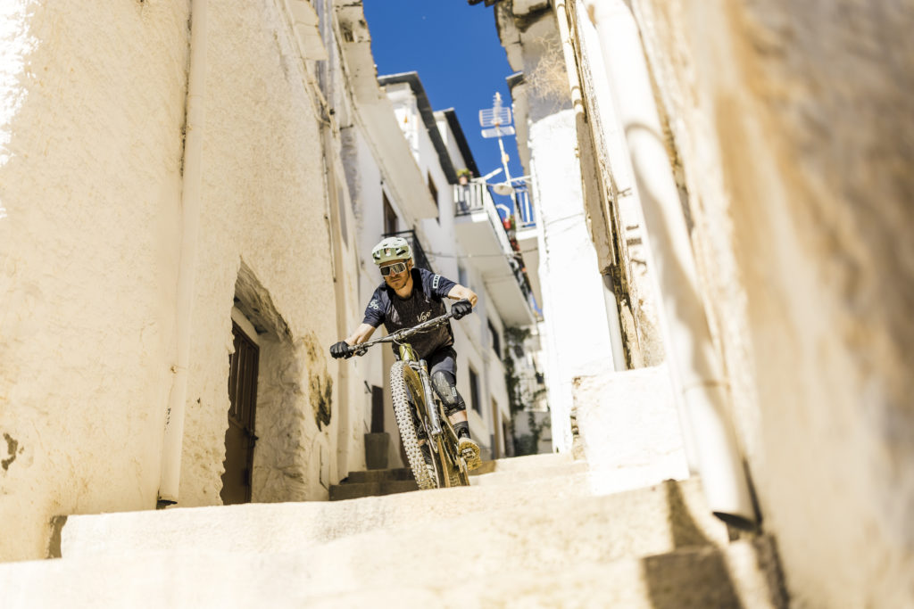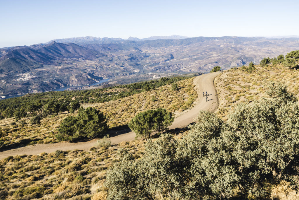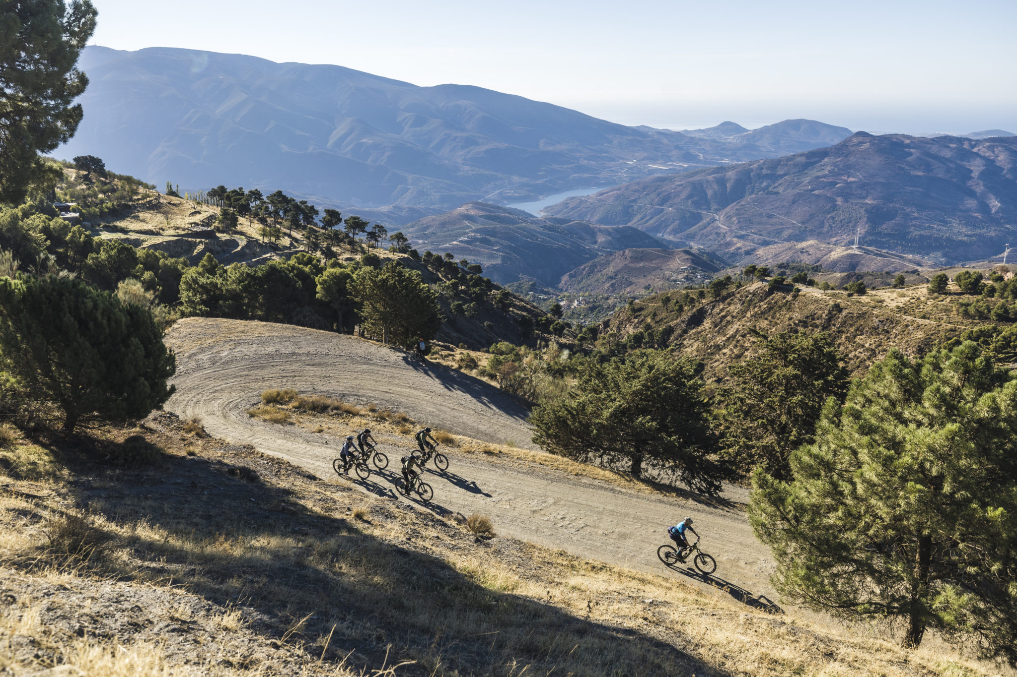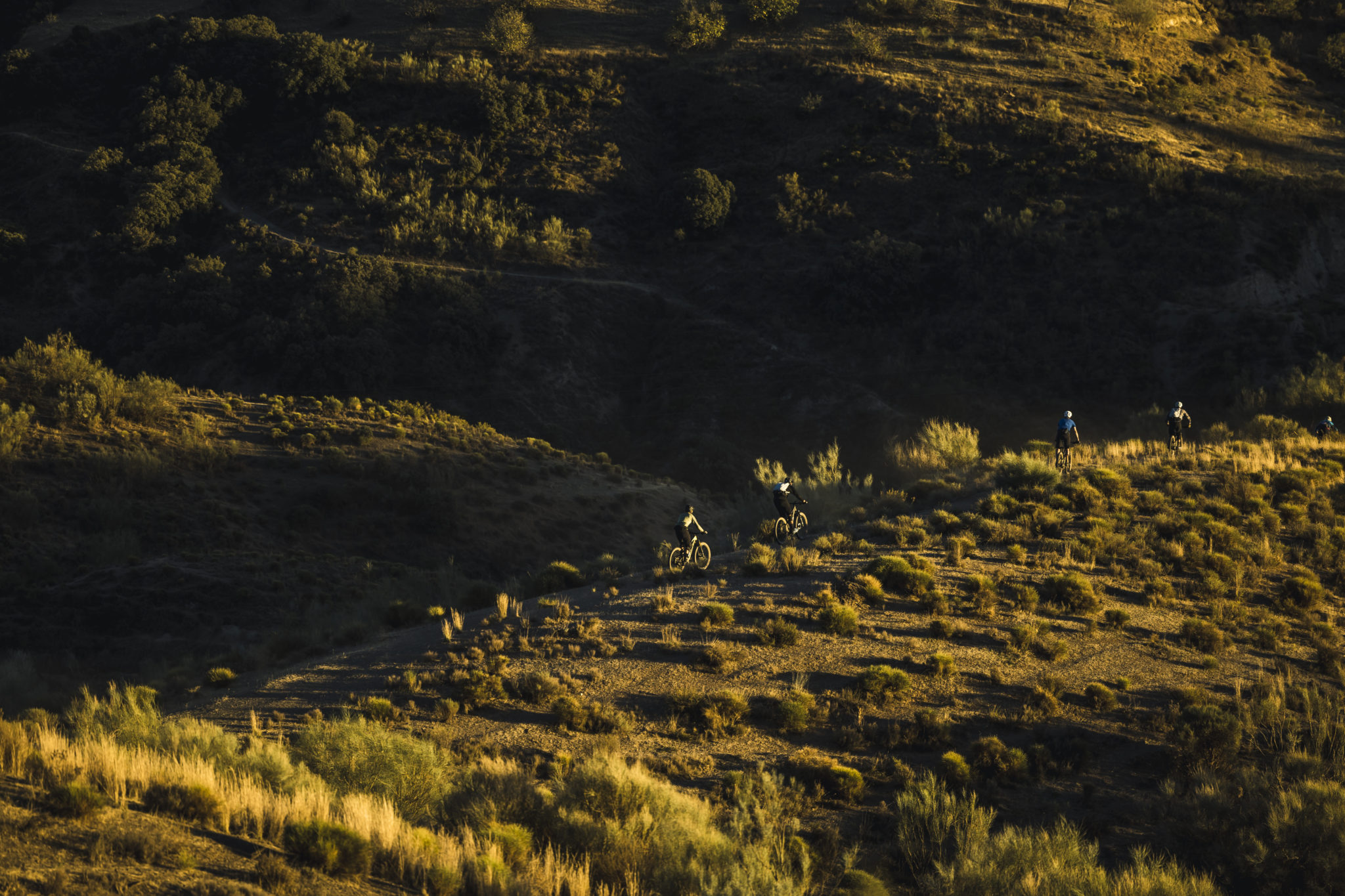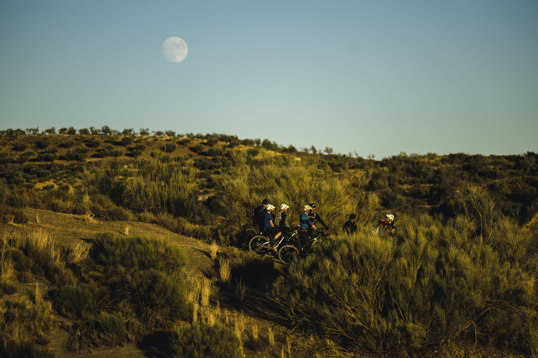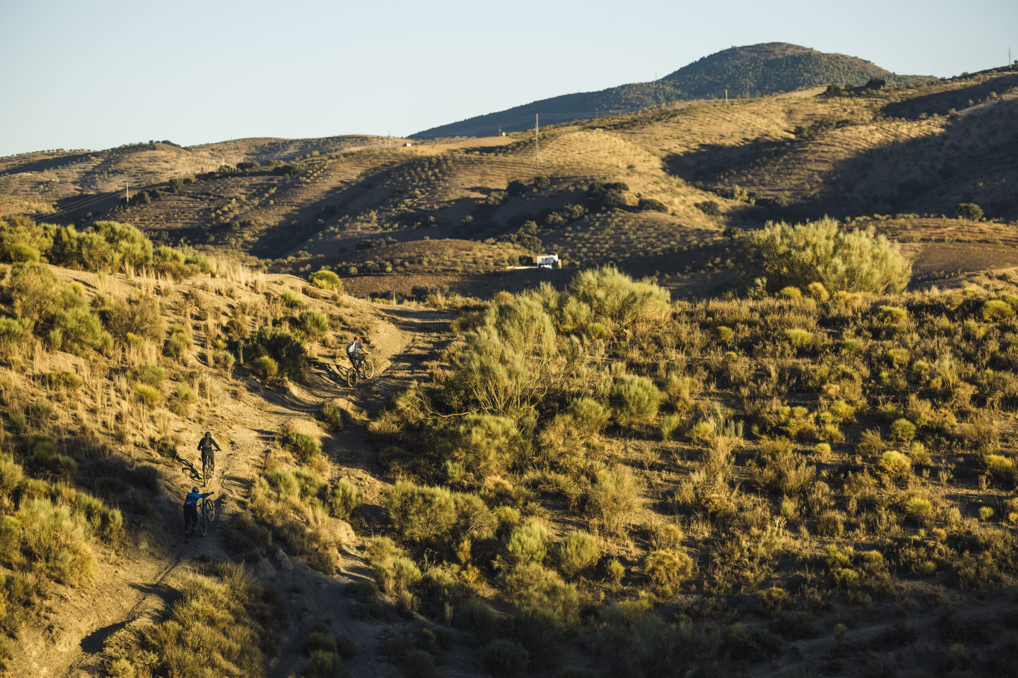 Dès le réveil, on ne peut être qu’éblouis par le caractère unique de l’endroit où nous nous trouvons. Nous avons une vue sur le paysage typiquement brun-vert et vallonné de la Sierra Nevada. Dans la vallée, nous apercevons un village dont les maisons blanches brillent de mille feux. Mais dans tout ça, où est mon vélo ? Ai-je besoin de savoir quoi que ce soit à son sujet ? Eh bien non, il suffit d’ajuster la position ainsi que ses réglages de suspension, de pressuriser les pneus et de partir ! Attention, c’est un modèle au coloris brun-vert… Il va falloir s’assurer de ne pas le perdre dans le décor aujourd’hui.