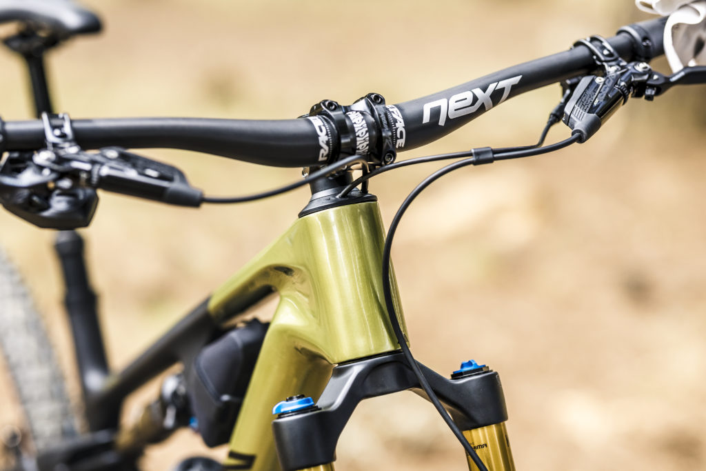 Au fur et à mesure de la sortie, quelques précieuses informations quant aux modifications apportées sur ce Neuron par rapport à la génération précédente se font entendre : le tube de selle s’est raccourci tandis que son angle est plus prononcé. Le triangle avant et le reach correspondant sont également plus longs que sur la version antérieure. Le cadre, malgré le renforcement des points de pivot, est annoncé comme plus léger et solide. Quasi devenu obligatoire à l’heure actuelle, ce nouveau Neuron dispose également d’un passage interne pour les câbles dont l’entrée se fait au travers du jeu de direction.