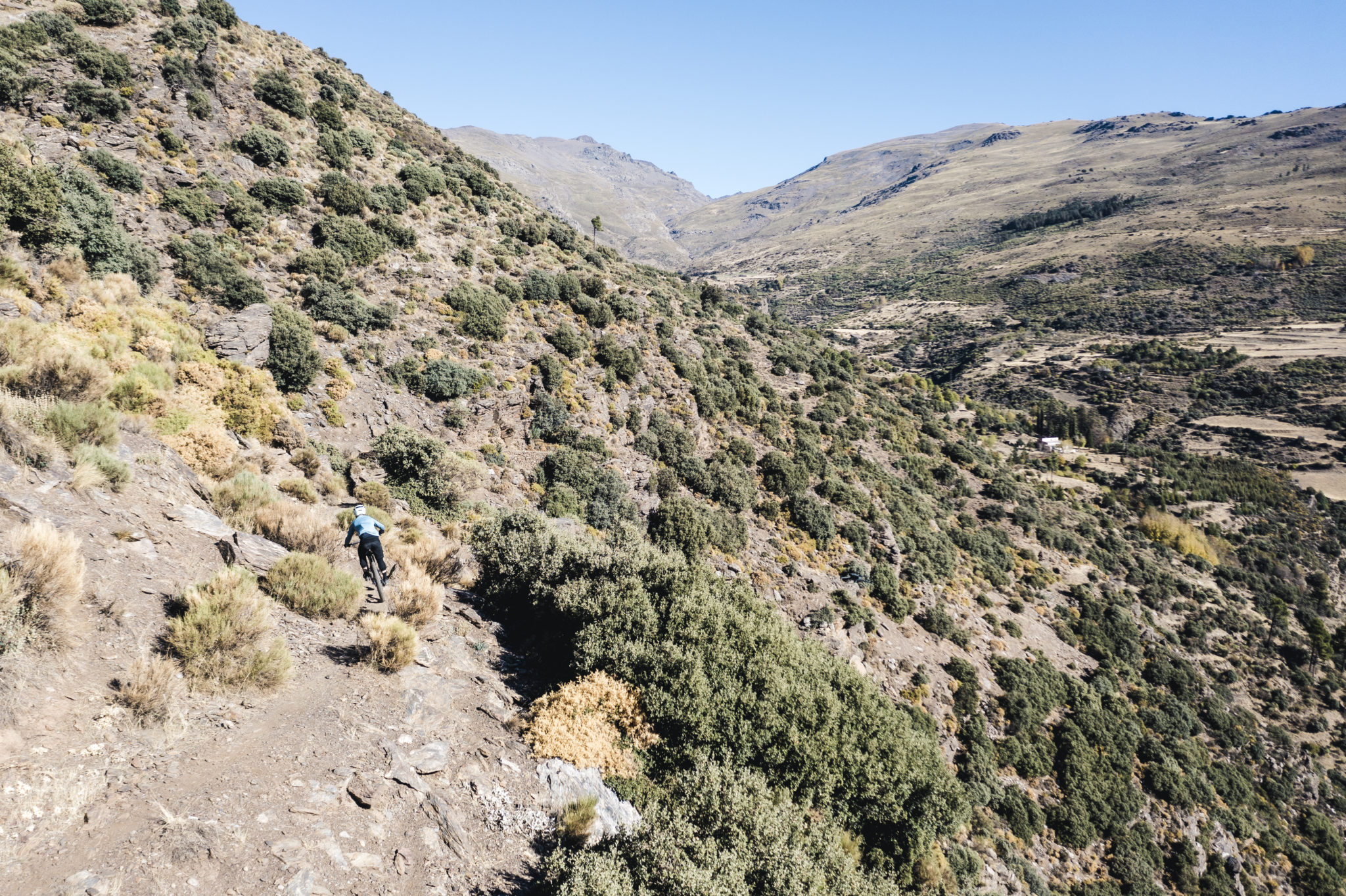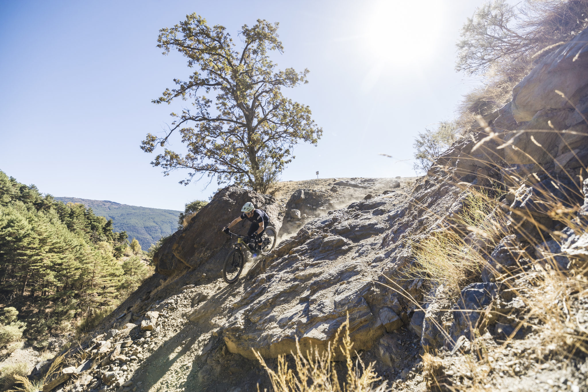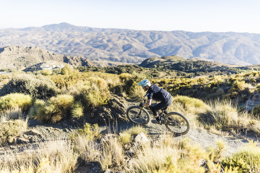 La dernière descente de cette première journée est mémorable. Surplombant le Mulhacén, la plus haute montagne de la péninsule espagnole, le départ est donné à plus de 2 000 mètres d’altitude en direction de la vallée. Paysages ouverts et vitesse grand V, les sensations sont au rendez-vous. Malgré un débattement similaire, le Neuron est toutefois moins stable que le Spectral 125, et il nous faut rester attentifs. Le Neuron réagit toujours sainement, sans surprendre le pilote avec un comportement imprévu, mais il ne s’agit là définitivement pas d’un « mini-enduro ».