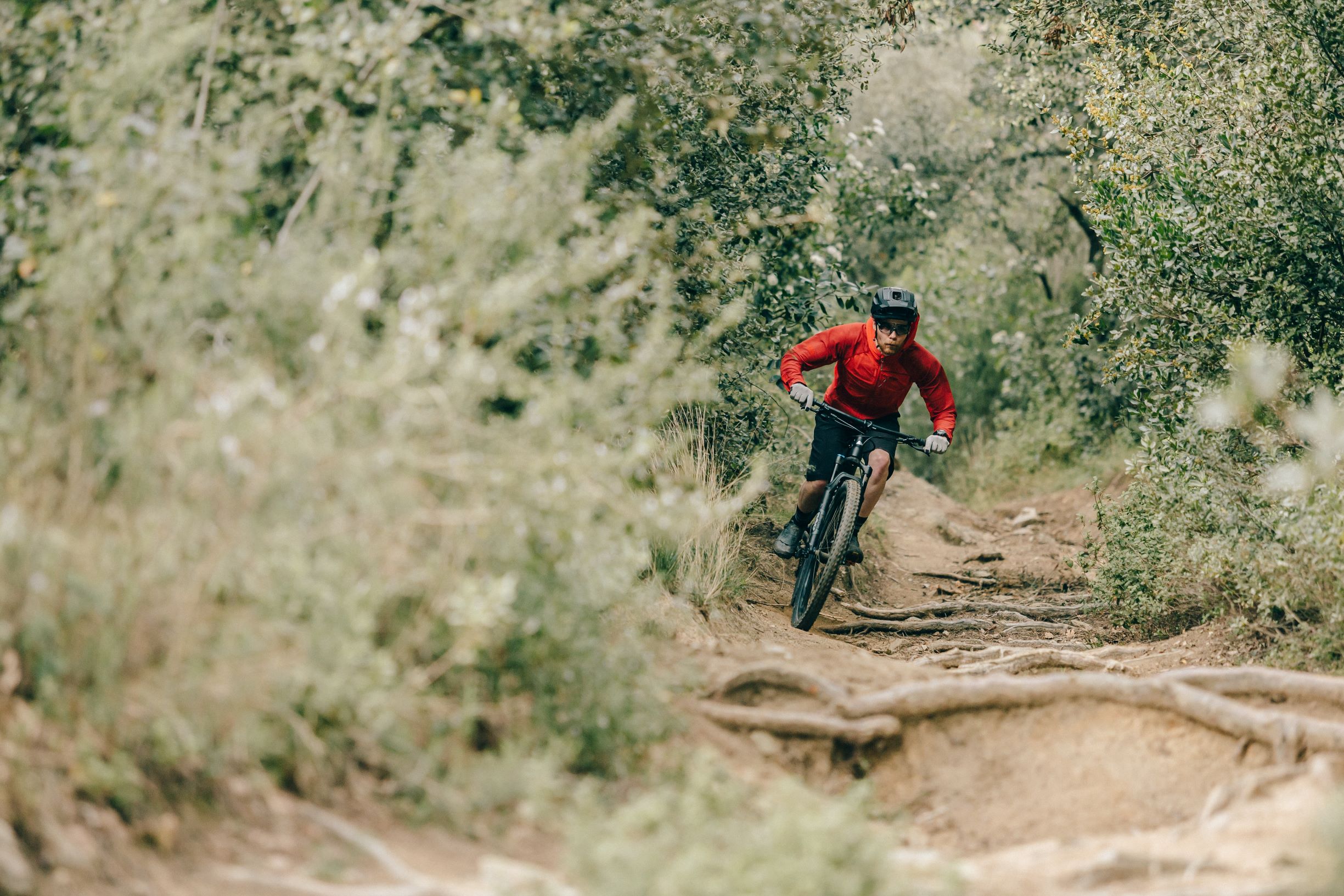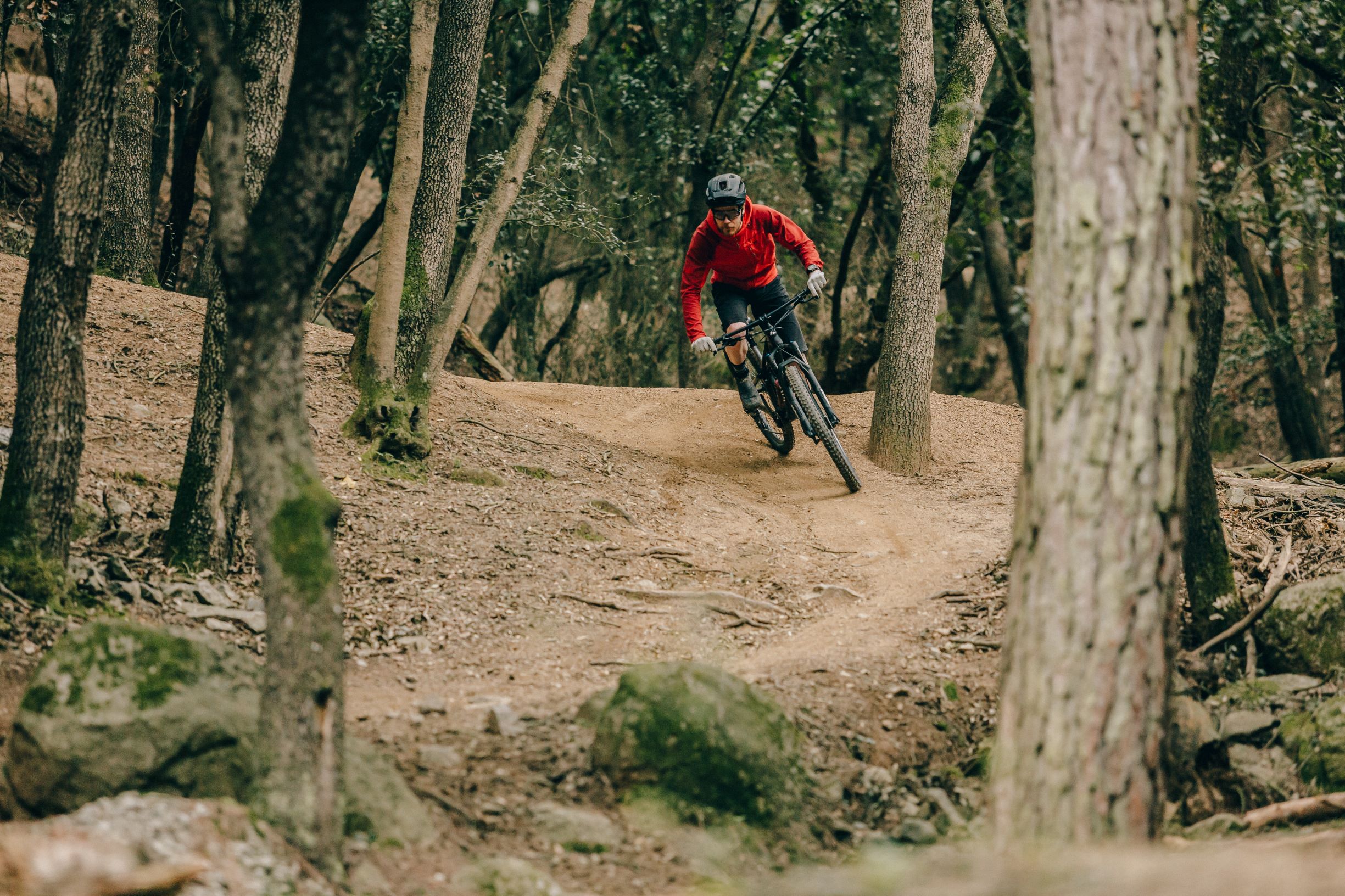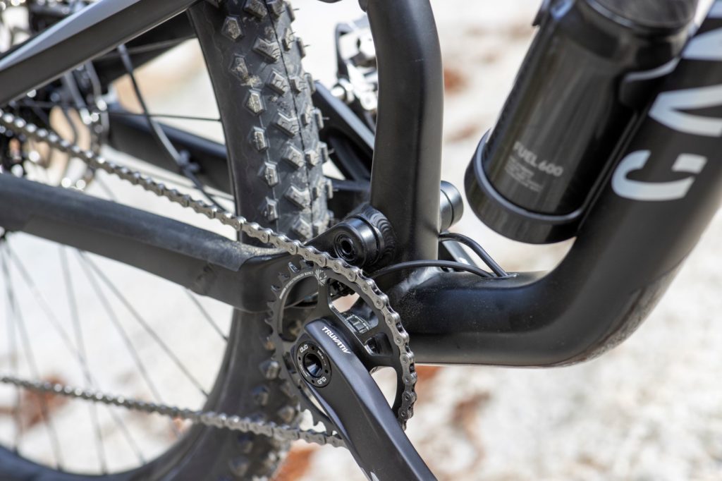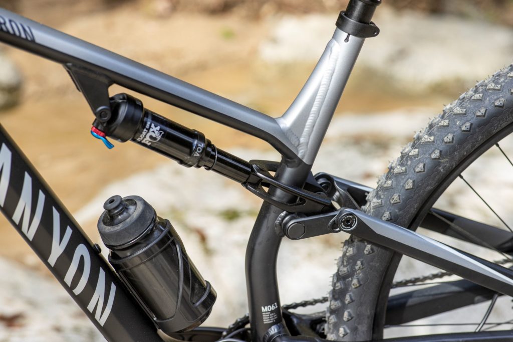 Lorsqu’on débloque les suspensions pour des sections plus techniques, l’anti-squat n’empêche pas totalement le tube de selle de s’affaisser légèrement mais ça reste acceptable. On retiendra surtout que, réglé à 25 % de sag, le vélo pompe très peu et c’est plutôt une bonne chose pour rouler longtemps.