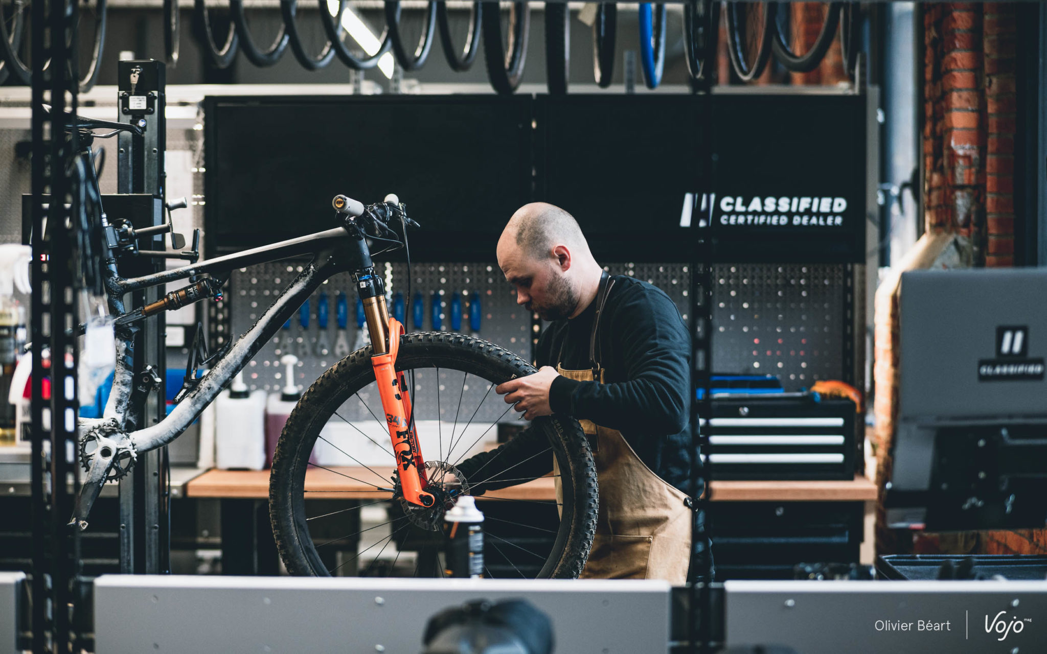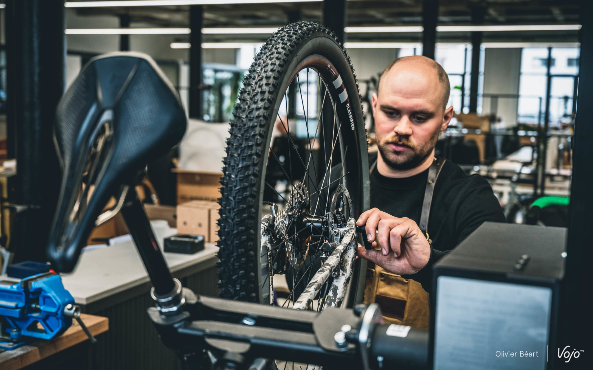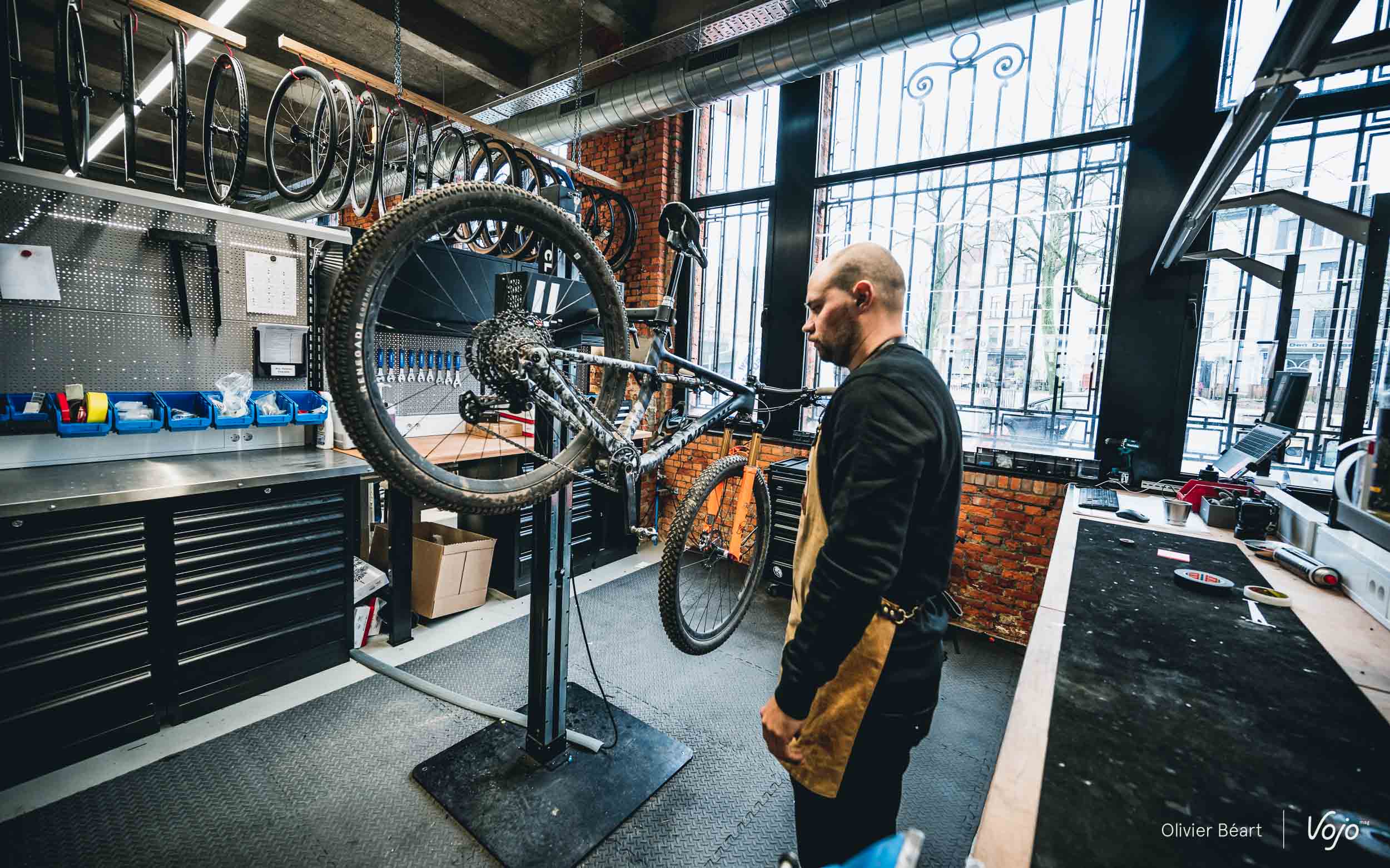 Notre visite se clôture par la rencontre du responsable de l’atelier de la marque anversoise, qui va se charger de monter le système Powershift sur le Specialized Epic Evo S-Works qui nous sert régulièrement de base de test (et que vous connaissez bien : Dream Build | Specialized Epic Evo S-Works : l’heure du bilan).