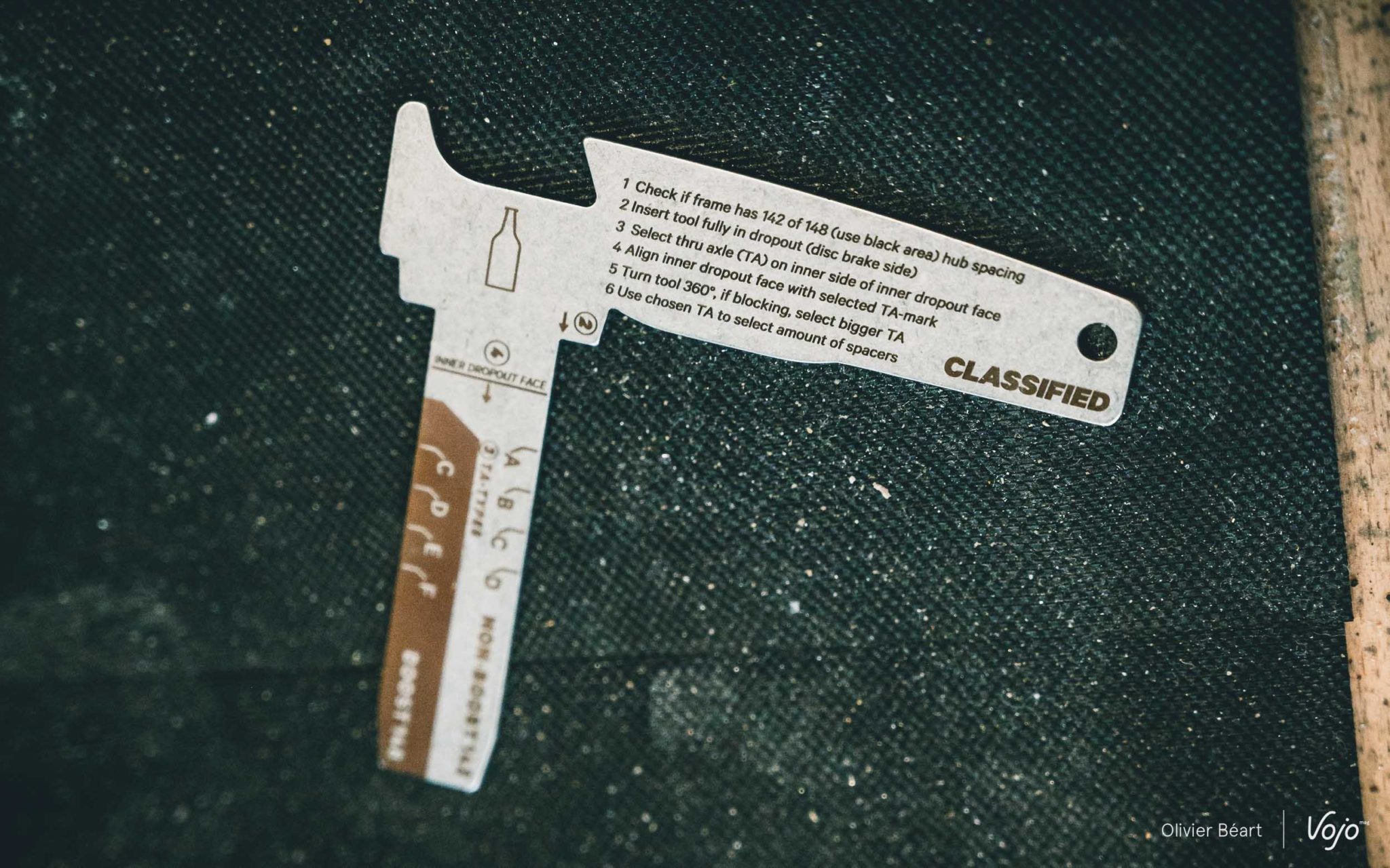 L’équipe Classified nous en a parlé : l’installation n’est pas compliquée en elle-même, mais elle nécessite une série de petites pièces/adaptateurs/spacers en fonction des formes et dimensions de la partie arrière de votre cadre. En effet, si l’entraxe du moyeu est bien standard (148mm en VTT), les dimensions externes des cadres varient au niveau de l’axe arrière. Longueur d’axe, pas de vis, orientation du blocage : Classified a tout prévu, mais cela nécessite de prendre quelques mesures précises avant le montage et d’avoir une belle petite réserve de pièces pour trouver la bonne configuration initiale.