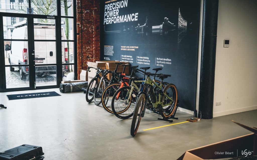 Si le principe d’une démultiplication intégrée au moyeu n’est pas neuf, pas plus que les moyeux à vitesses, la force de Classified a été de rendre cela très compact, léger, et aussi très efficace tant au niveau des frottements que de la rapidité des changements de rapports. Quelques chiffres parlants : Classified annonce un passage d’un mode à l’autre en 150 millisecondes dans son moyeu, le passage entre ces deux « engrenages » peut se faire en force (jusqu’à 1000 watts annoncés par la marque belge) et le shifter a une autonomie d’environ 10 000 utilisations. Voilà qui a attisé notre curiosité, et qui nous a poussés à nous rendre au QG de la marque, situé à Anvers.