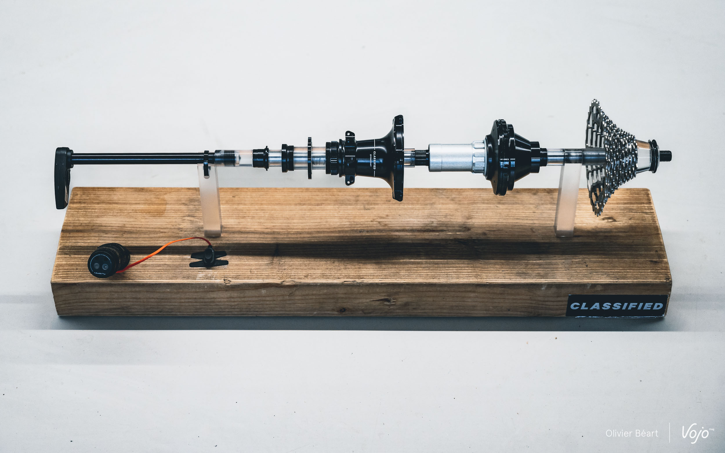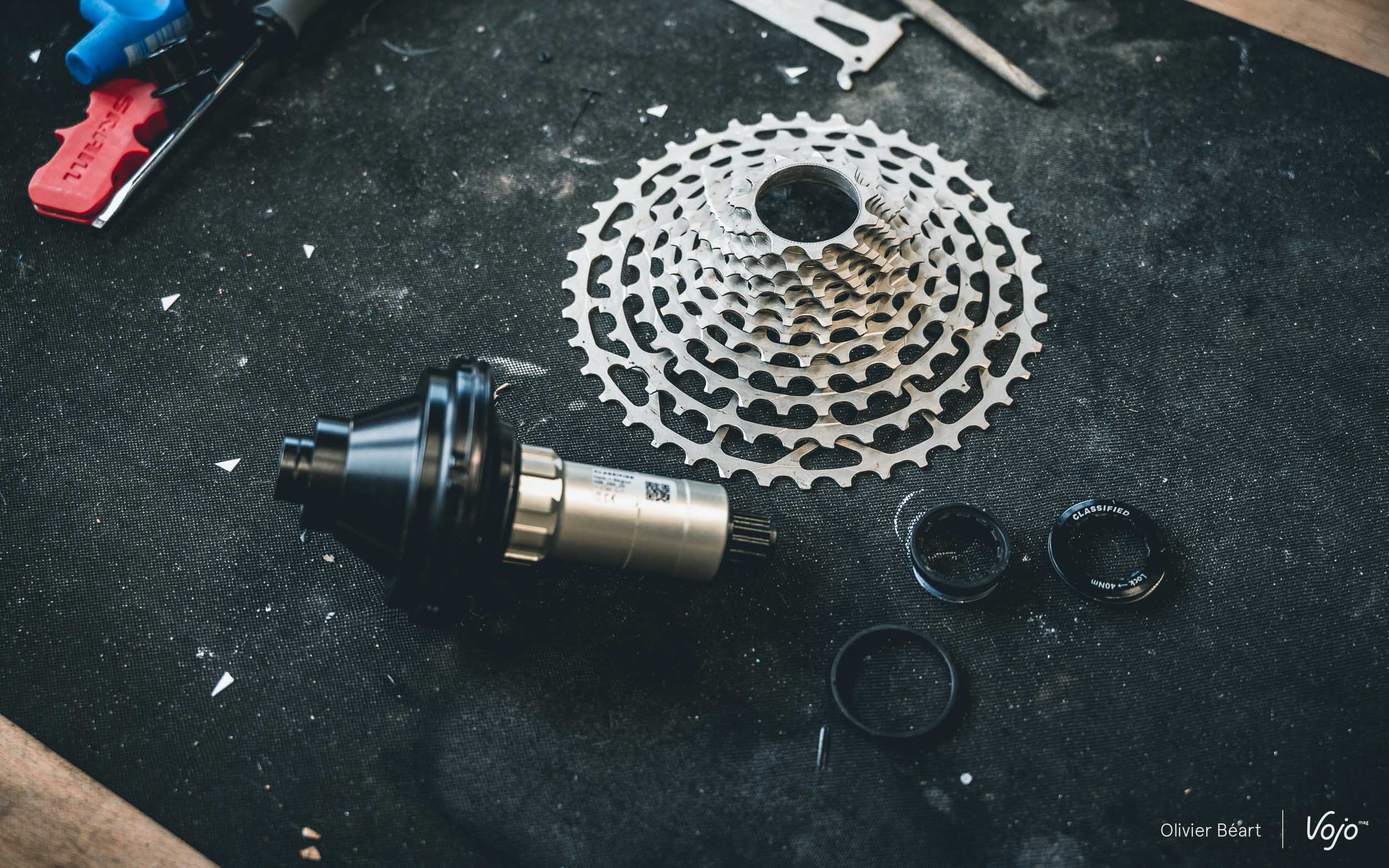 Hector : « L’option la plus complète, à 2 699€, comprend le système Classified, une cassette de son choix ainsi qu’une paire de roues en carbone. Si vous désirez monter le système Classified sur une paire de roues de votre choix, il est également possible d’acheter celui-ci avec le moyeu de la marque pour 1 549€ ou le système nu (NDLR : comprenez là, uniquement le mécanisme Classified sans jante, ni moyeu, à installer sur une paire de roues compatible équipée du moyeu Classified « vide »), au prix de 1 449€. Il est aussi possible d’acquérir un corps de moyeu seul ou une paire de roues compatibles mais « nues » et de n’avoir qu’un seul système Powershift qu’on fait passer d’un vélo à l’autre ou d’une paire de roues à l’autre. Le changement est très simple et ne prend que quelques minutes. »