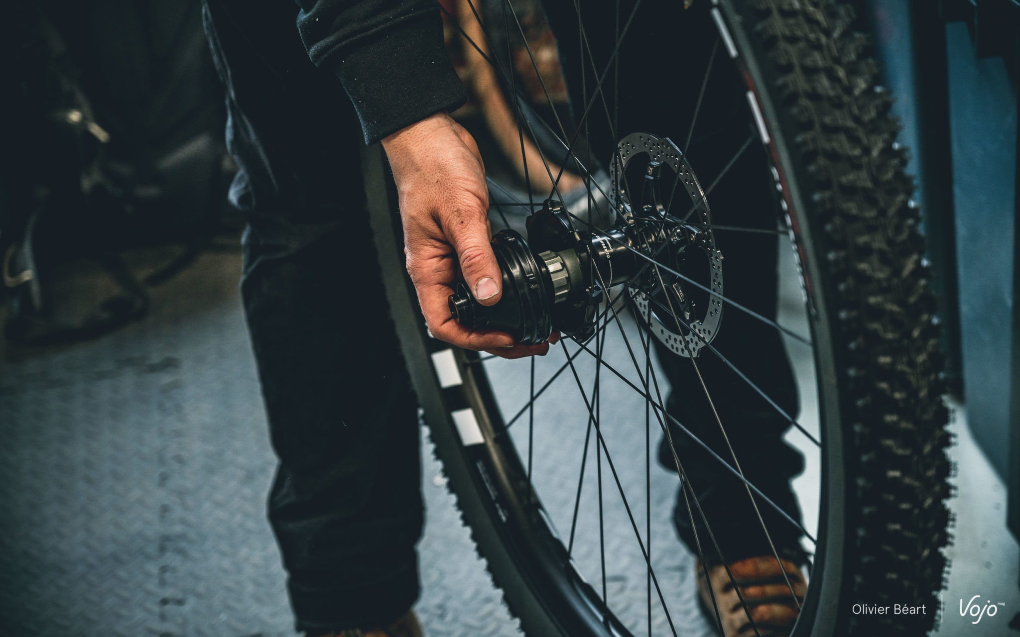 Bruno : « Oui, c’est tout à fait juste : la base est la même, mais nous avons effectué deux changements majeurs. Le premier est en rapport avec les contraintes que reçoit le système en VTT qui sont plus élevées que sur la version route/gravel, surtout au niveau du couple. Pour résoudre cela, nous avons redesigné la roue libre en doublant le nombre de cliquets et en modifiant leur forme. Nous avons également revu le dispositif de serrage. Le second point majeur de modification se trouve au niveau de la cassette, qui a été renforcée et ré-étudiée pour répondre aux spécificités de la pratique du VTT. En tout, cela représente plus de 47 changements de pièces par rapport à la version destinée à la route. »