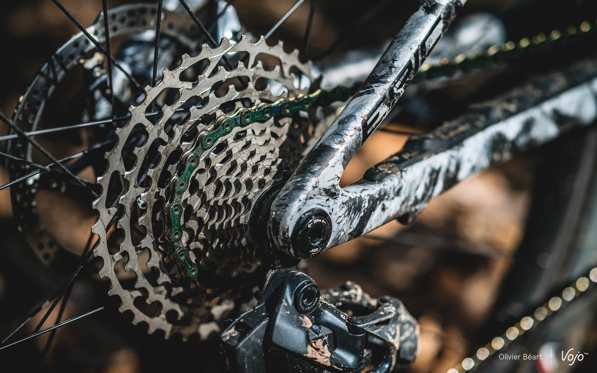 En pratique, cela se traduit par un écart plus petit entre les vitesses, et donc par la possibilité d’avoir un développement mieux adapté à chaque situation, et donc une cadence plus efficace sur le terrain. L’alignement de la chaîne est également amélioré, ce qui est synonyme d’un meilleur transfert de puissance. Évidemment, c’est un confort à l’usage, mais c’est également un facteur de performance. Là où l’apport n’est que performance au niveau de la route, le VTT touche aux deux mondes : la performance et le confort.