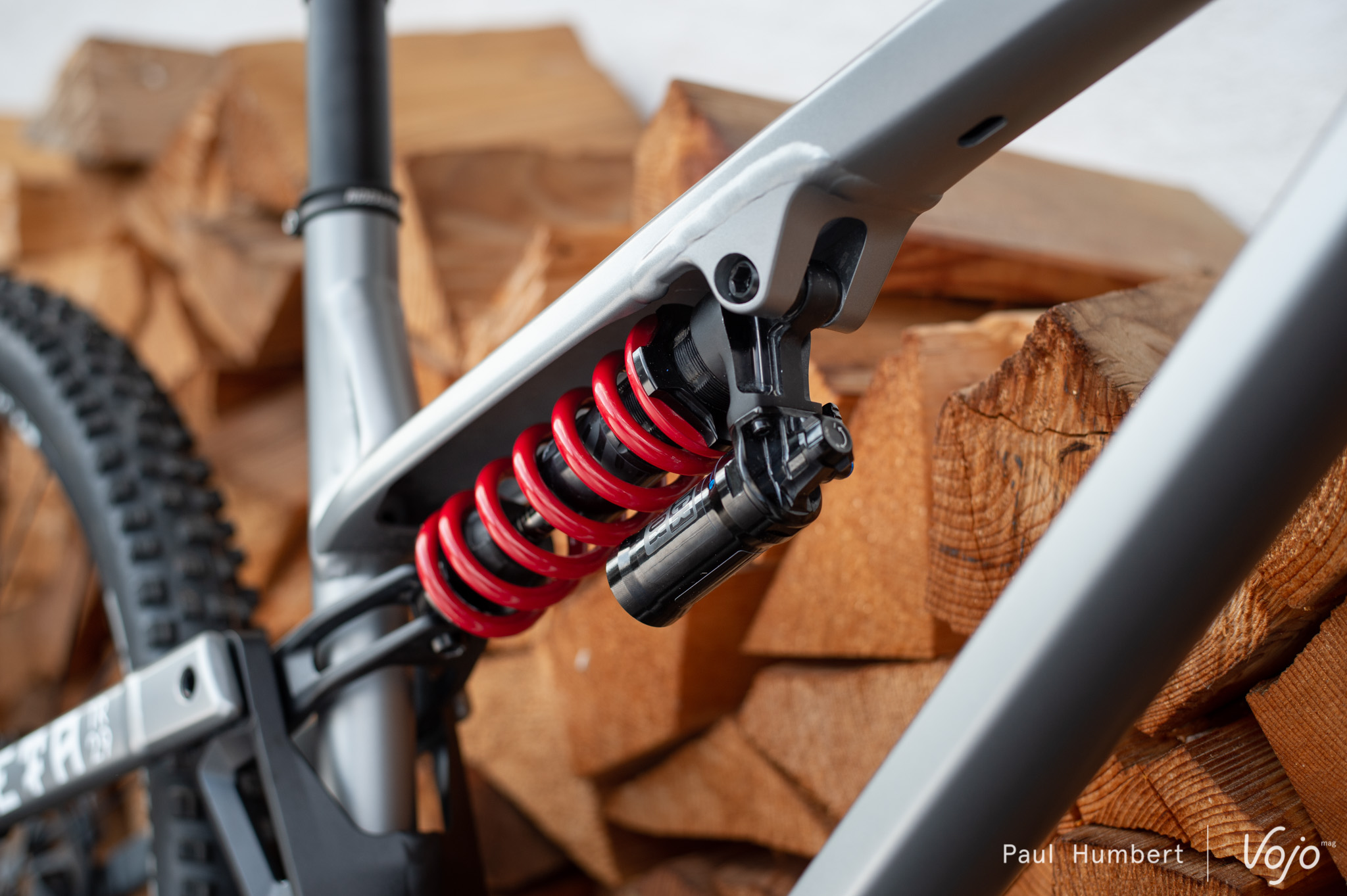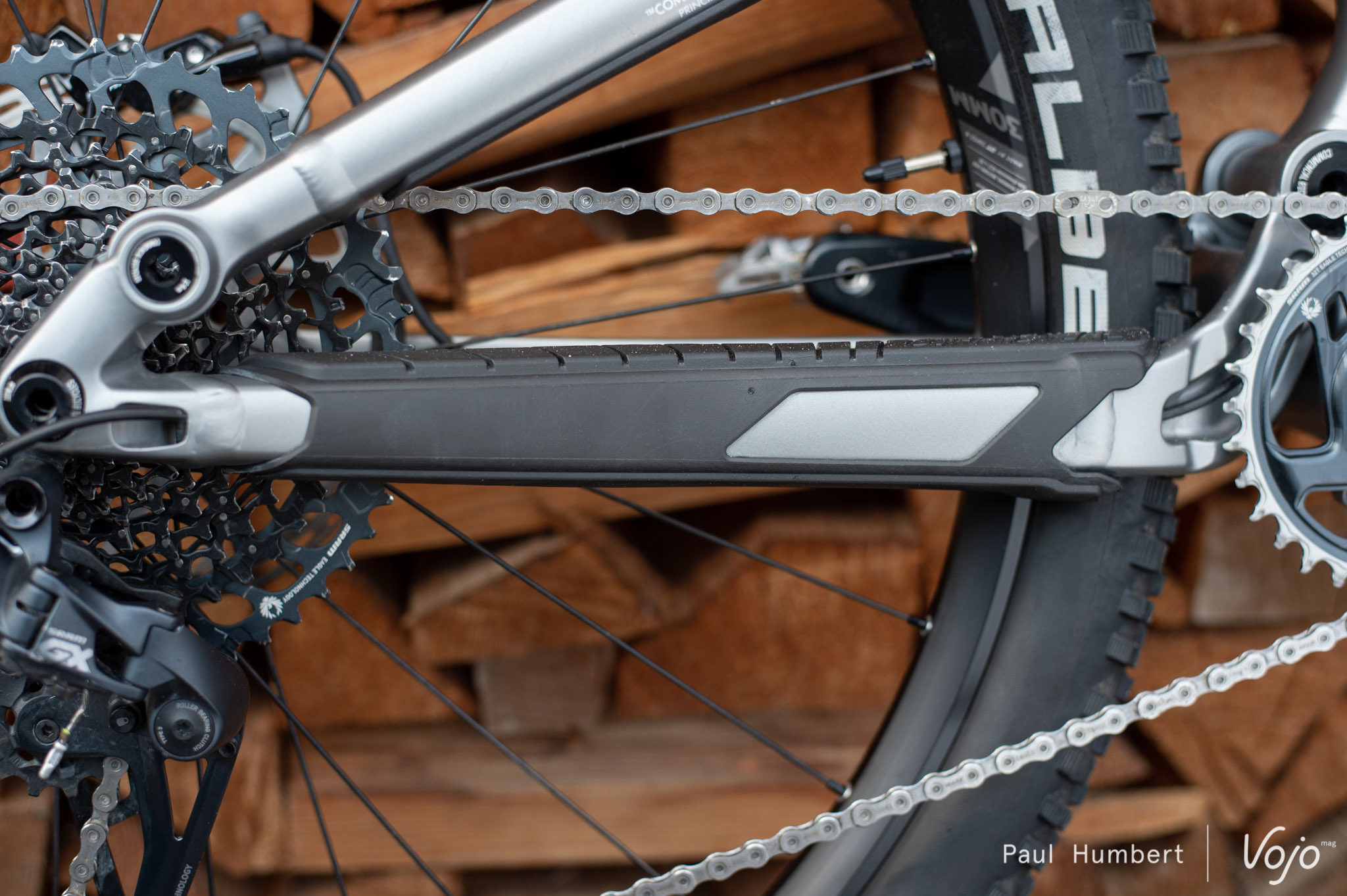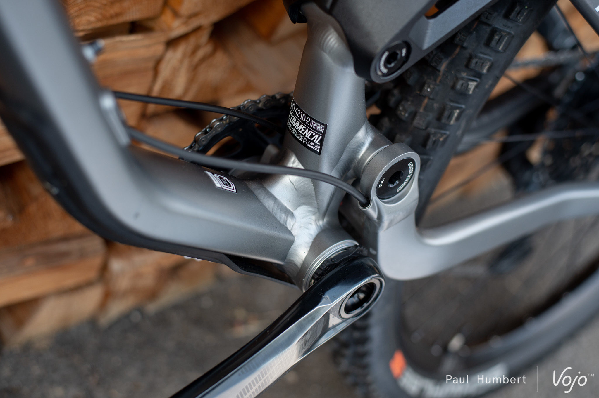 La construction du vélo évolue légèrement, principalement pour le simplifier et le fiabiliser. Les passages de gaines (intégralement en interne et non guidés) ont été repensés, la protection de base est « découpée » pour réduire les bruits de chaîne, et les roulements – fournis par Enduro Bearings – ont été agrandis pour rigidifier les articulations.