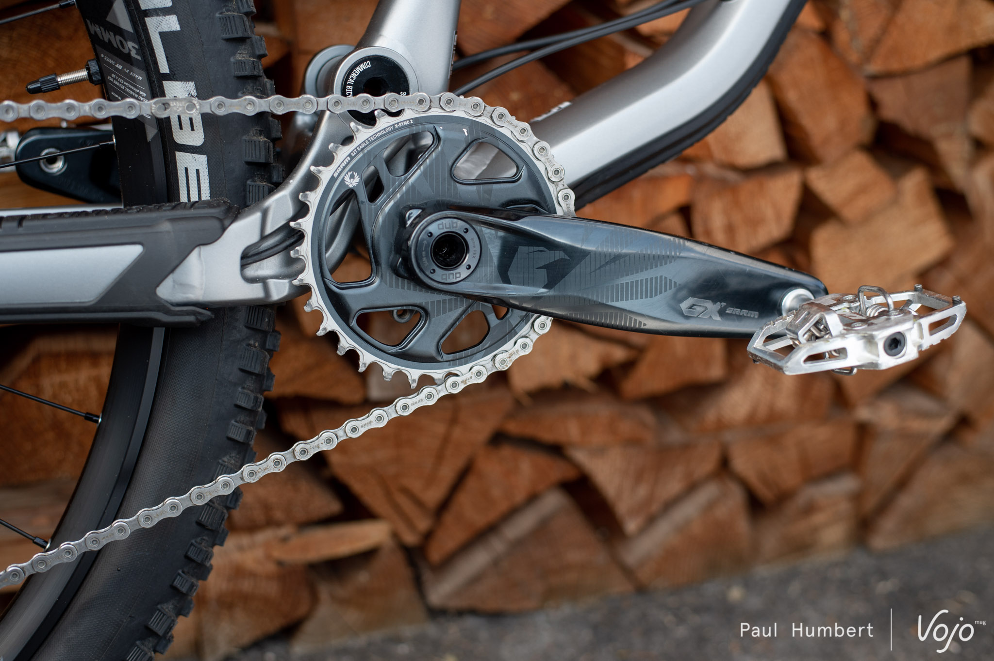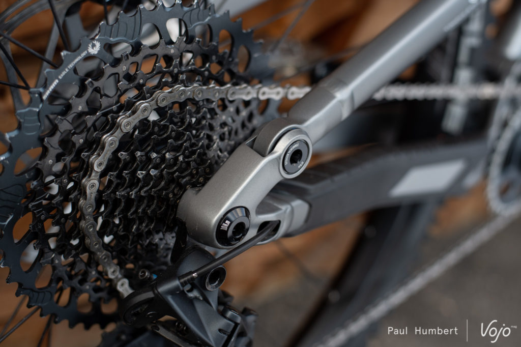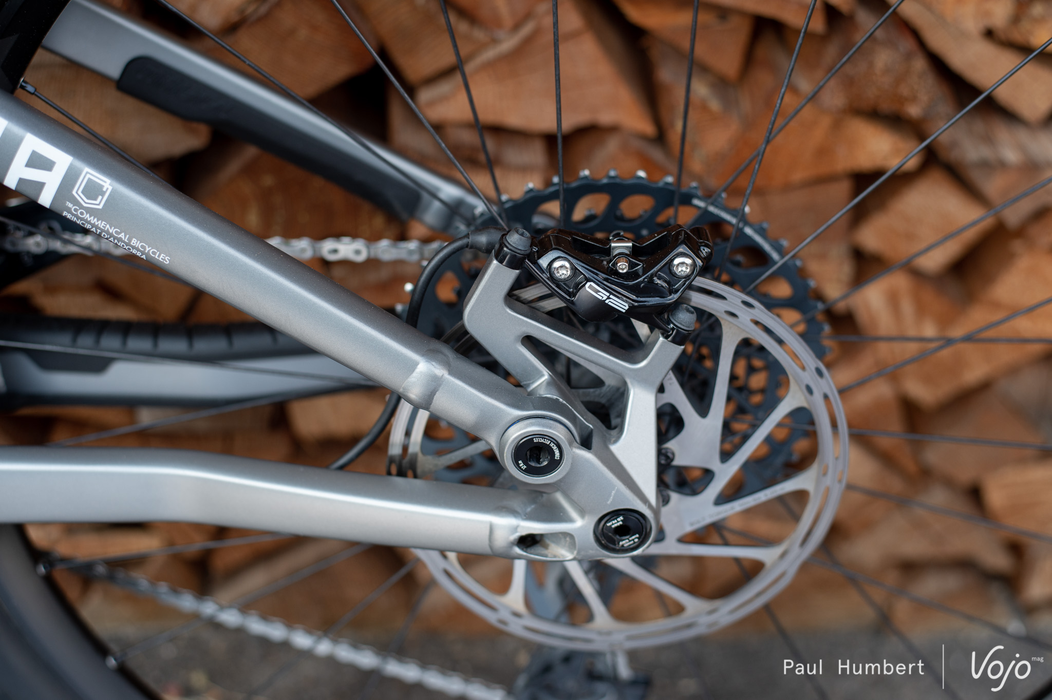 La construction du vélo évolue légèrement, principalement pour le simplifier et le fiabiliser. Les passages de gaines (intégralement en interne et non guidés) ont été repensés, la protection de base est « découpée » pour réduire les bruits de chaîne, et les roulements – fournis par Enduro Bearings – ont été agrandis pour rigidifier les articulations.