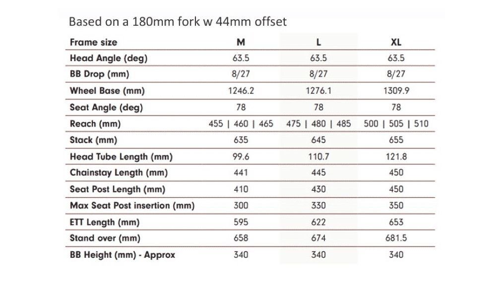 Côté géométrie, le Kurgan affiche des chiffres résolument engagés avec notamment un angle de direction de 63,5° et un tube de selle très droit à 78°. Il adopte un format de roues mulet (29 devant, 27,5″ derrière) avec des longueurs de bases qui évoluent selon la taille de la machine. Il n’y a que trois tailles au programme, mais un flip chip au niveau du jeu de direction permet de faire varier le reach de 10 mm (-5/0/+5 mm). Petit point d’attention, le vélo est assez court malgré le reach ajustable. Nous avons roulé le M et on vous conseillera d’aller vers un L dès 178/180 cm car le M était un poil court.
