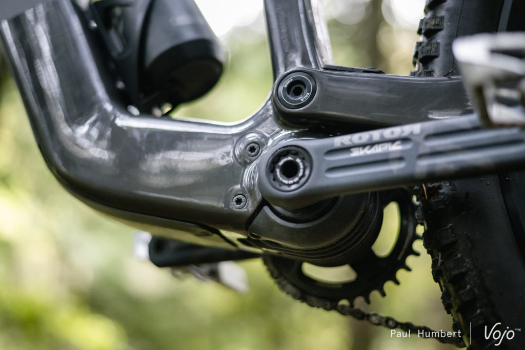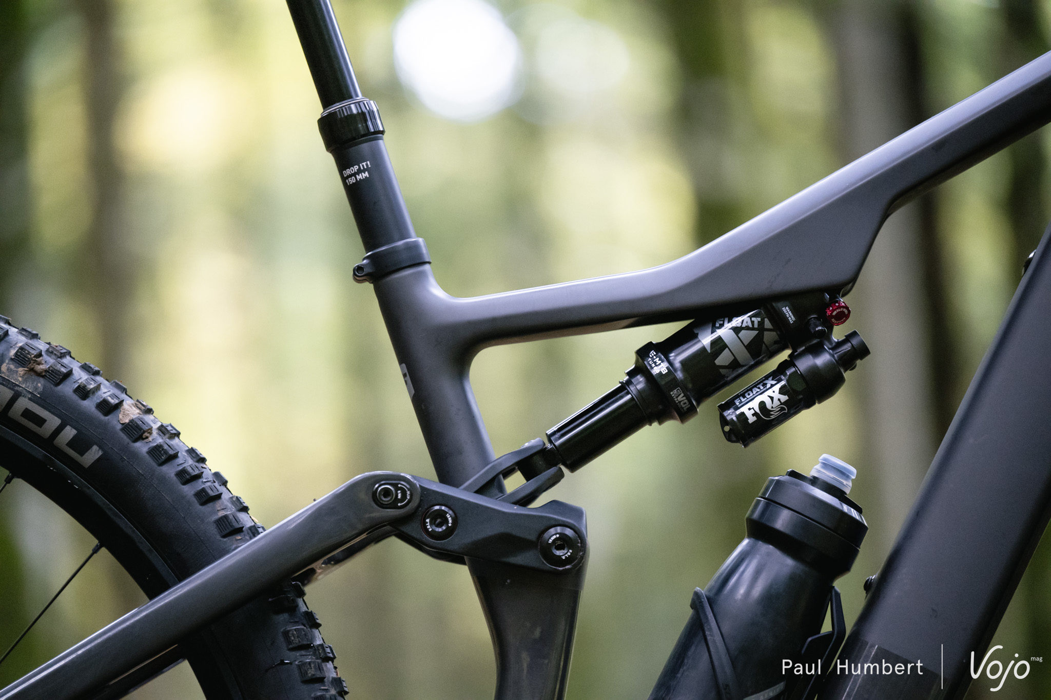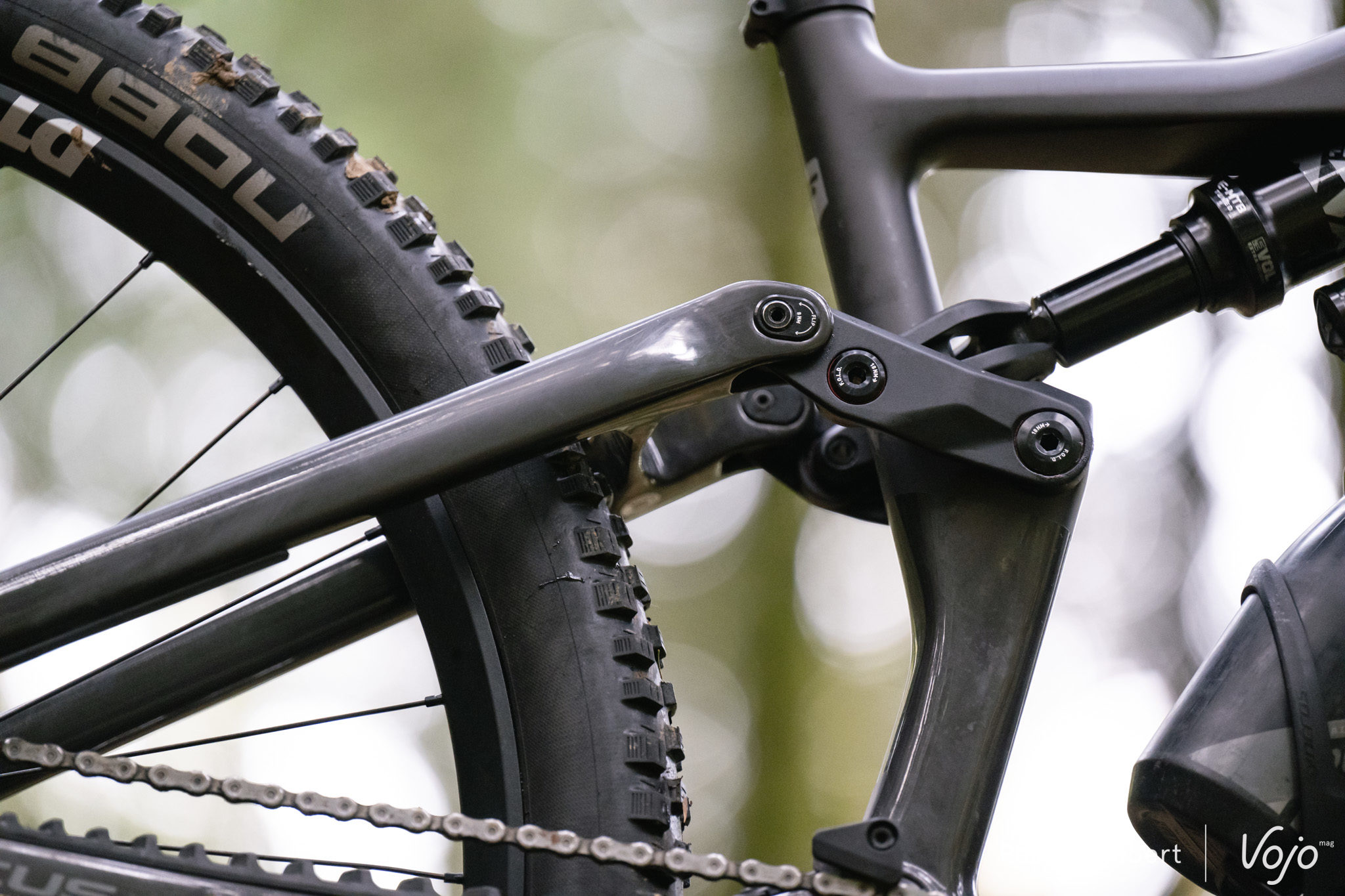 Assez parlé d’électronique, retour au vélo. On l’a dit, le Jam² SL offre 150 mm de débattement à l’arrière. Toutefois, on note que ce n’est pas à travers une architecture monopivot + biellette comme sur les autres machines de la marque (Jam, Jam², Thron) mais via un très classique 4 bar linkage.