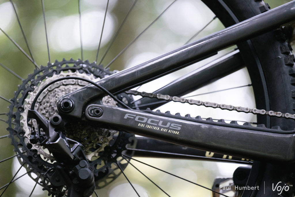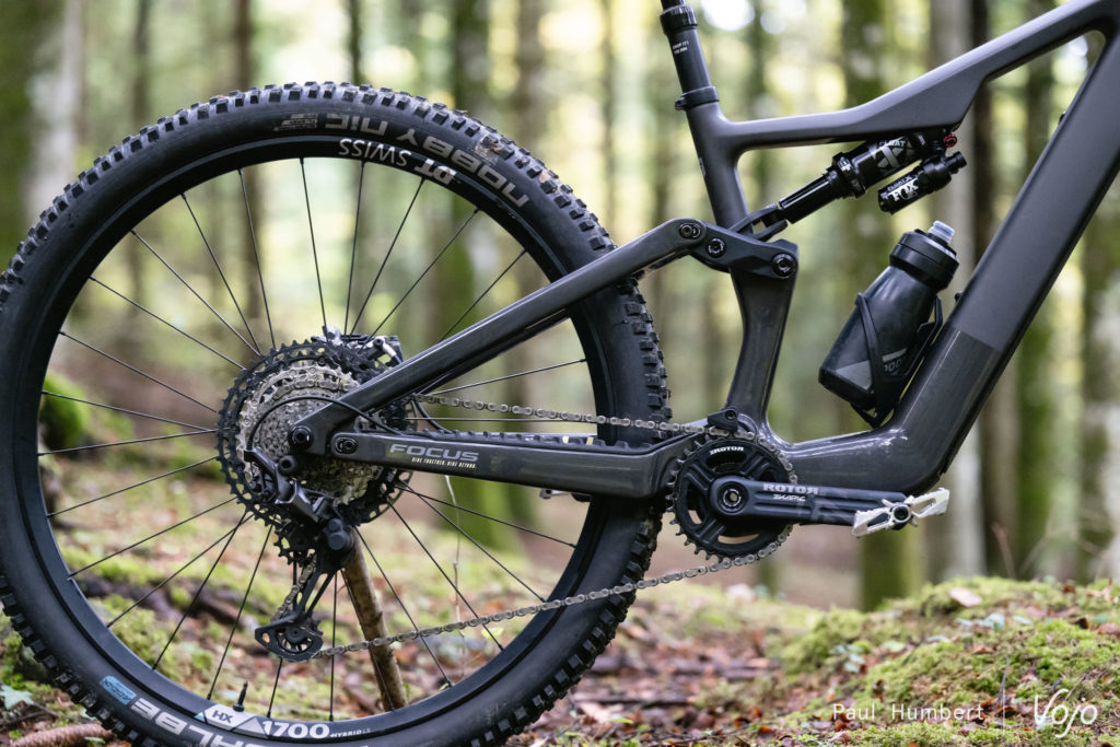 Un retournement de veste qui a de quoi nous surprendre car Focus semblait assez fière de sa suspension sur ses autres modèles, mais la marque a toutefois un bon argument : cela leur a permis de gagner un poids non négligeable et comme c’est sur l’arrière du vélo, déjà alourdi par la présence du moteur, c’est également bon pour l’équilibre général. Par ailleurs, on sait que cela peut aussi apporter une meilleure indépendance vis-à-vis des forces de freinage, chose pas nécessairement inutile de manière générale et encore moins sur un e-bike, forcément plus lourd qu’un vélo classique.