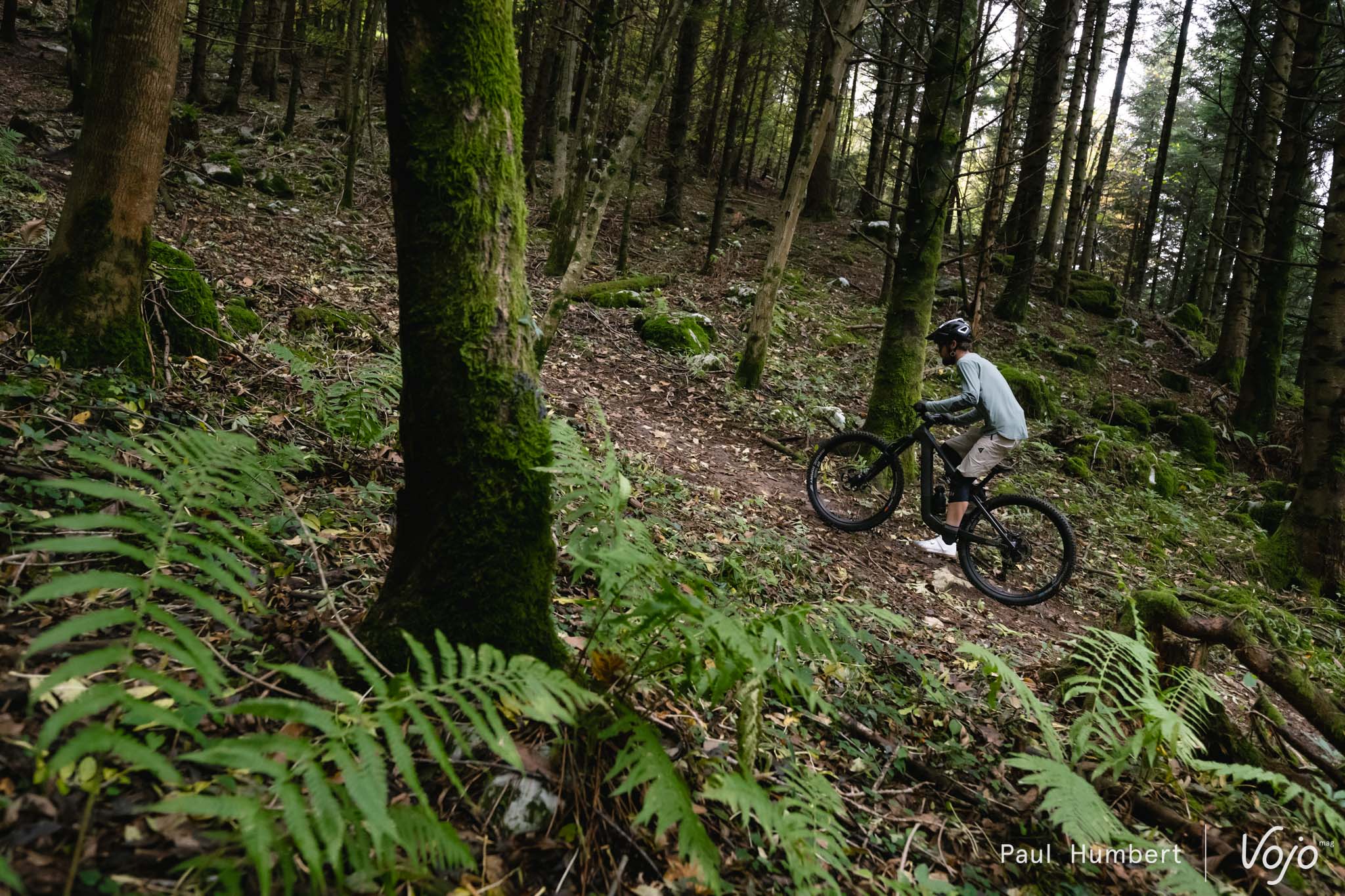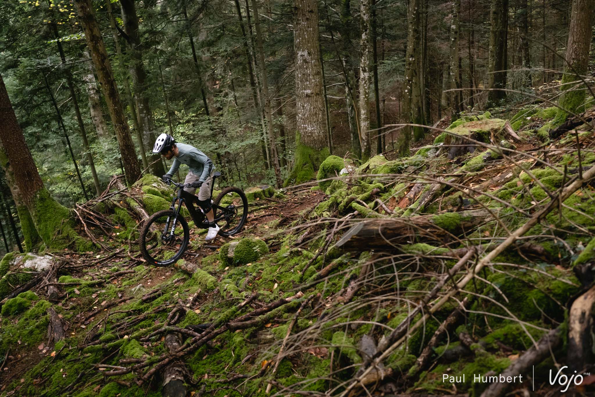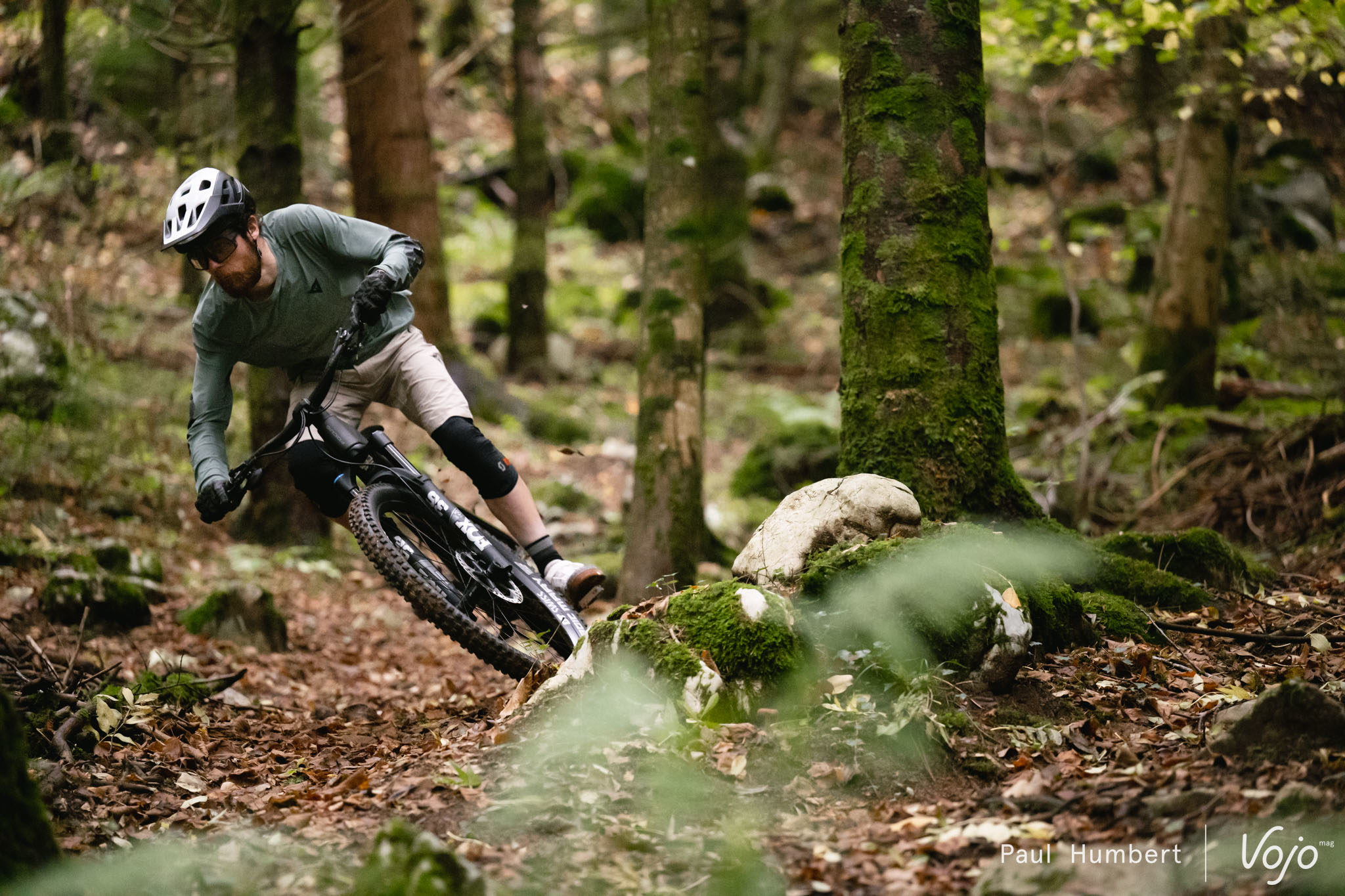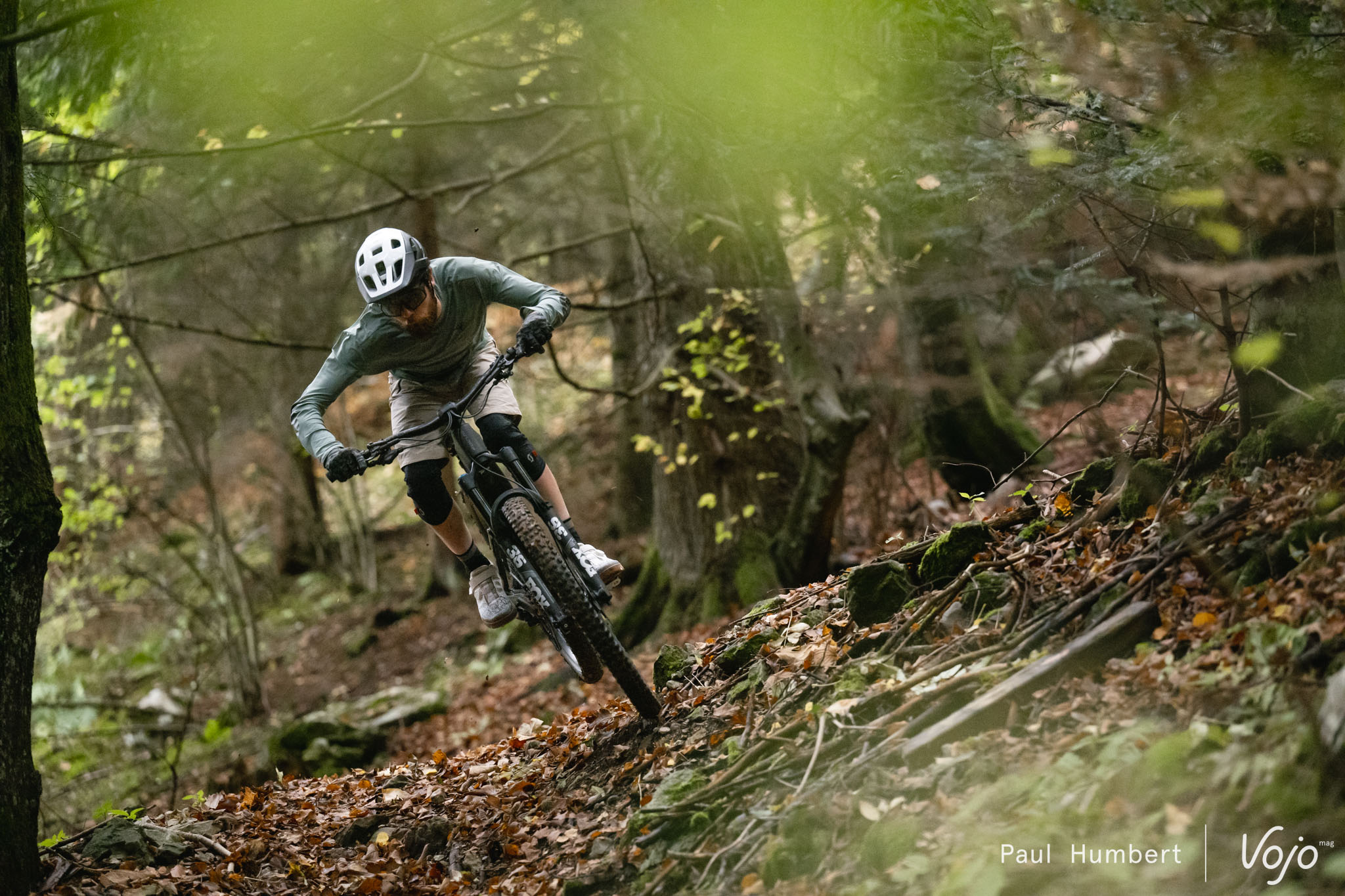 Au pédalage, le Jam² SL montre très vite de belles aptitudes. Pour un « petit » e-bike, le moteur Fazua Ride 60 pousse fort et comme la géométrie est bien trouvée, on peut s’attaquer sans faiblir à de sacrés passages. La roue avant reste plutôt facile à contrôler et le moteur parvient sans peine à donner le petit coup de pouce nécessaire lorsqu’il faut par exemple franchir une marche dans une section déjà raide. Le poids est également un atout : s’il reste élevé dans l’absolu (19,4 kg pour notre taille L), les quelques kilogrammes de différence avec un gros e-bike rendent la machine plus facile à contrôler, surtout quand on est soi-même pas très lourd.