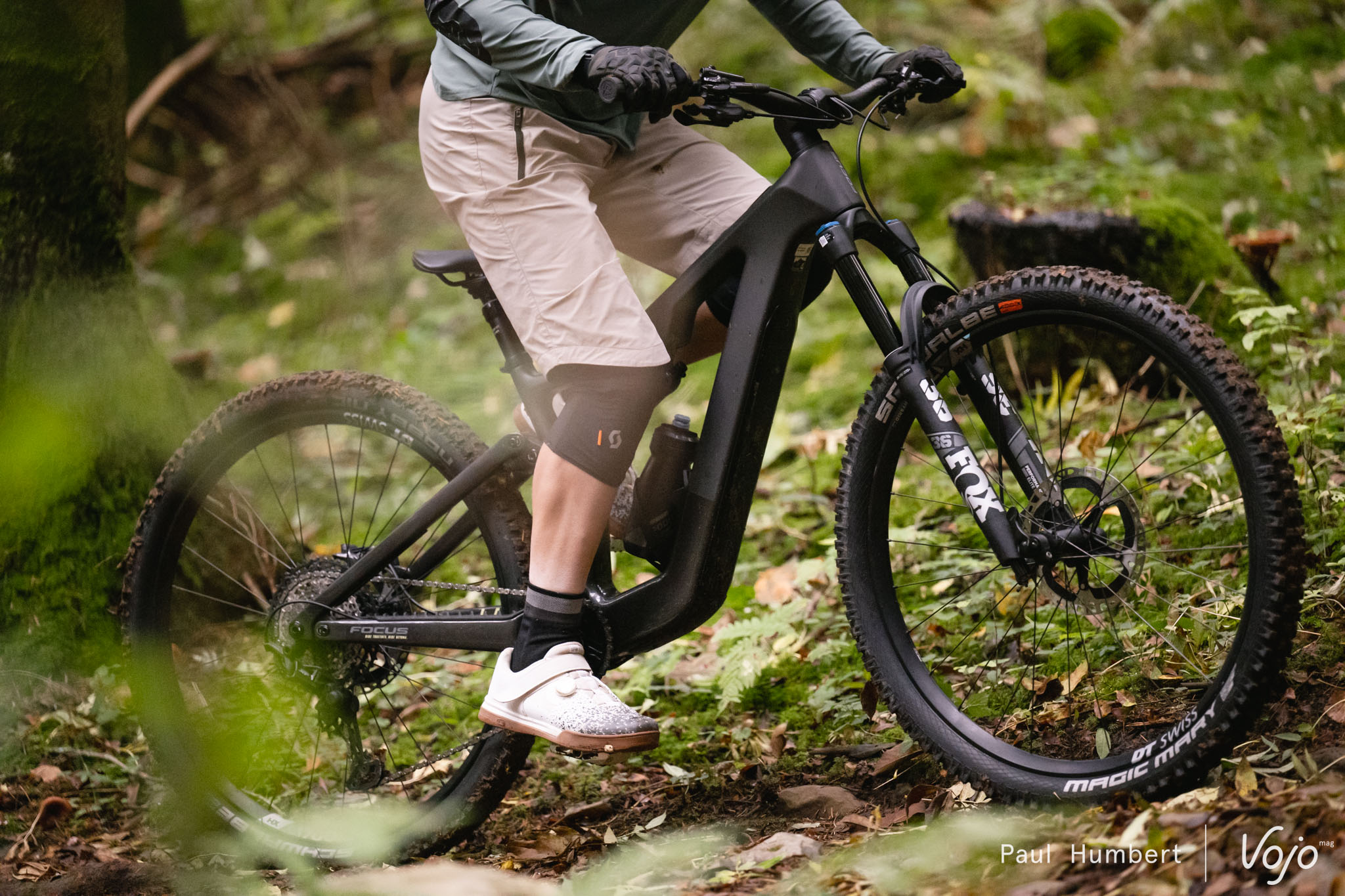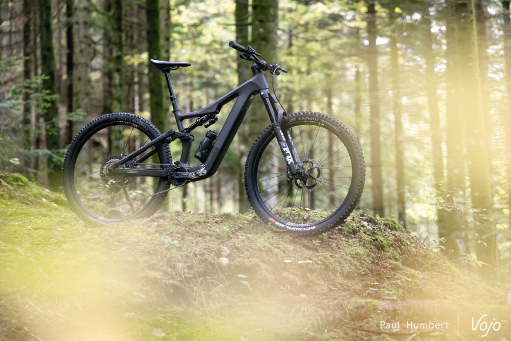 Développant 150 mm de débattement à l’arrière pour 160 mm à l’avant, le Jam² SL est un e-bike léger qui se veut polyvalent, avec différents montages et une géométrie (légèrement) adaptable pour séduire différents profils. D’ailleurs, en parlant d’e-bike léger, notons que Focus a sa propre interprétation de la question : la marque nous explique « ne pas se concentrer uniquement sur le poids du vélo mais plutôt la sensation de poids et de légèreté sur les sentiers, la facilité et le plaisir de pilotage ».