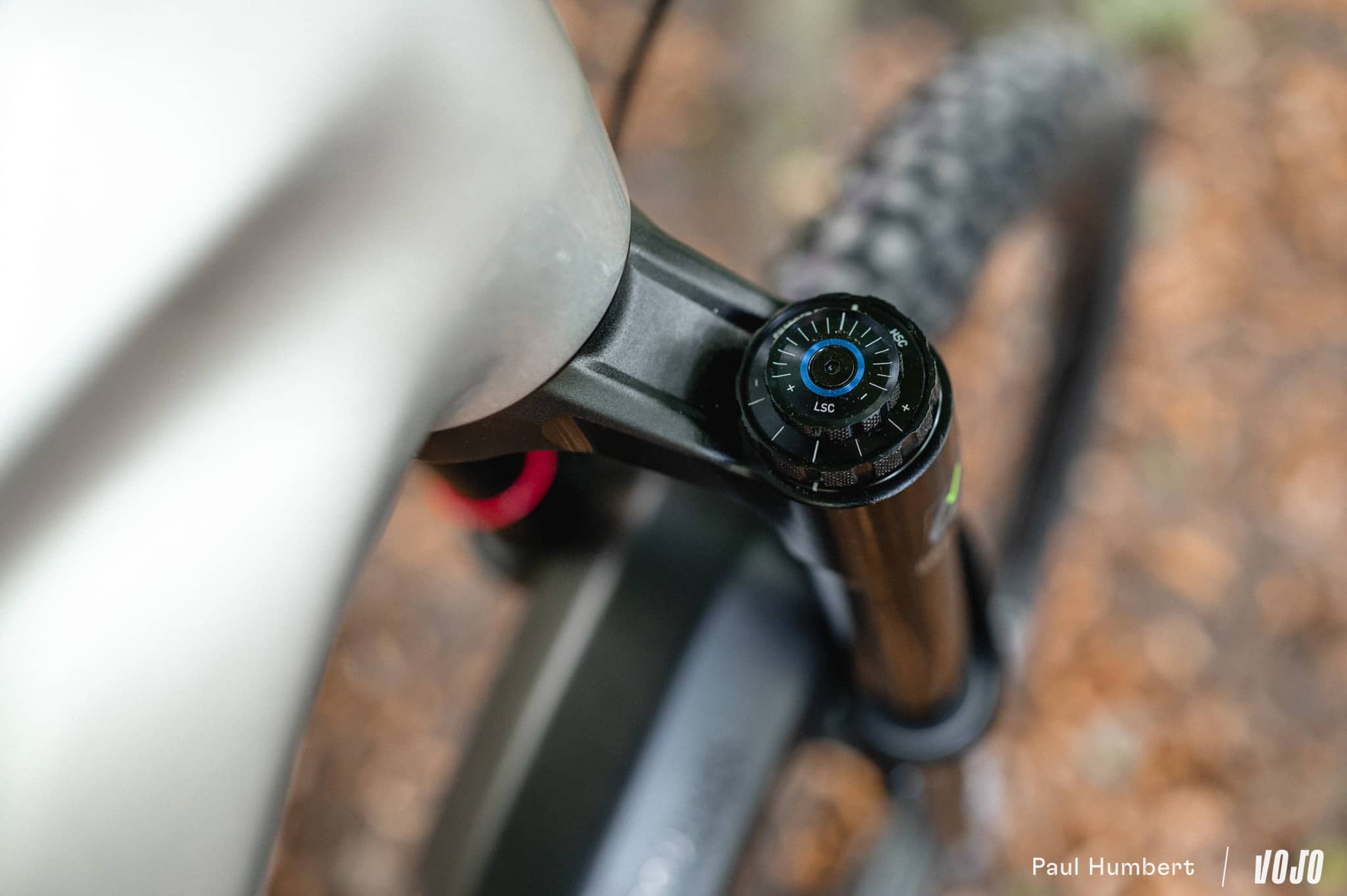 On ajuste la pression de ces derniers et on arrive alors à l’équilibre qu’on recherchait pour aller trouver un bon grip et une bonne précision de pilotage. Un token est installé dans la fourche de ce modèle haut de gamme.