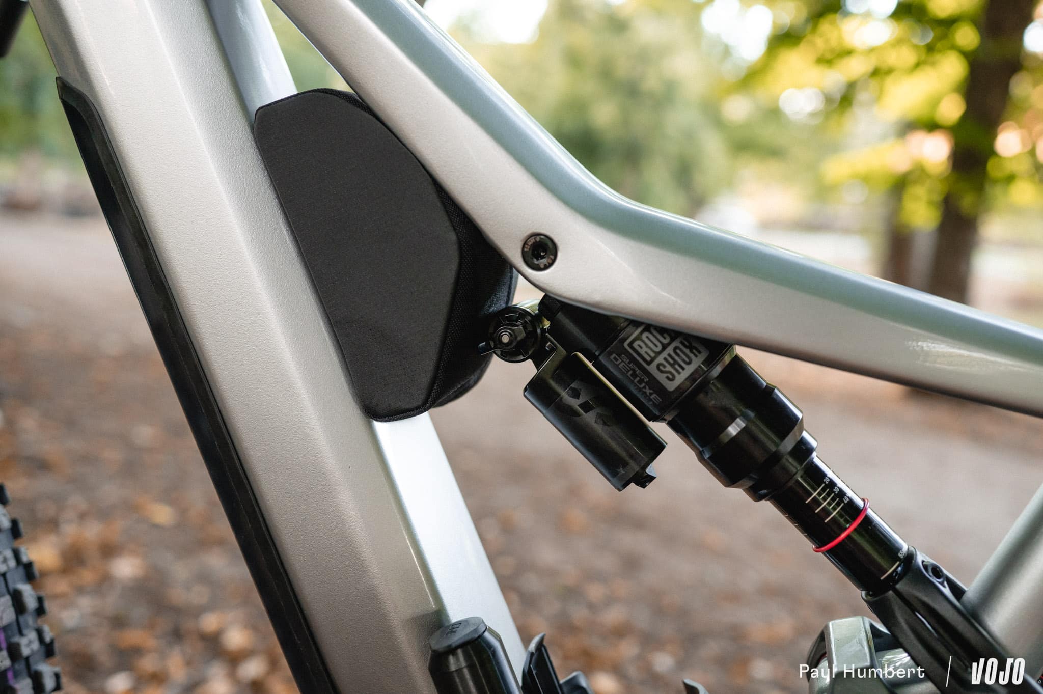 On retrouve sur notre vélo de test un amortisseur Rockshox SuperDeluxe avec le plus gros volume d’air possible pour jouer sur les compressions. La marque annonce également ajouter des « tokens » dans ses fourches quand c’est nécessaire.