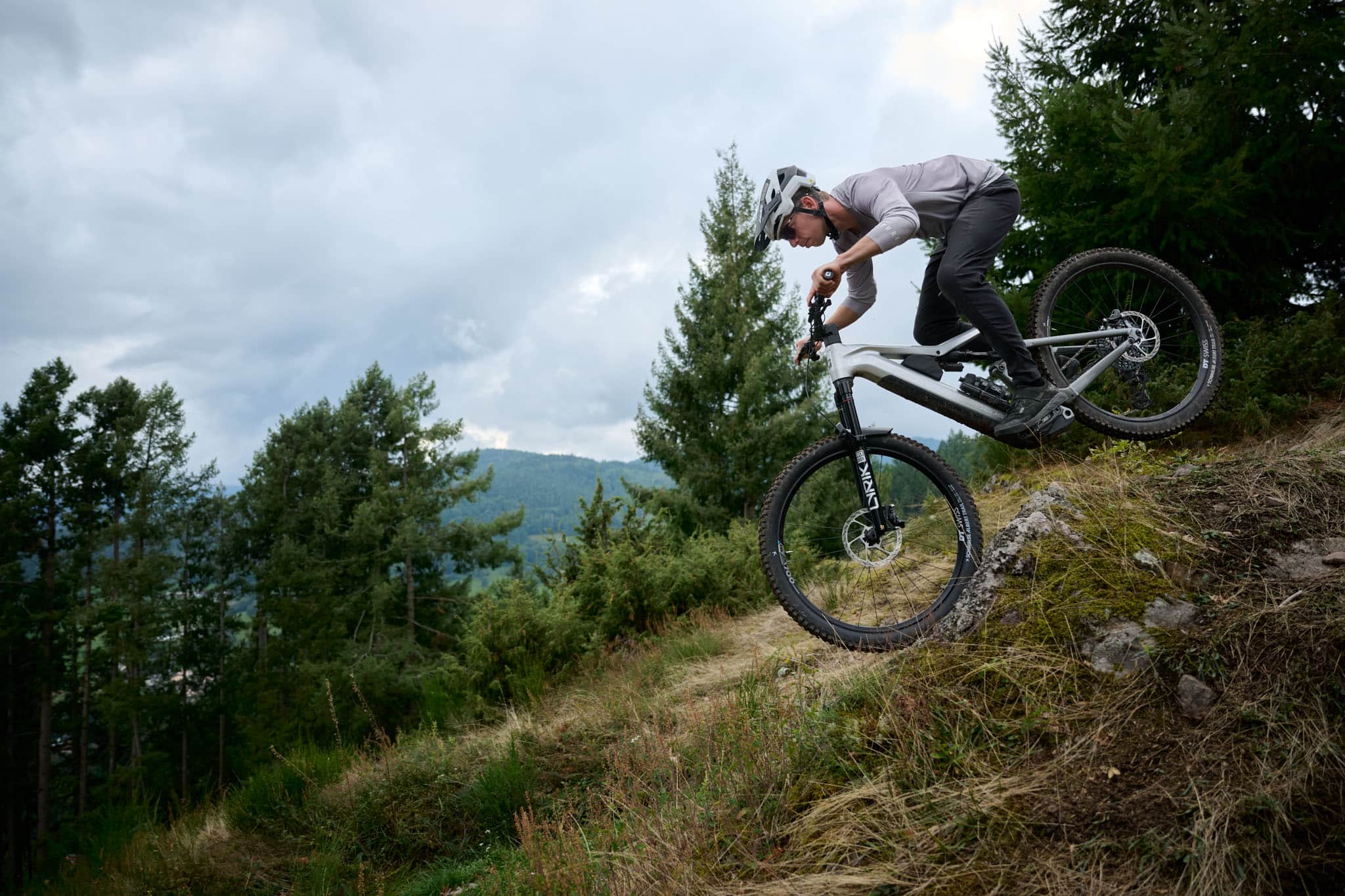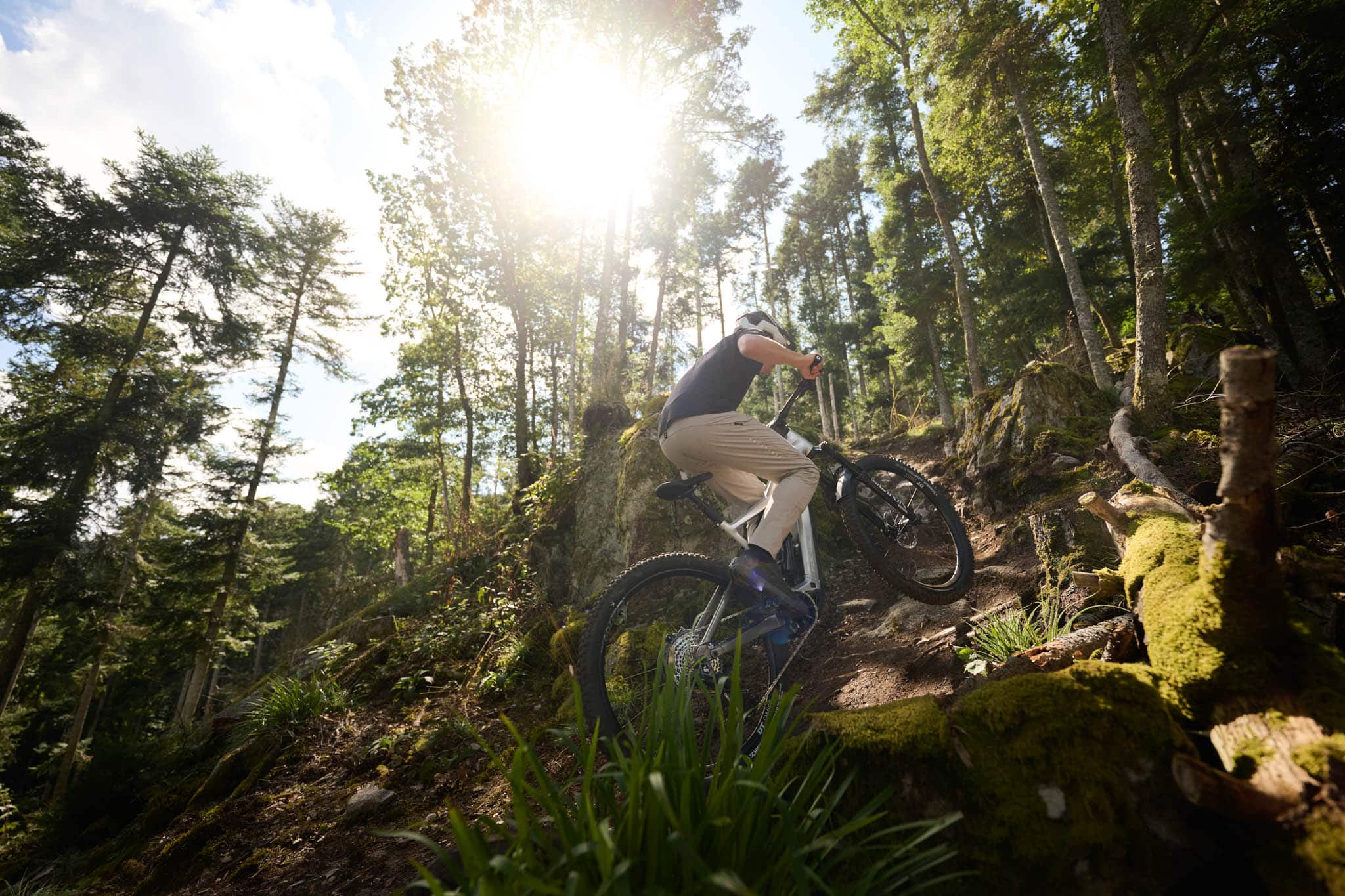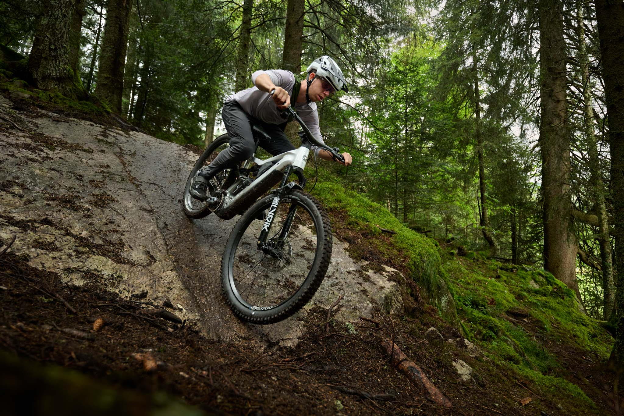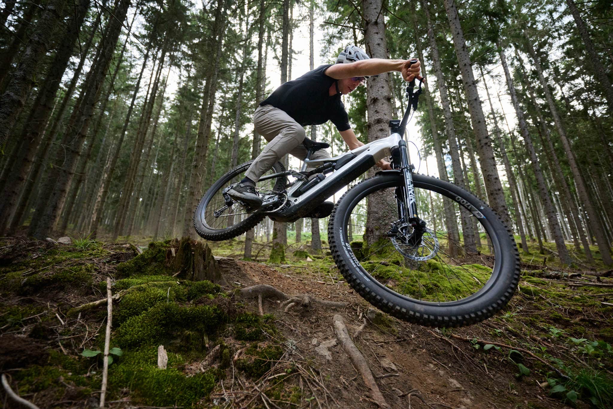 En descente, on est d’abord un peu dérouté par la dernière version de la Rockshox Lyrik et sa cartouche 3.1 qui prend beaucoup plus facilement tout son débattement, associée aux nouveaux pneus Schwalbe à construction « radiale » qui demandent à être utilisés avec un peu plus de pression.