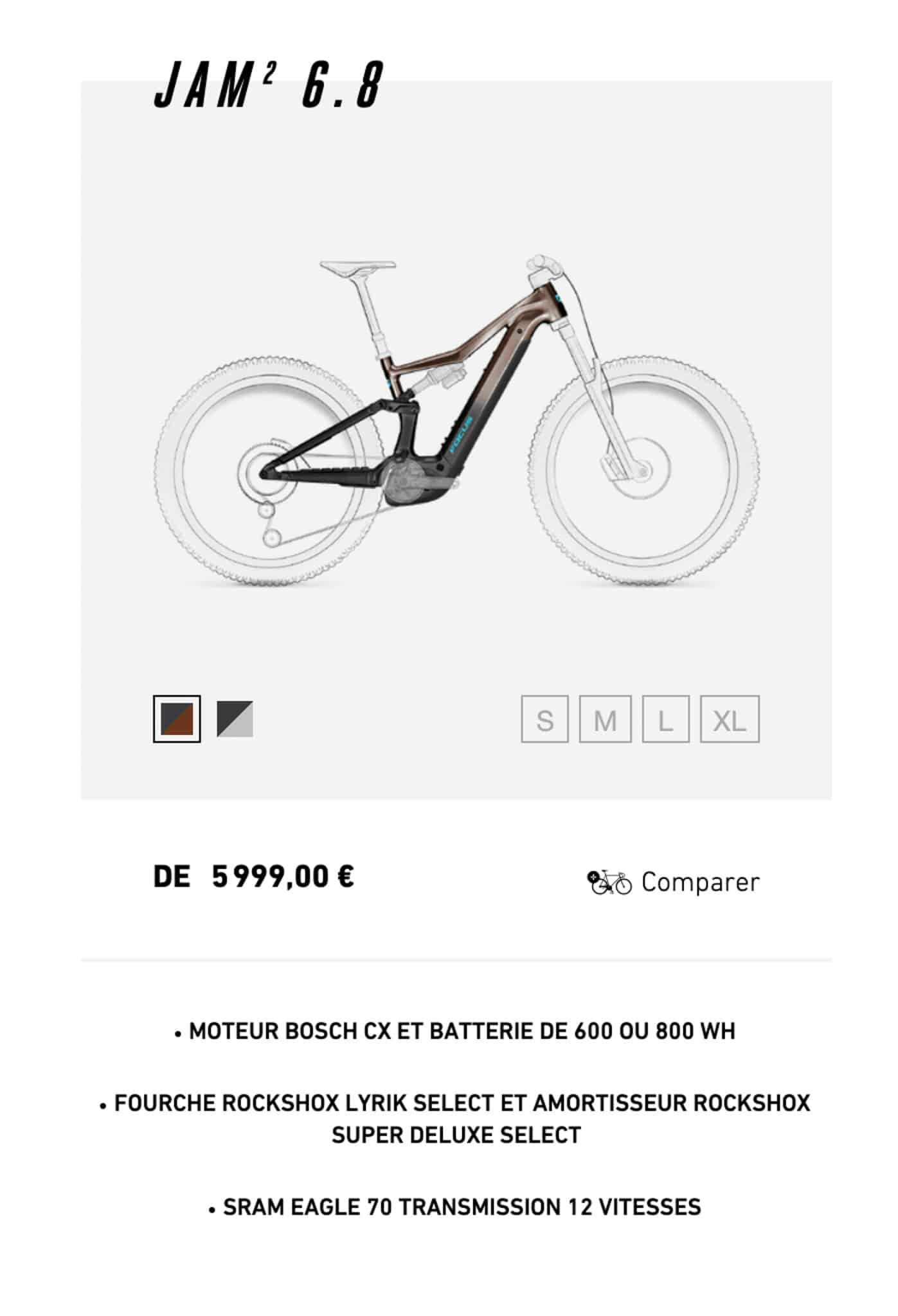 Petit détail croustillant, le modèle 6.8 est annoncé, mais pas encore disponible. On repère sur la fiche technique « Sram Eagle 70 transmission – new Sram Eagle transmission », ce qui présage de futurs lancements de produits.